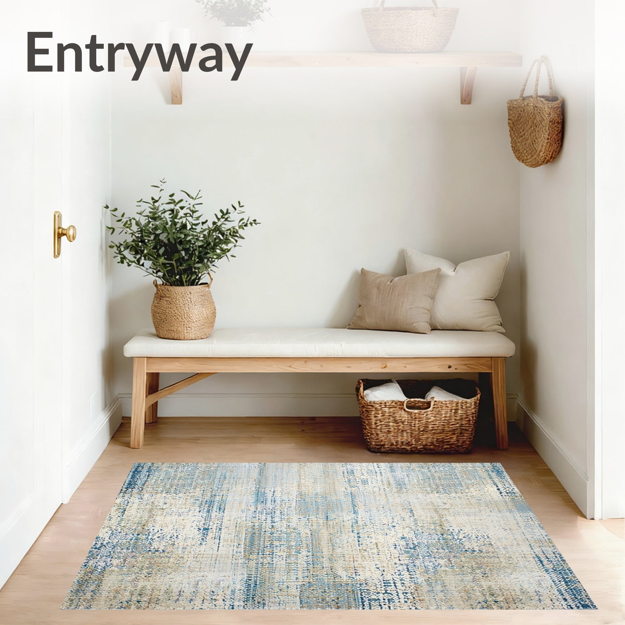 Ultra Soft Area Rug, Non Slip, Stain Resistant, Washable Area Rugs for Living Room, Bedroom, Chic Micro Loop Carpet Beige Blue Speckled Pattern Area Rug(Beige) Overview: