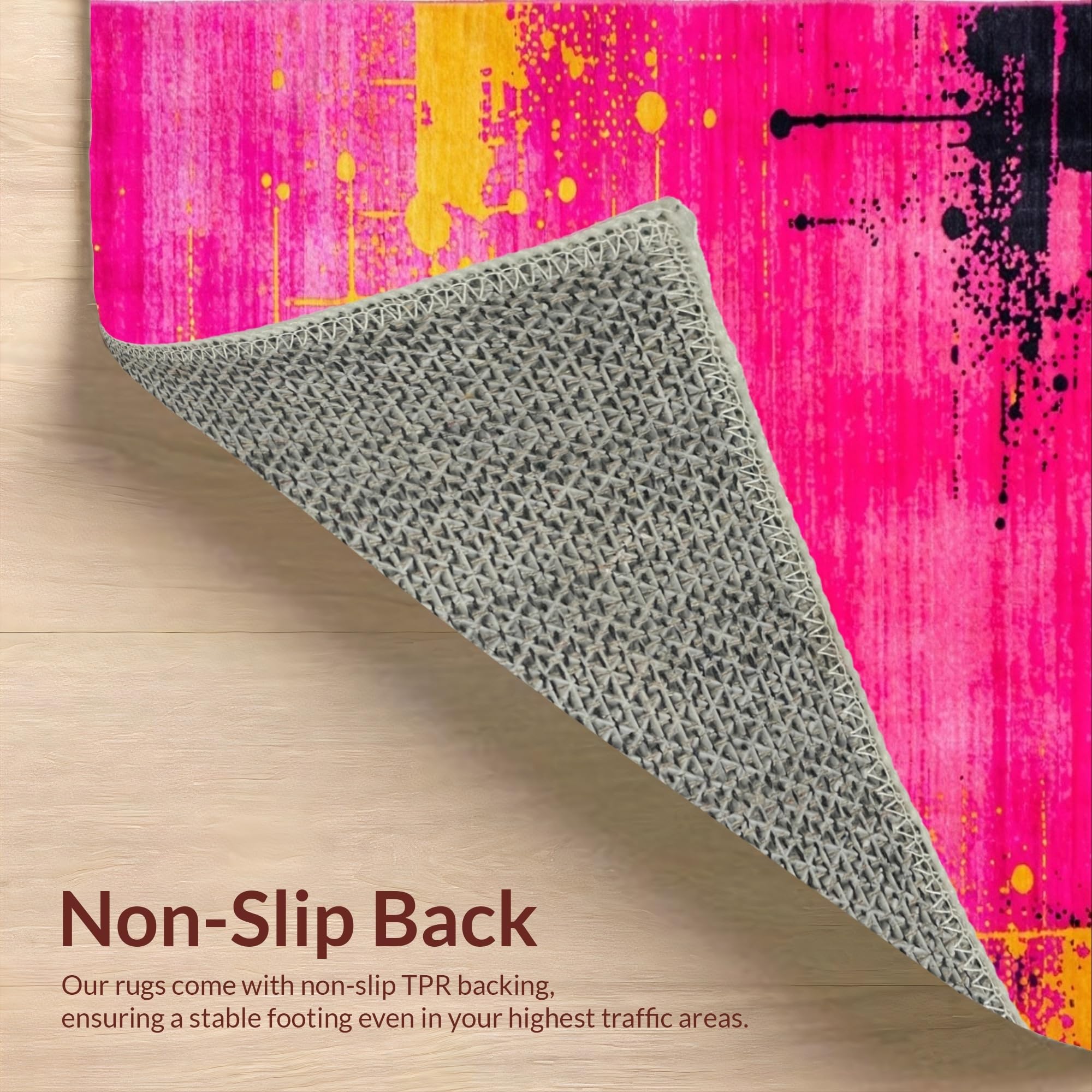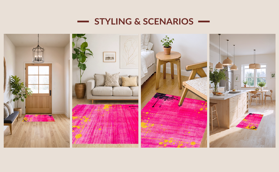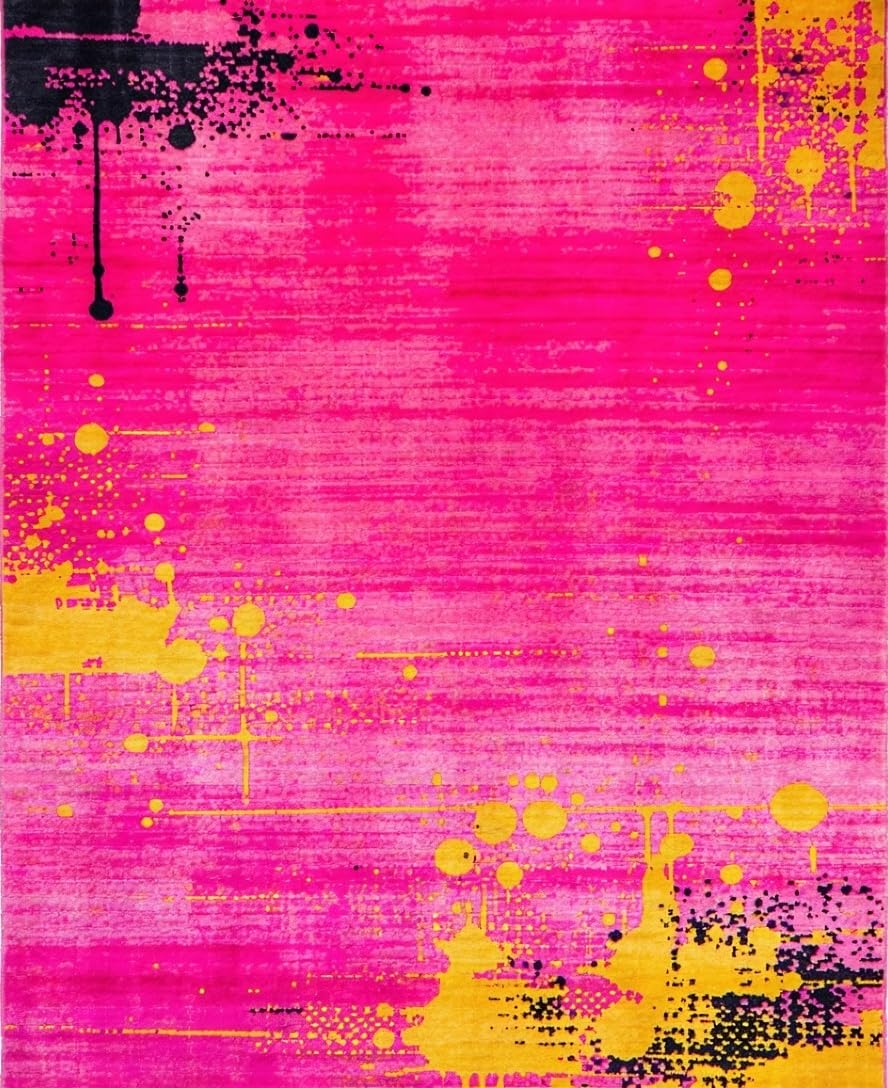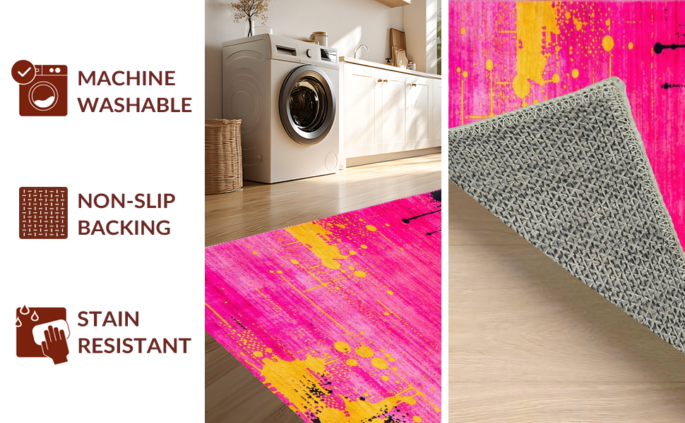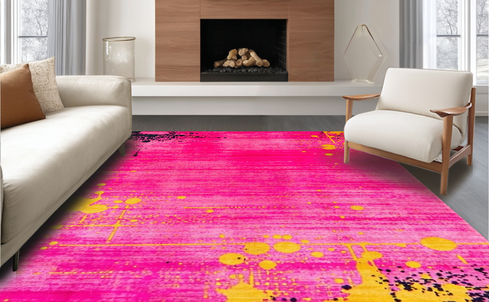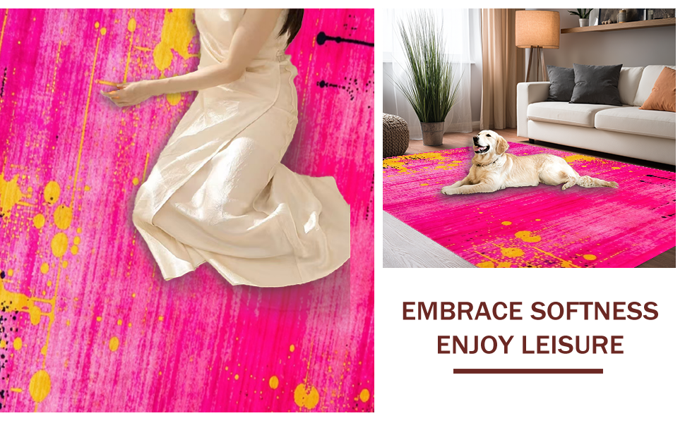 Ultra Soft Area Rug, Non Slip, Stain Resistant, Washable Area Rugs for Living Room, Bedroom, Chic Minimalist Abstract Color Play(Pink) Overview: