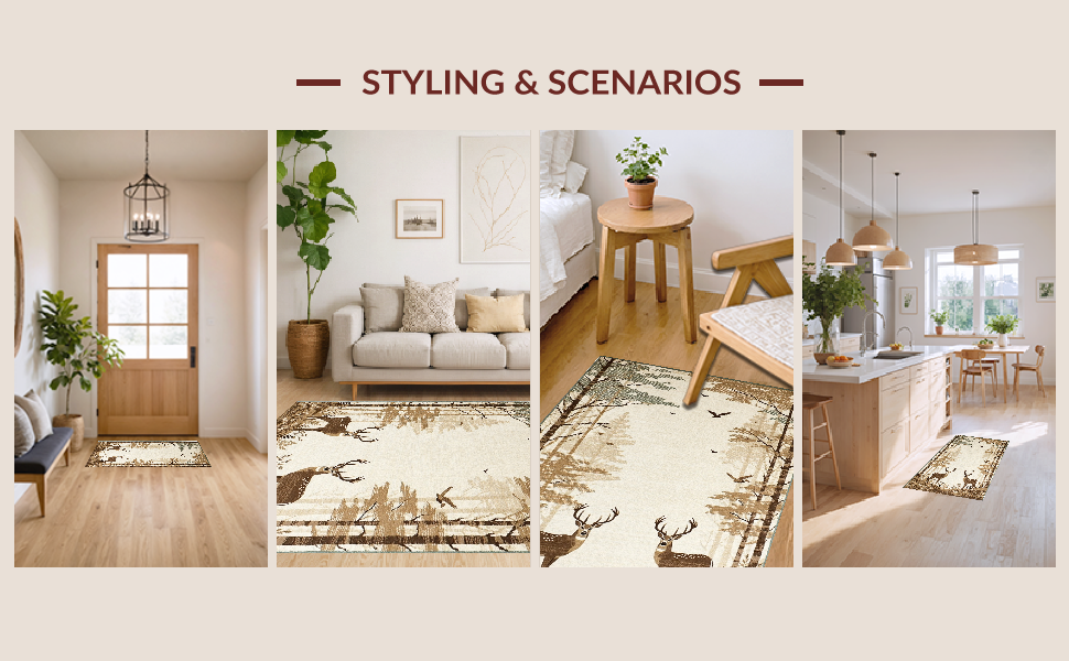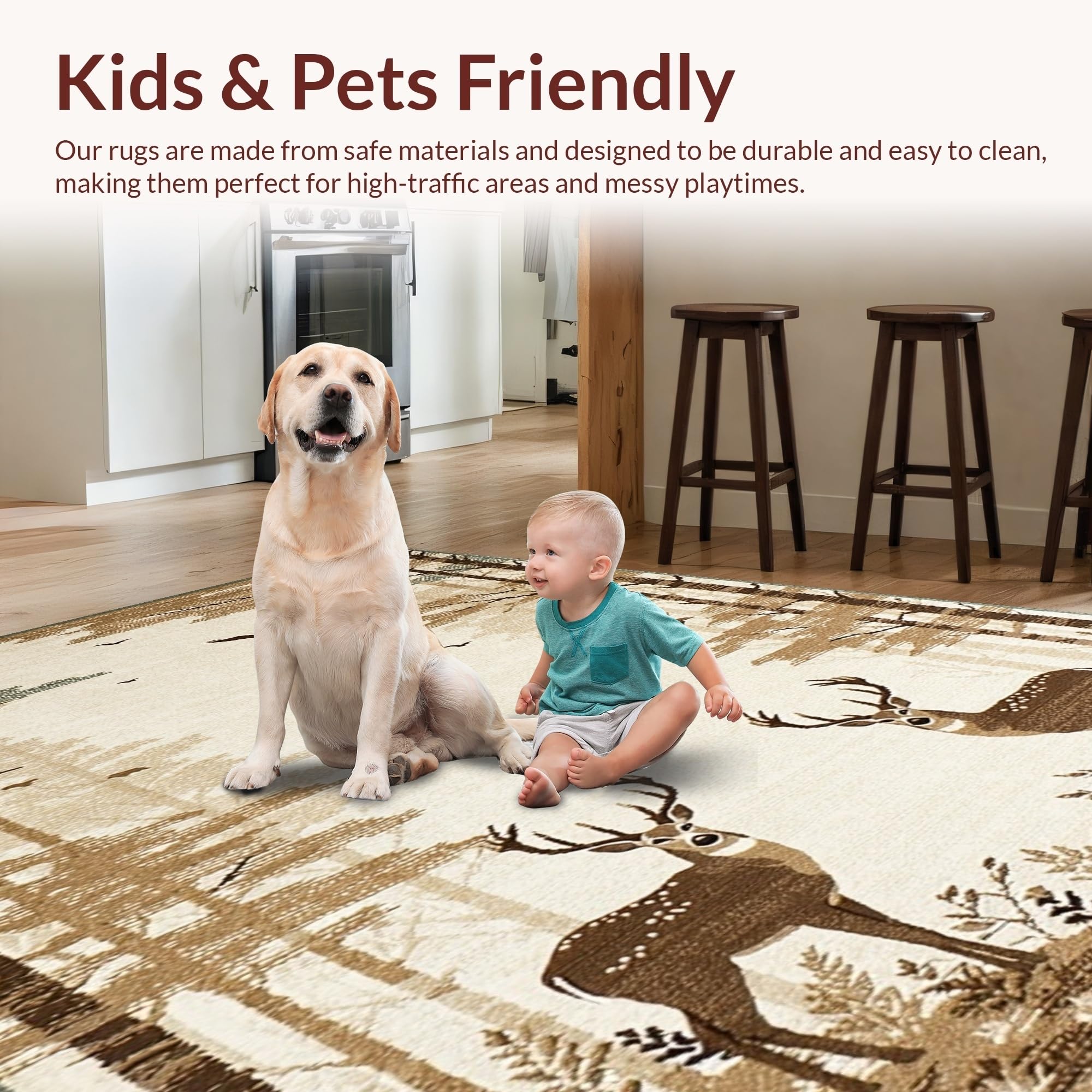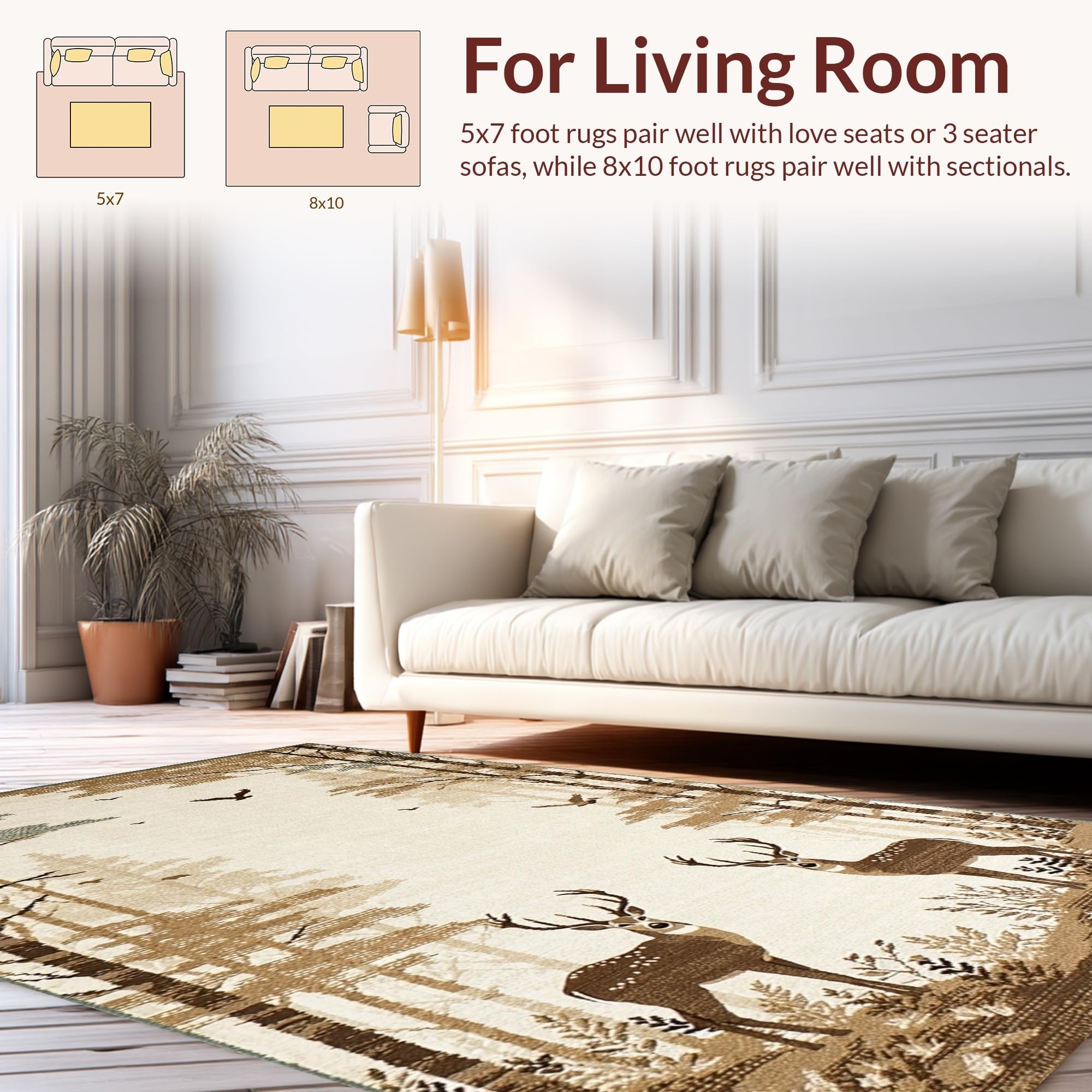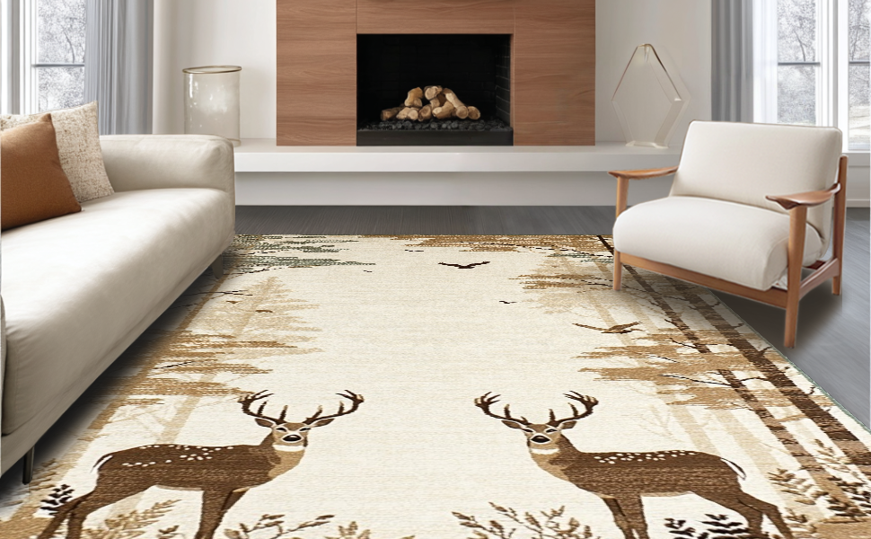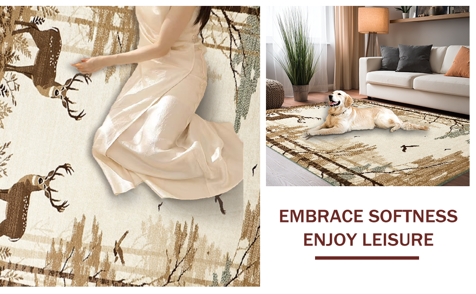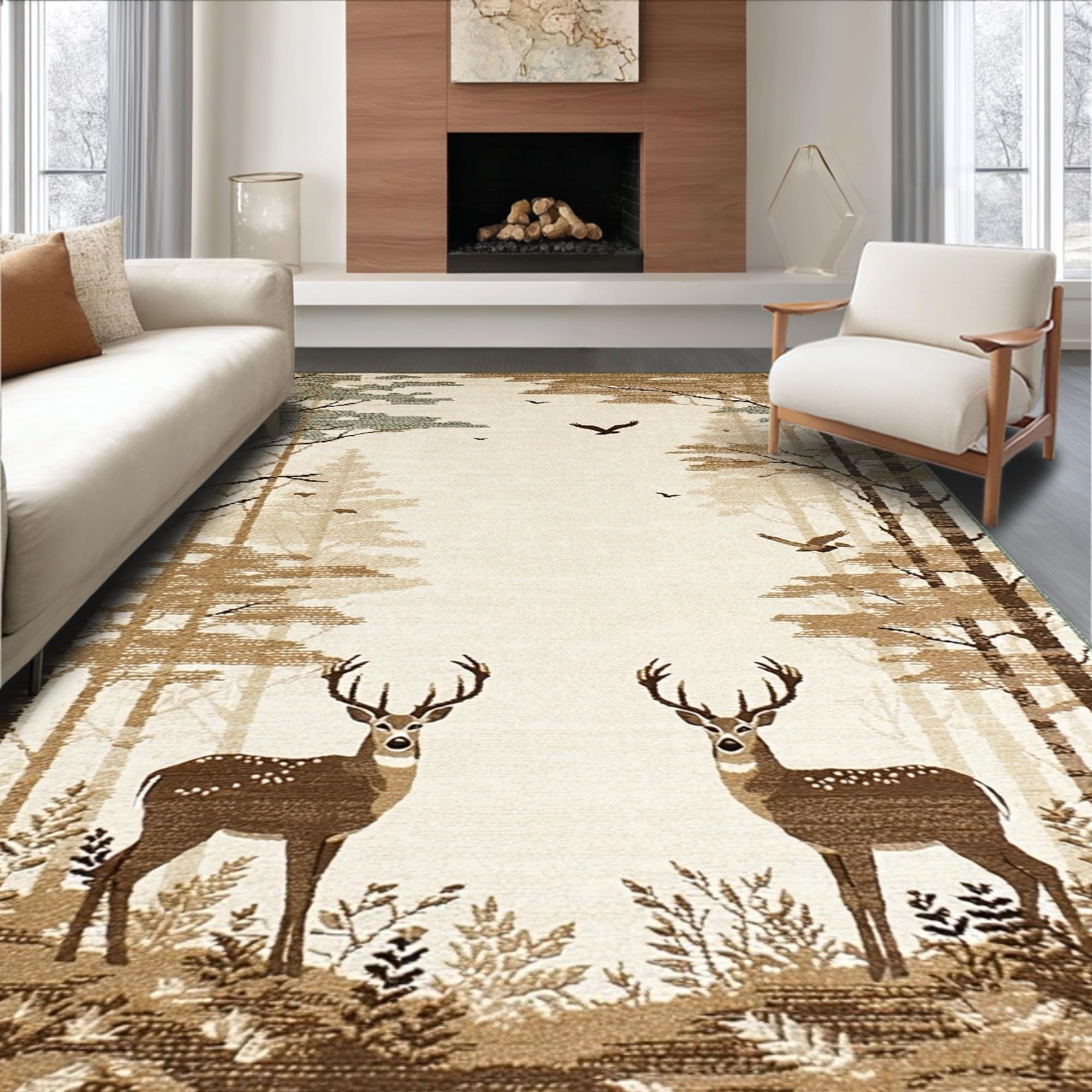 Ultra Soft Area Rug, Non Slip, Stain Resistant, Washable Area Rugs for Living Room, Bedroom, Chic Minimalist Animal Silhouette(Beige) Overview: