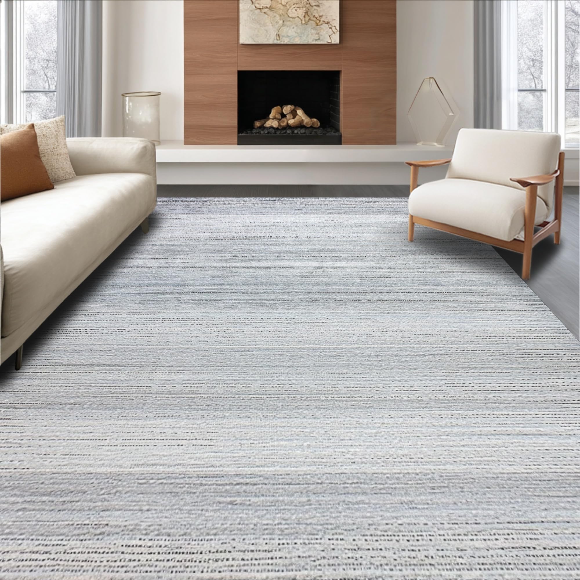 Ultra Soft Area Rug, Non Slip, Stain Resistant, Washable Area Rugs for Living Room, Bedroom, Chic Minimalist Cloud Gray Texture(Gray) Overview: