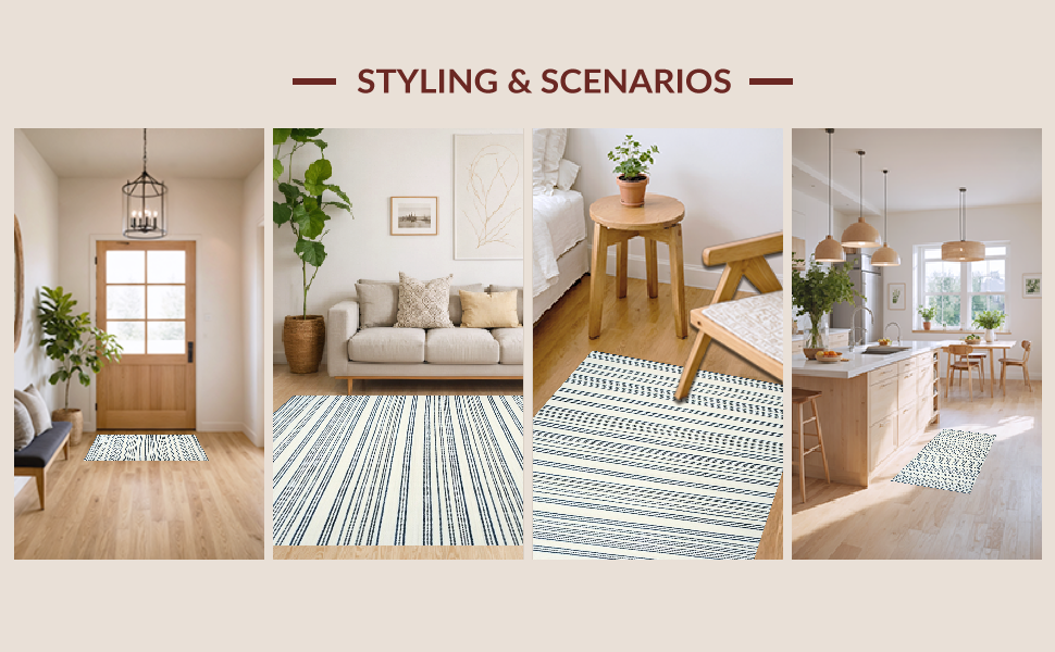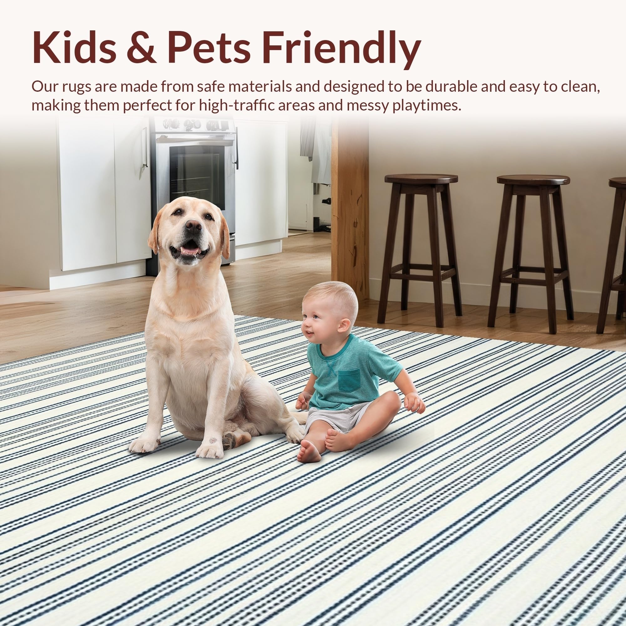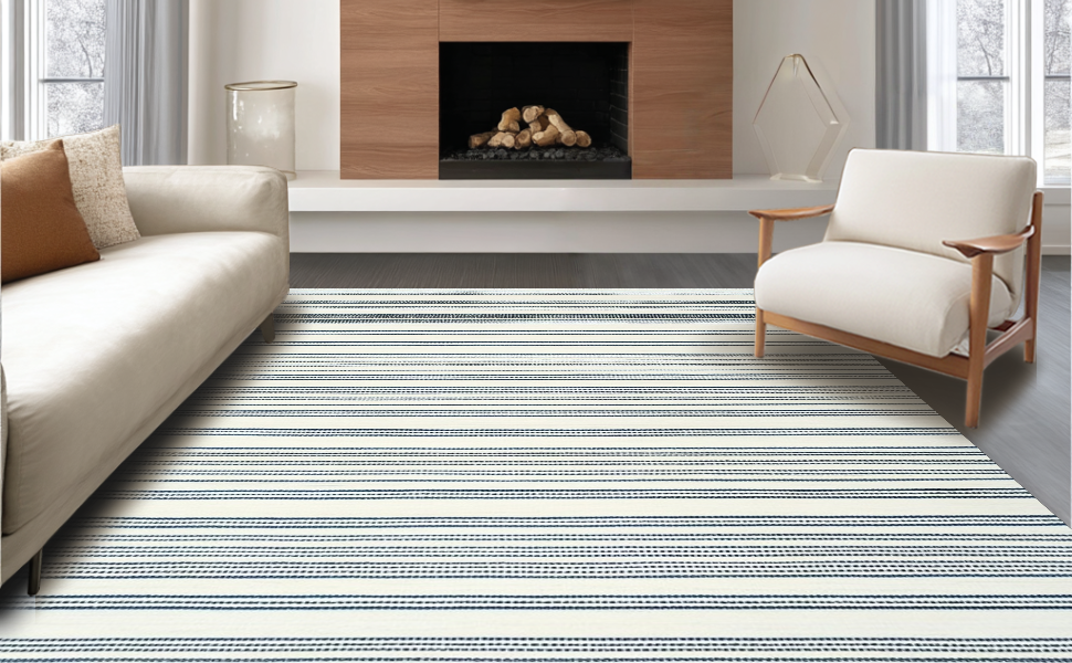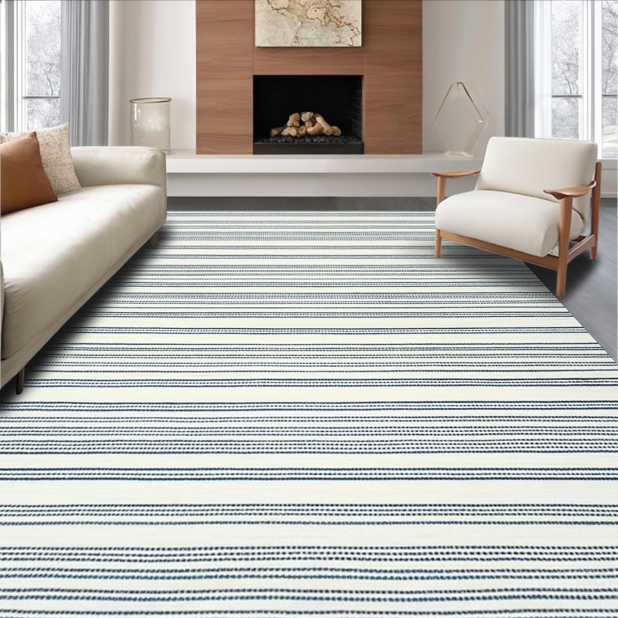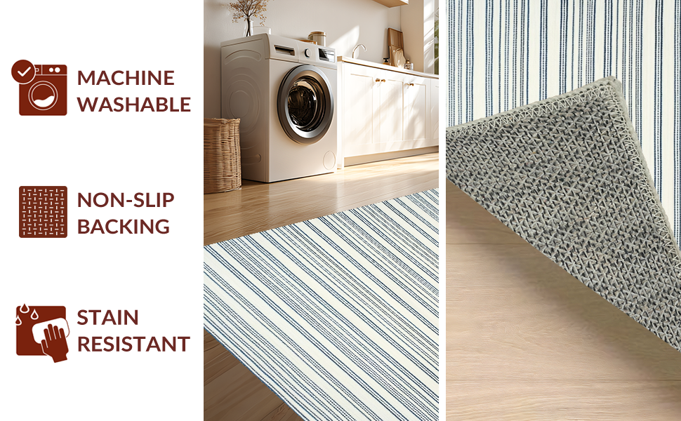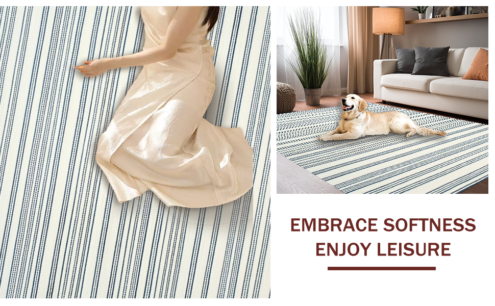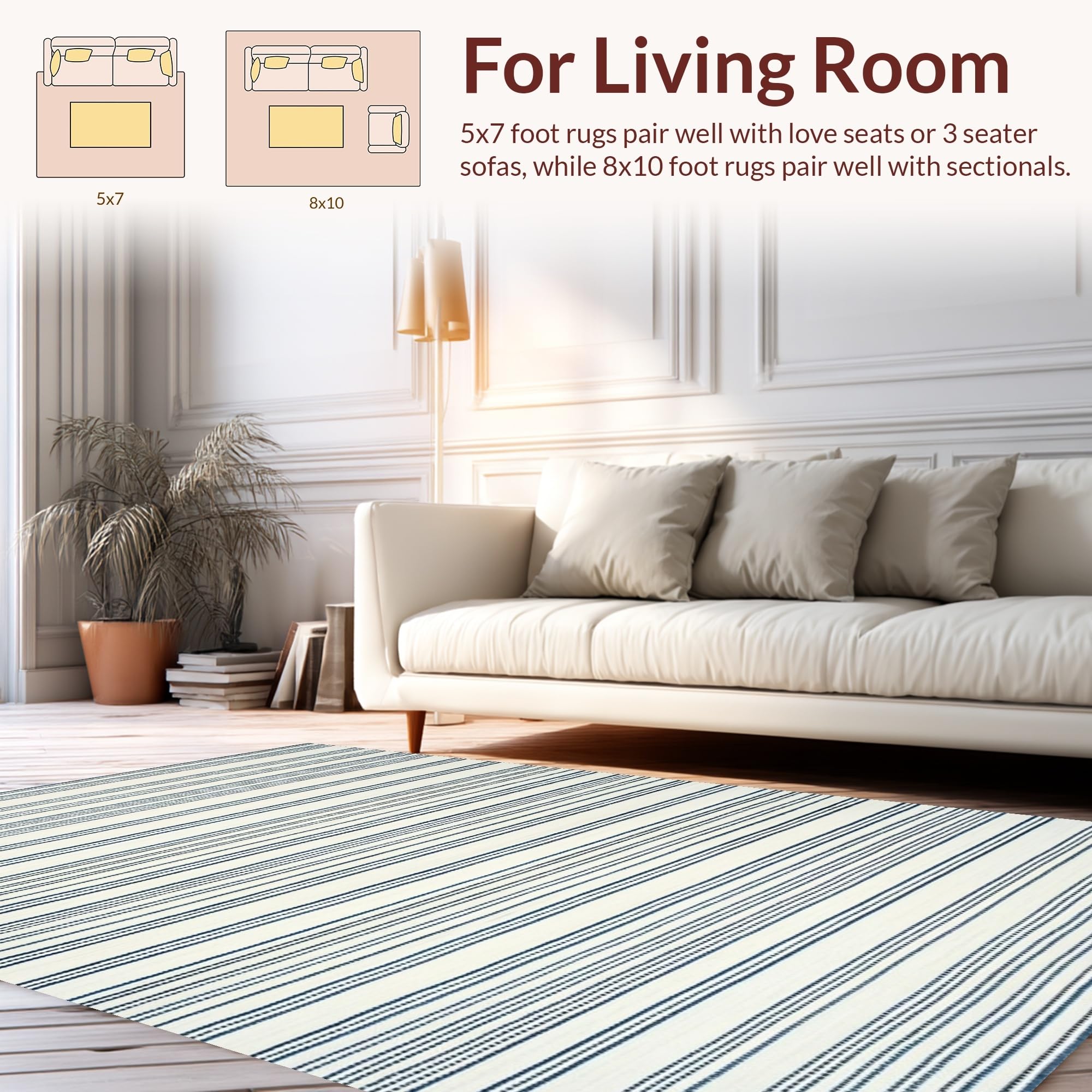 Ultra Soft Area Rug, Non Slip, Stain Resistant, Washable Area Rugs for Living Room, Bedroom, Chic Minimalist Cotton Stripe Design(Beige) Overview: