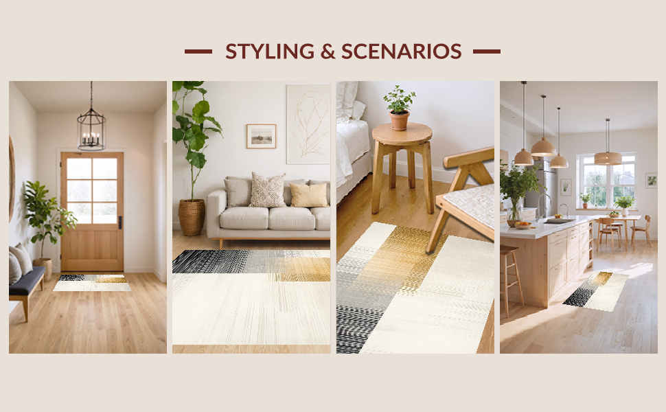 Ultra Soft Area Rug, Non Slip, Stain Resistant, Washable Area Rugs for Living Room, Bedroom, Chic Minimalist Cream Color Fusion(Beige) Overview: