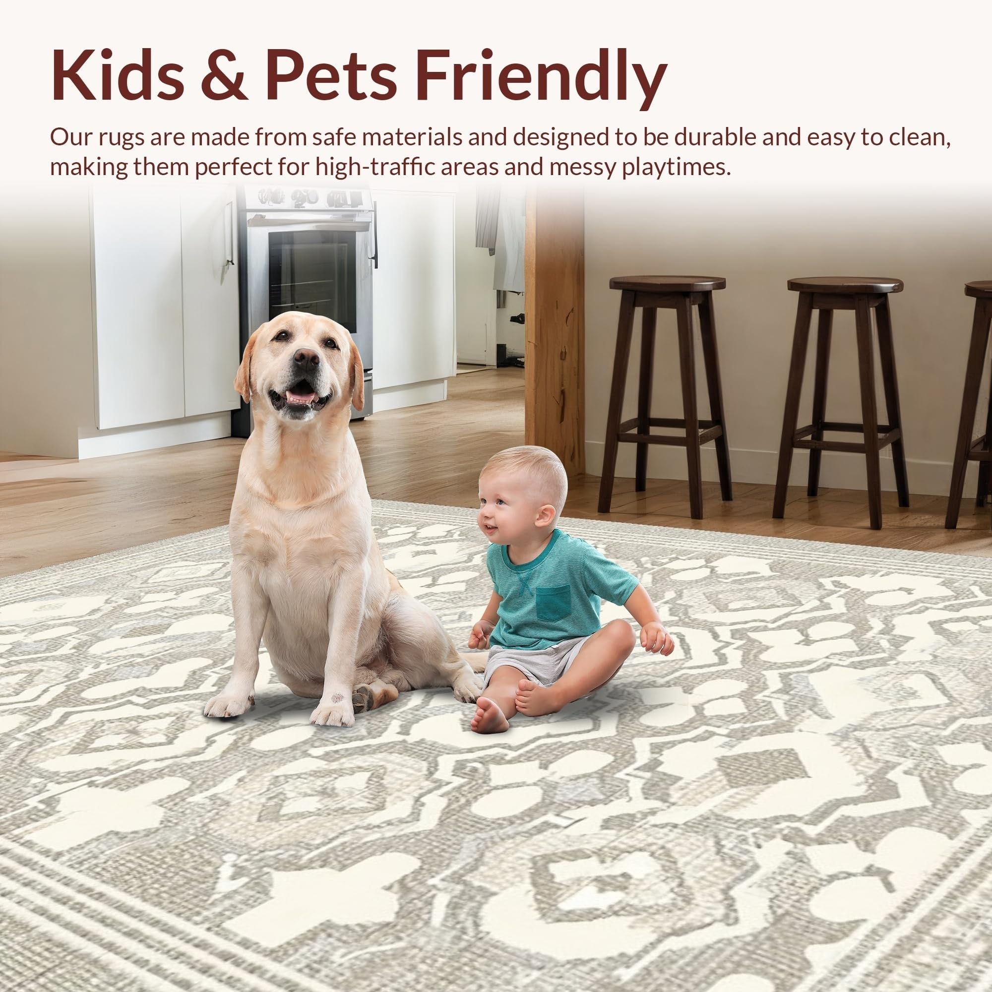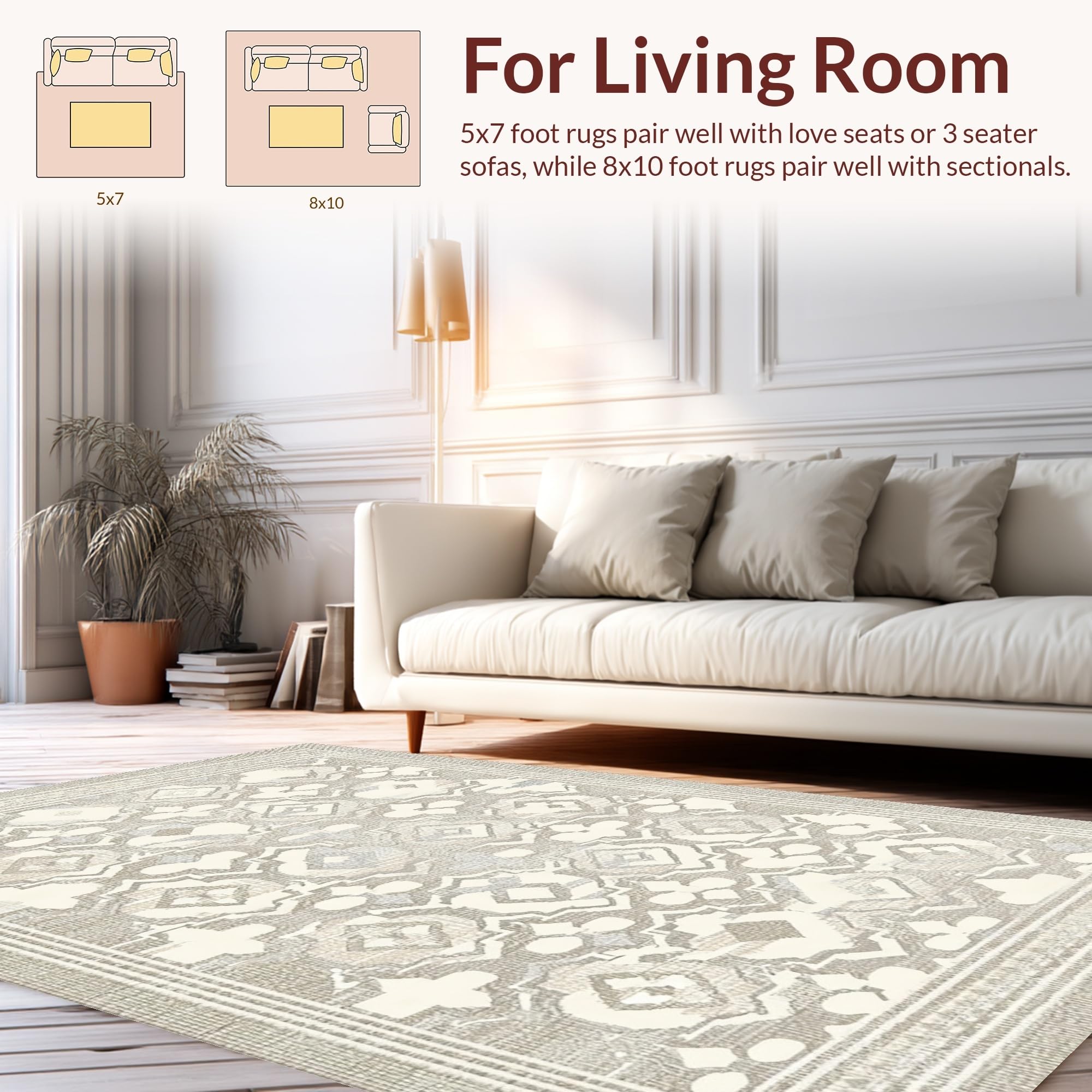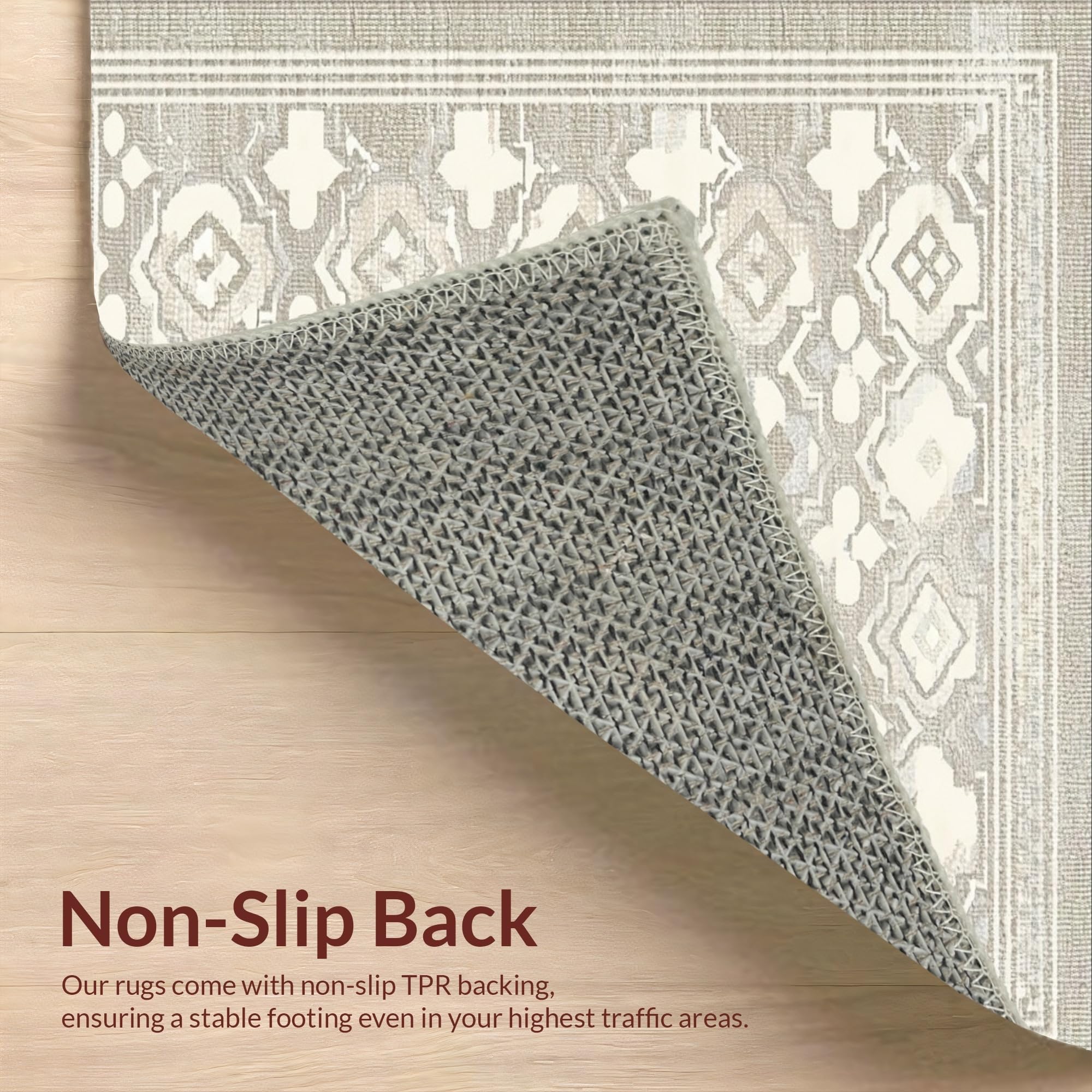 Ultra Soft Area Rug, Non Slip, Stain Resistant, Washable Area Rugs for Living Room, Bedroom, Chic Minimalist Cream Shag Finish(Gray) Overview: