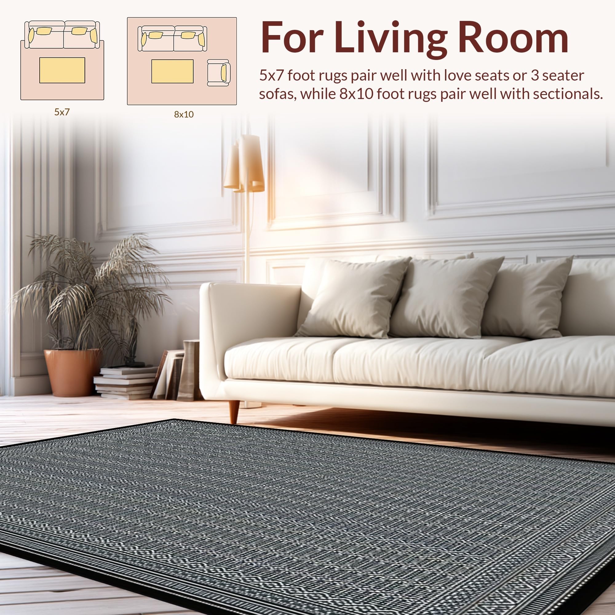 Ultra Soft Area Rug, Non Slip, Stain Resistant, Washable Area Rugs for Living Room, Bedroom, Chic Minimalist Diamond Design(Gray) Overview: