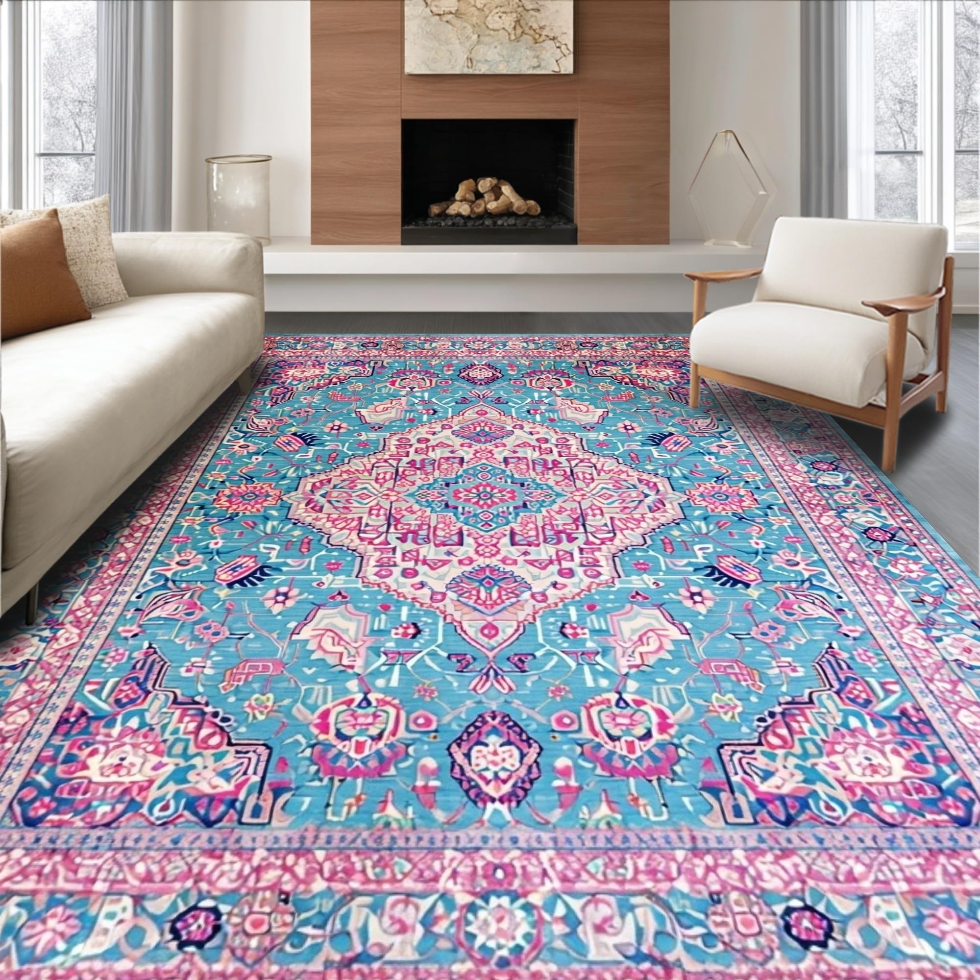 Ultra Soft Area Rug, Non Slip, Stain Resistant, Washable Area Rugs for Living Room, Bedroom, Chic Minimalist Diamond Layout(Blue) Overview: