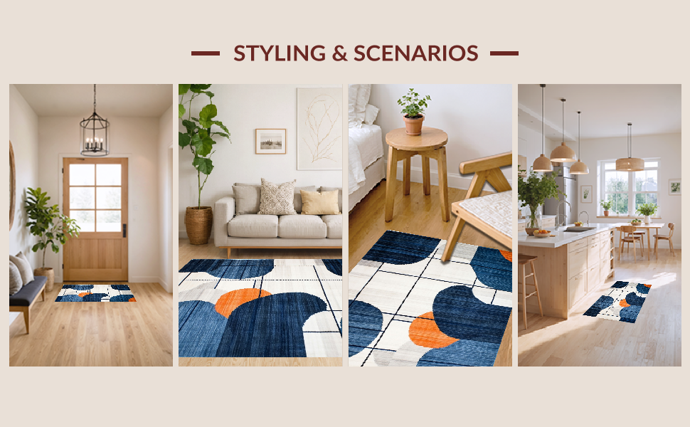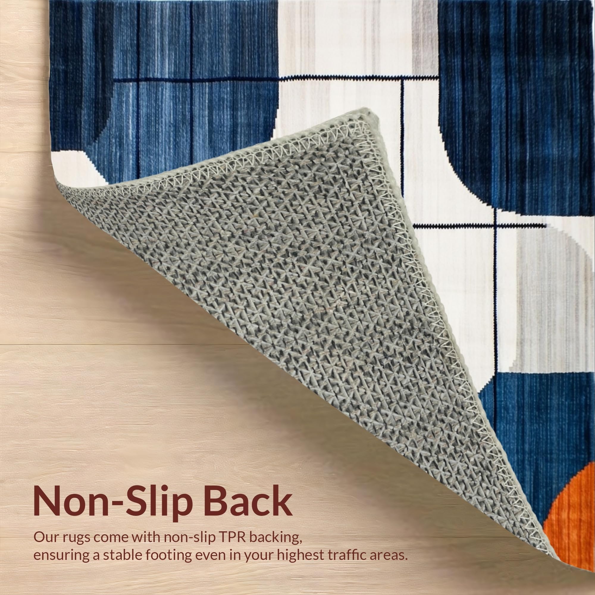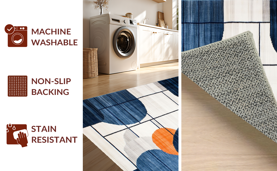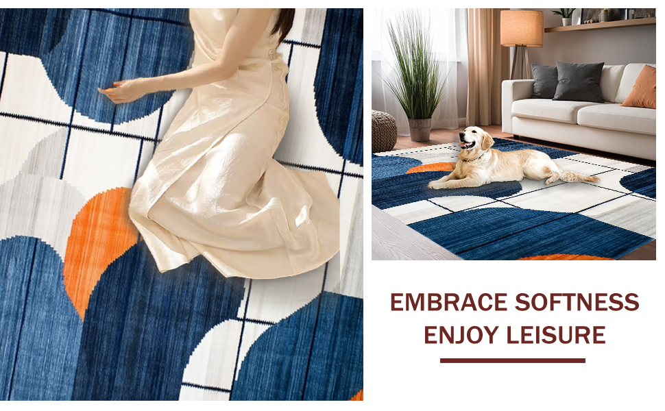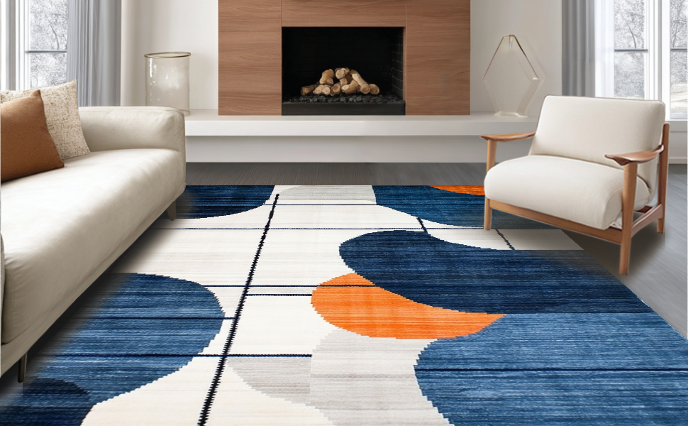 Ultra Soft Area Rug, Non Slip, Stain Resistant, Washable Area Rugs for Living Room, Bedroom, Chic Minimalist Geometric Aesthetic(Blue) Overview: