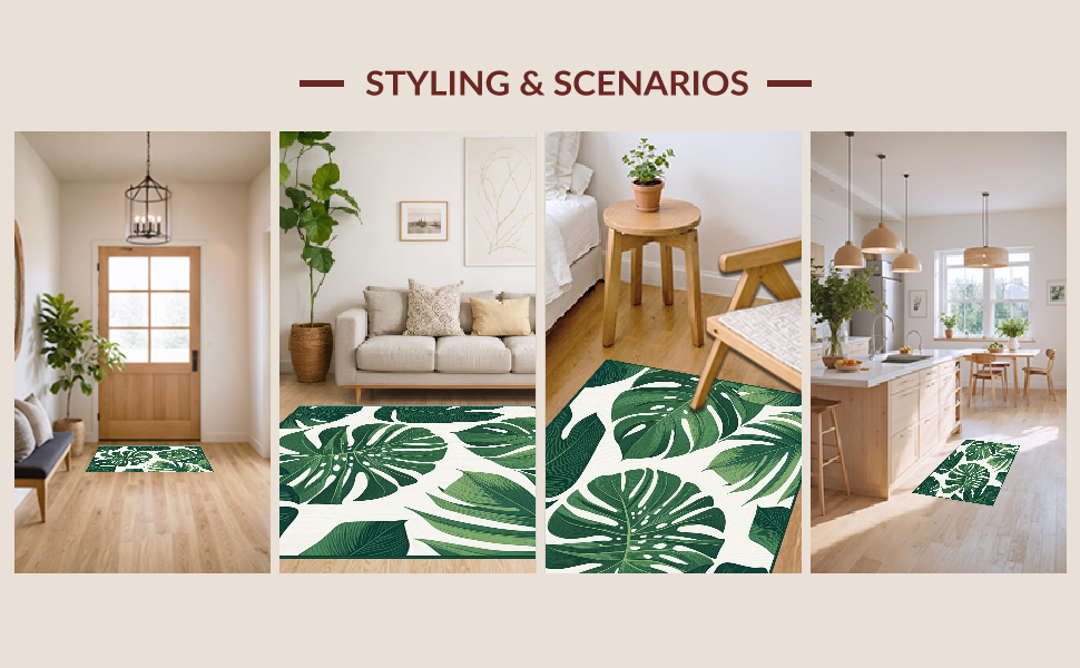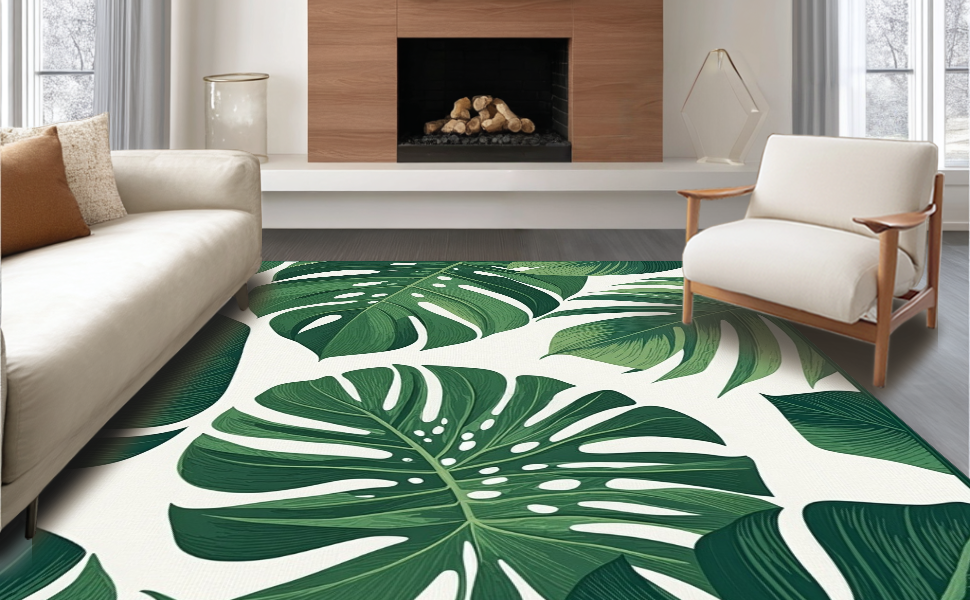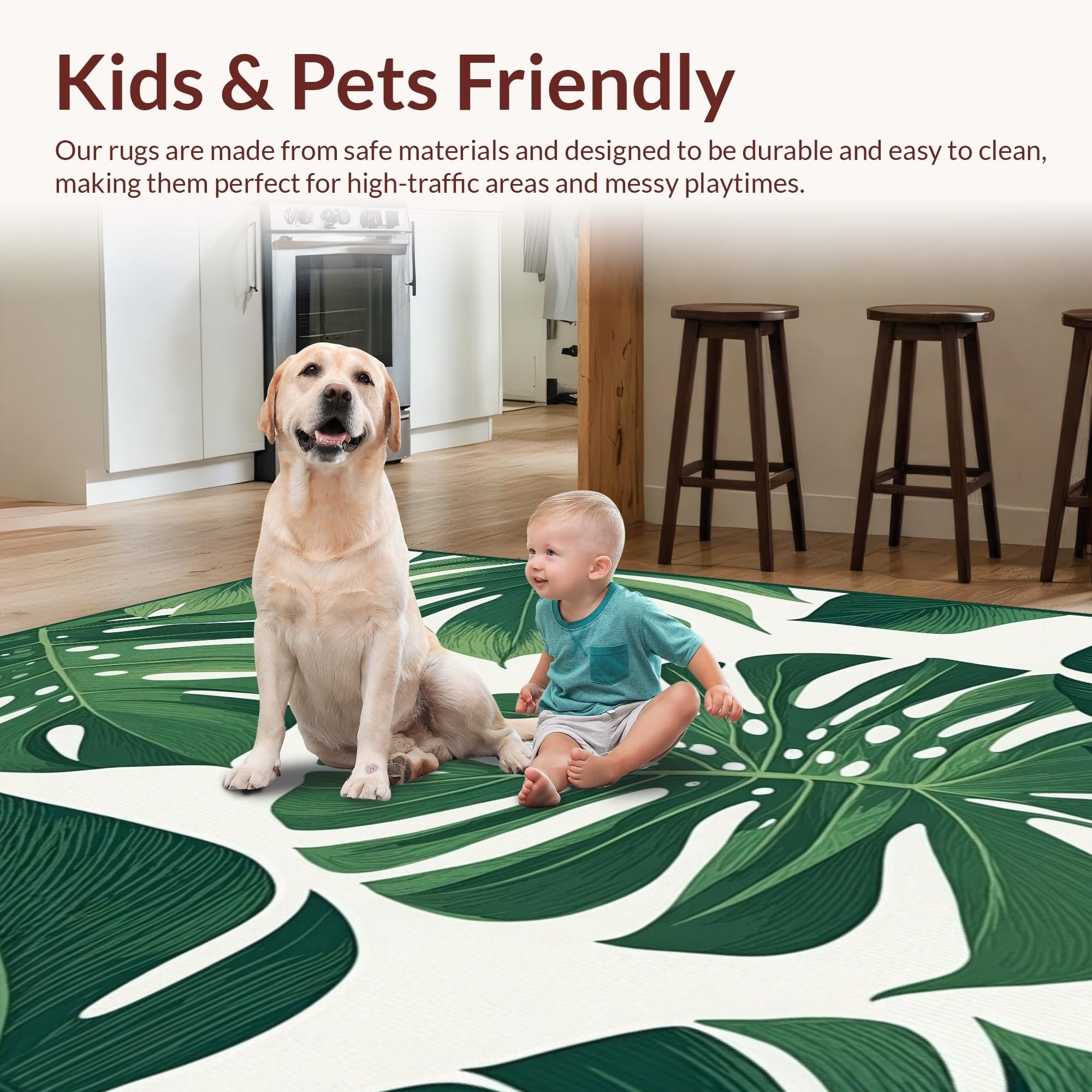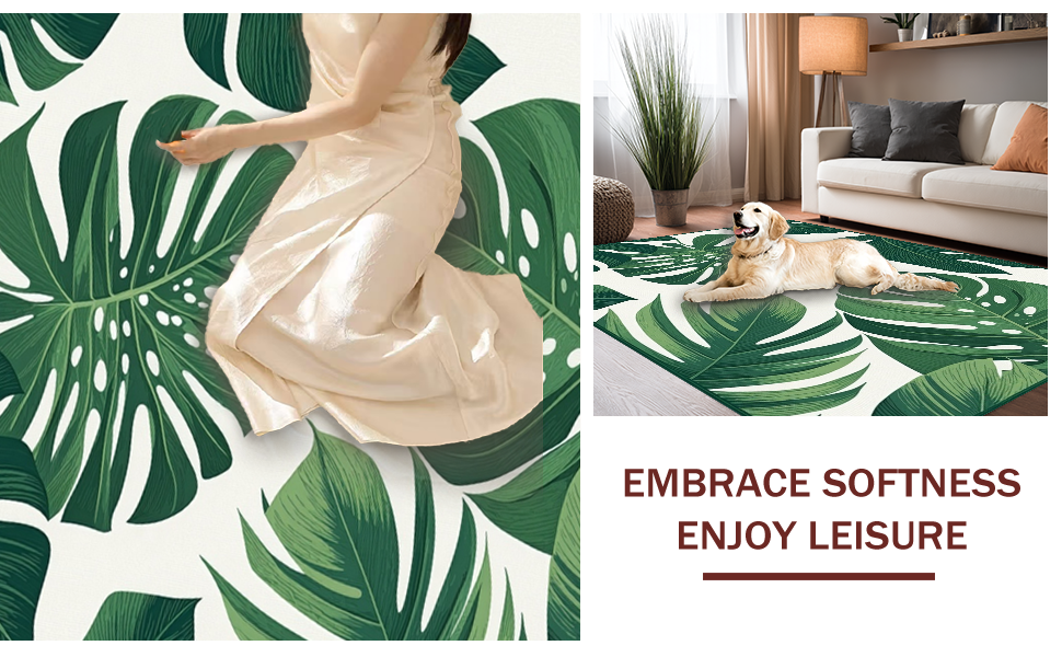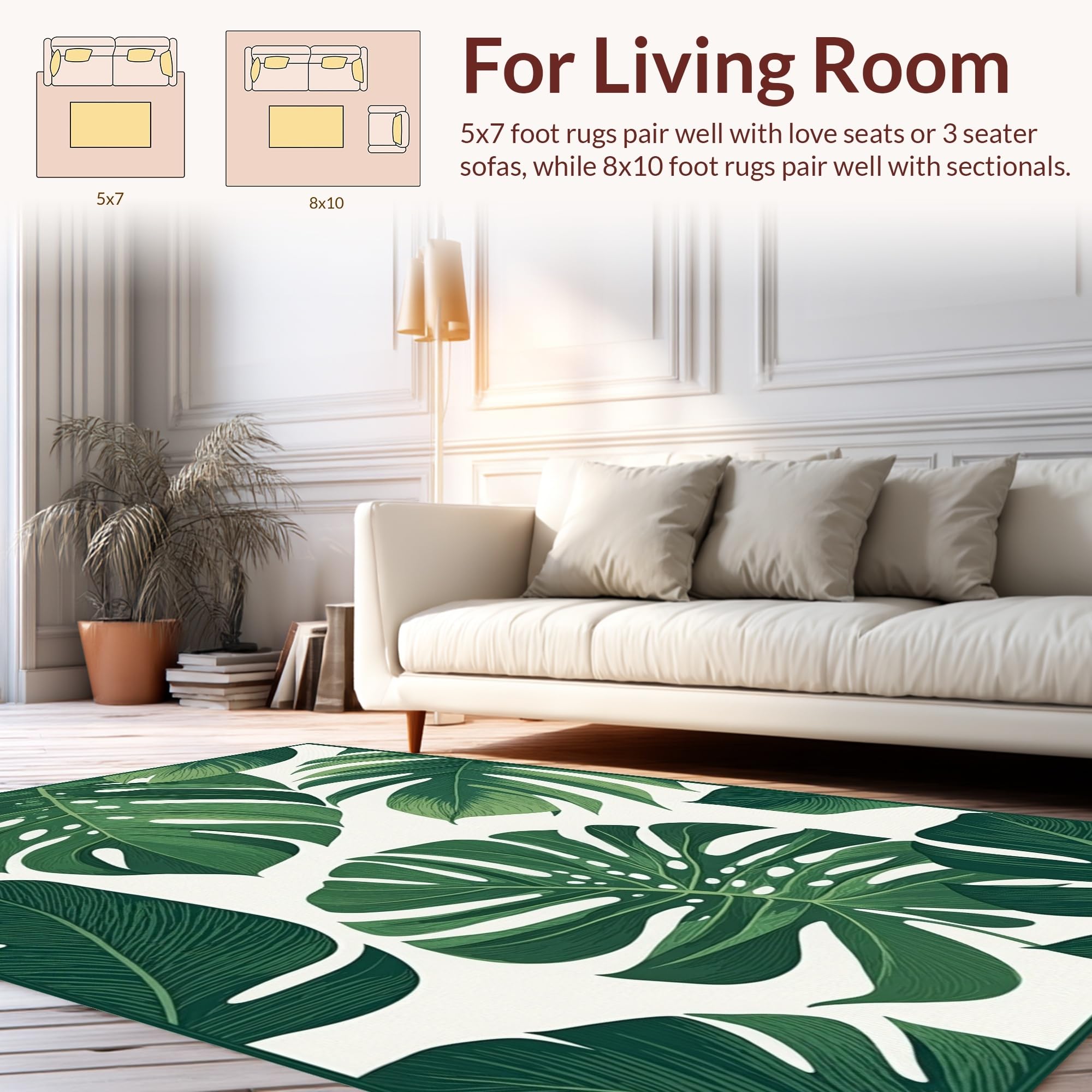 Ultra Soft Area Rug, Non Slip, Stain Resistant, Washable Area Rugs for Living Room, Bedroom, Chic Minimalist Green Palette(Green) Overview: