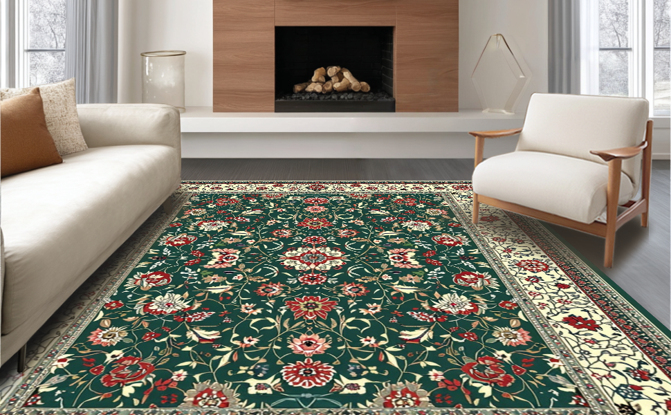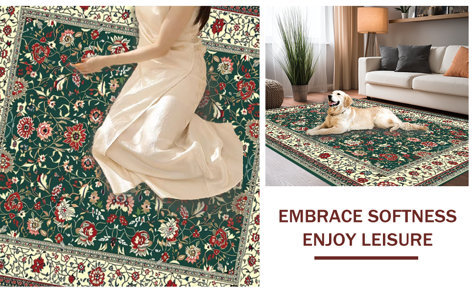 Ultra Soft Area Rug, Non Slip, Stain Resistant, Washable Area Rugs for Living Room, Bedroom, Chic Minimalist Leaf Print(Green) Overview: