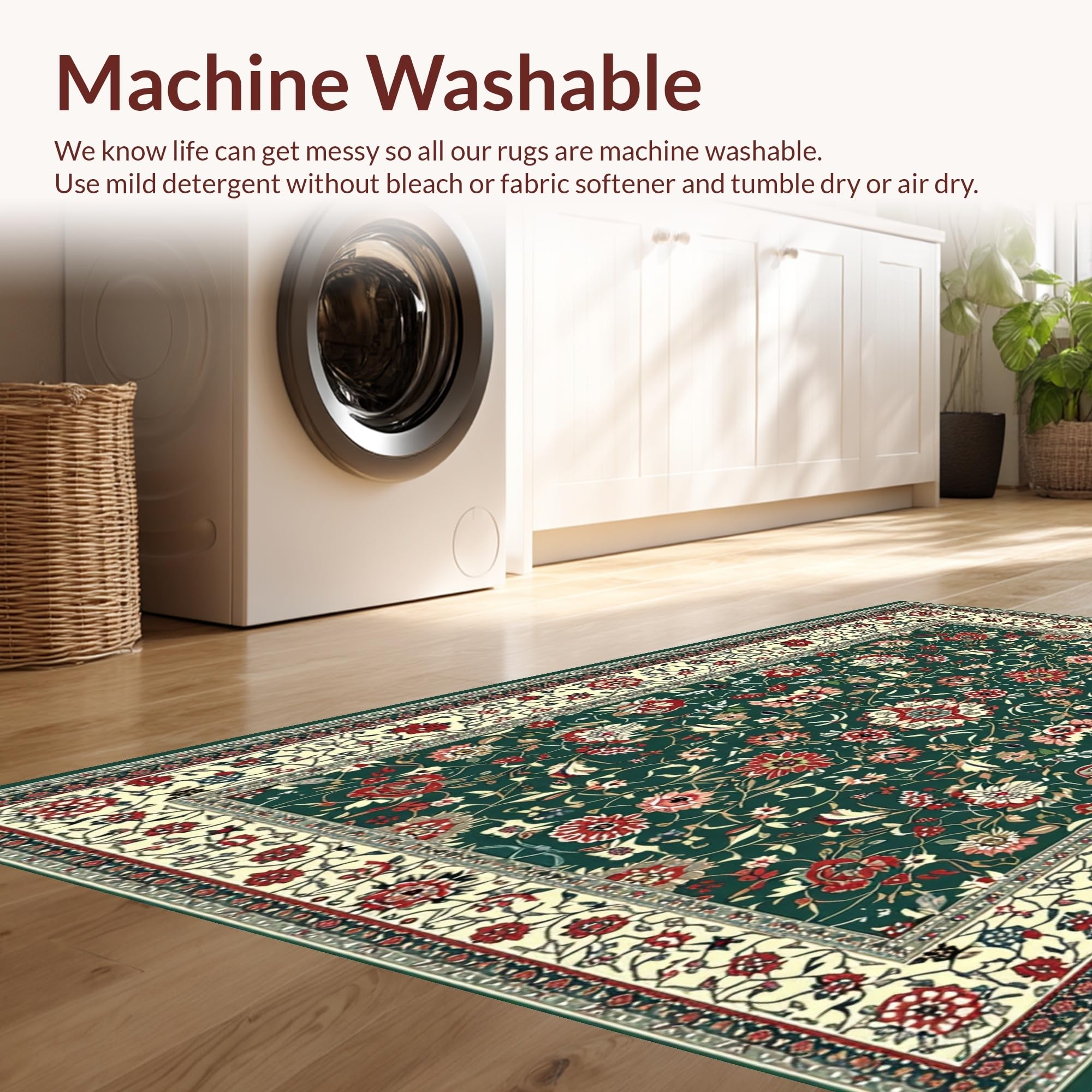 - Machine Washable: Our rugs can be easily thrown in the wash machine.