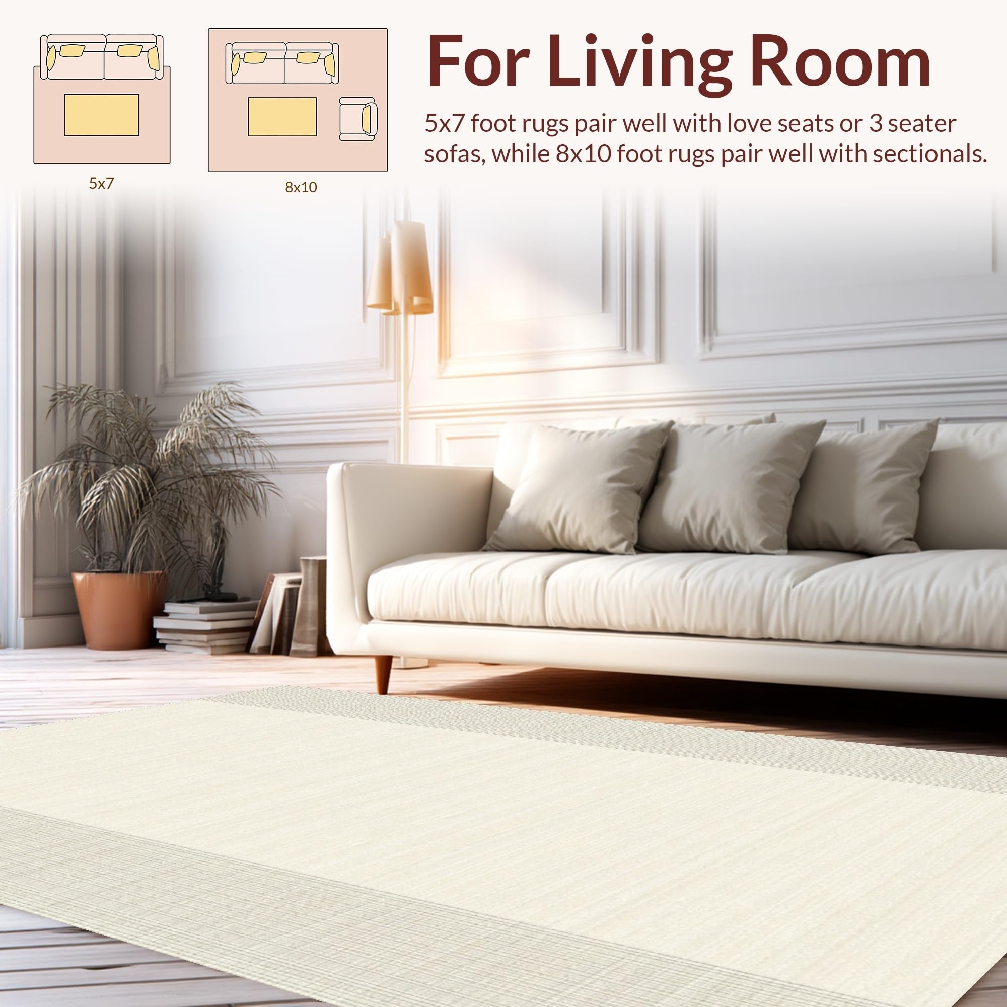 Ultra Soft Area Rug, Non Slip, Stain Resistant, Washable Area Rugs for Living Room, Bedroom, Chic Minimalist Round Aesthetic(Beige) Overview: