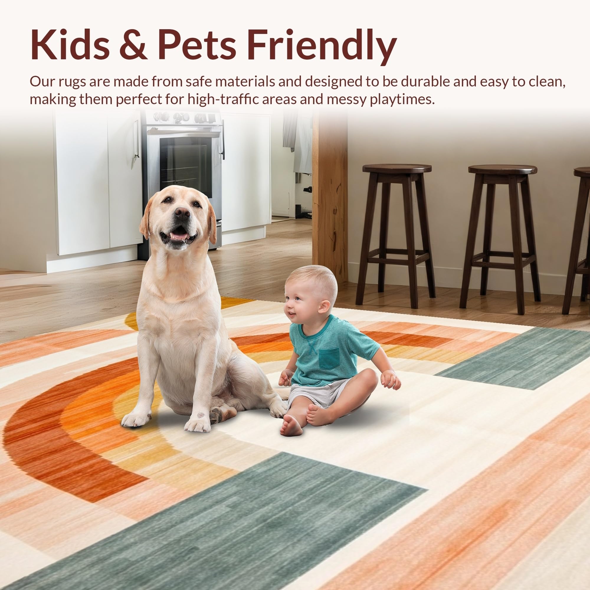 Ultra Soft Area Rug, Non Slip, Stain Resistant, Washable Area Rugs for Living Room, Bedroom, Chic Minimalist Soft Palette(Beige) Overview: