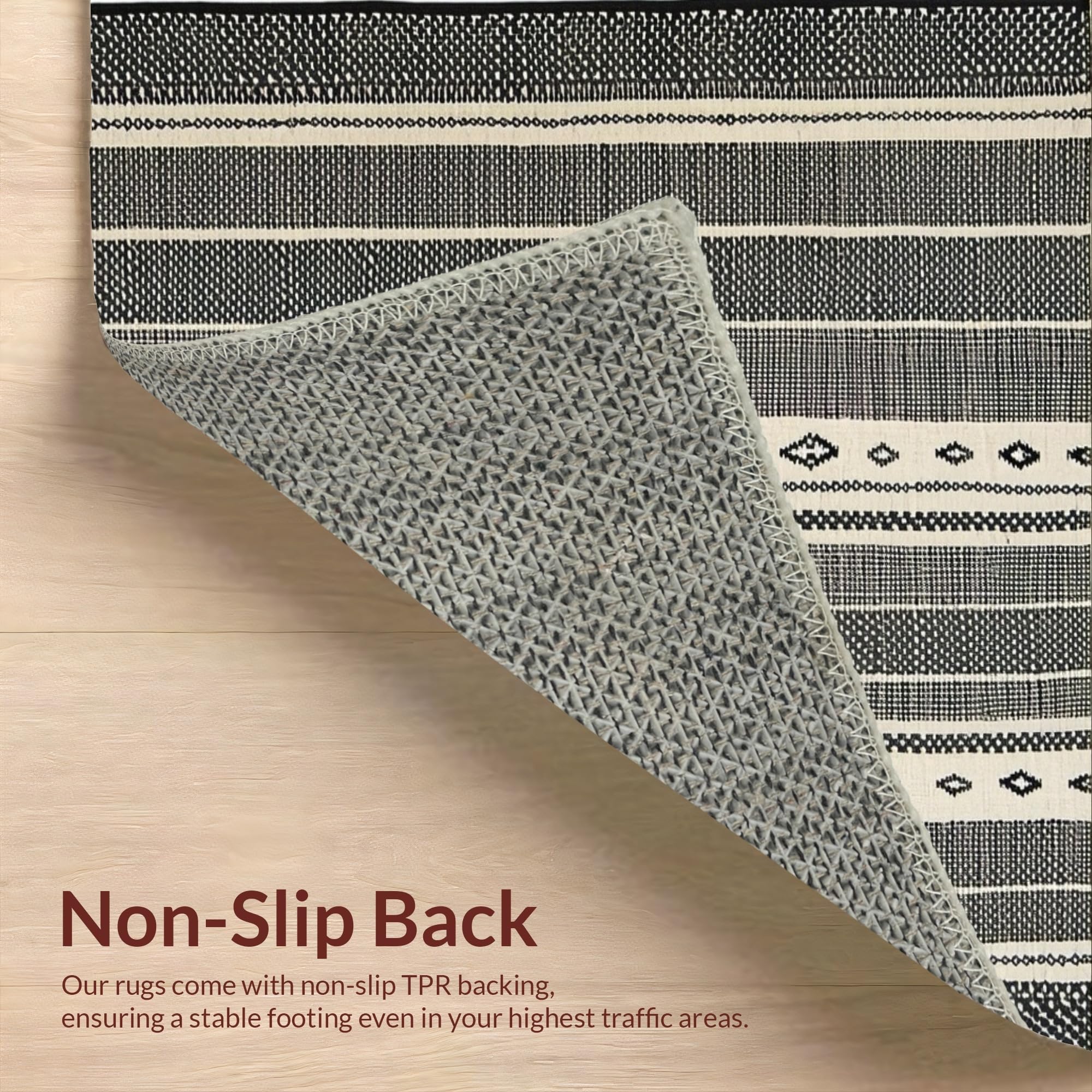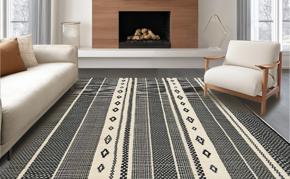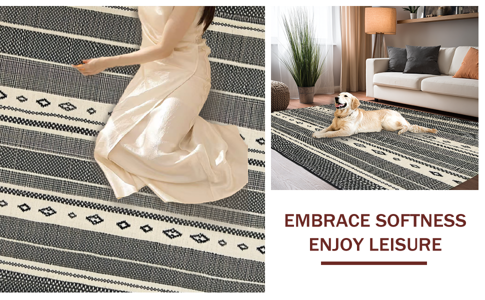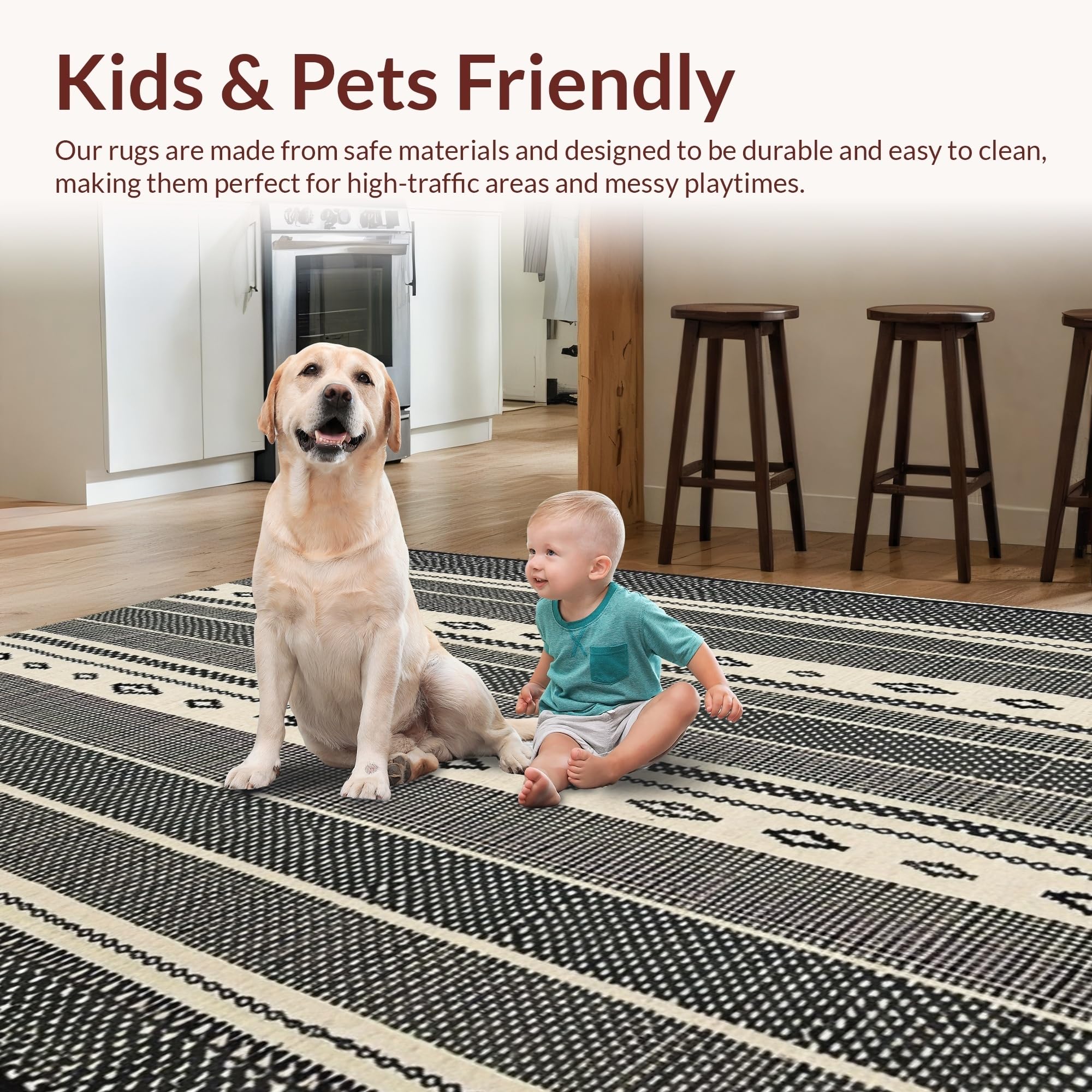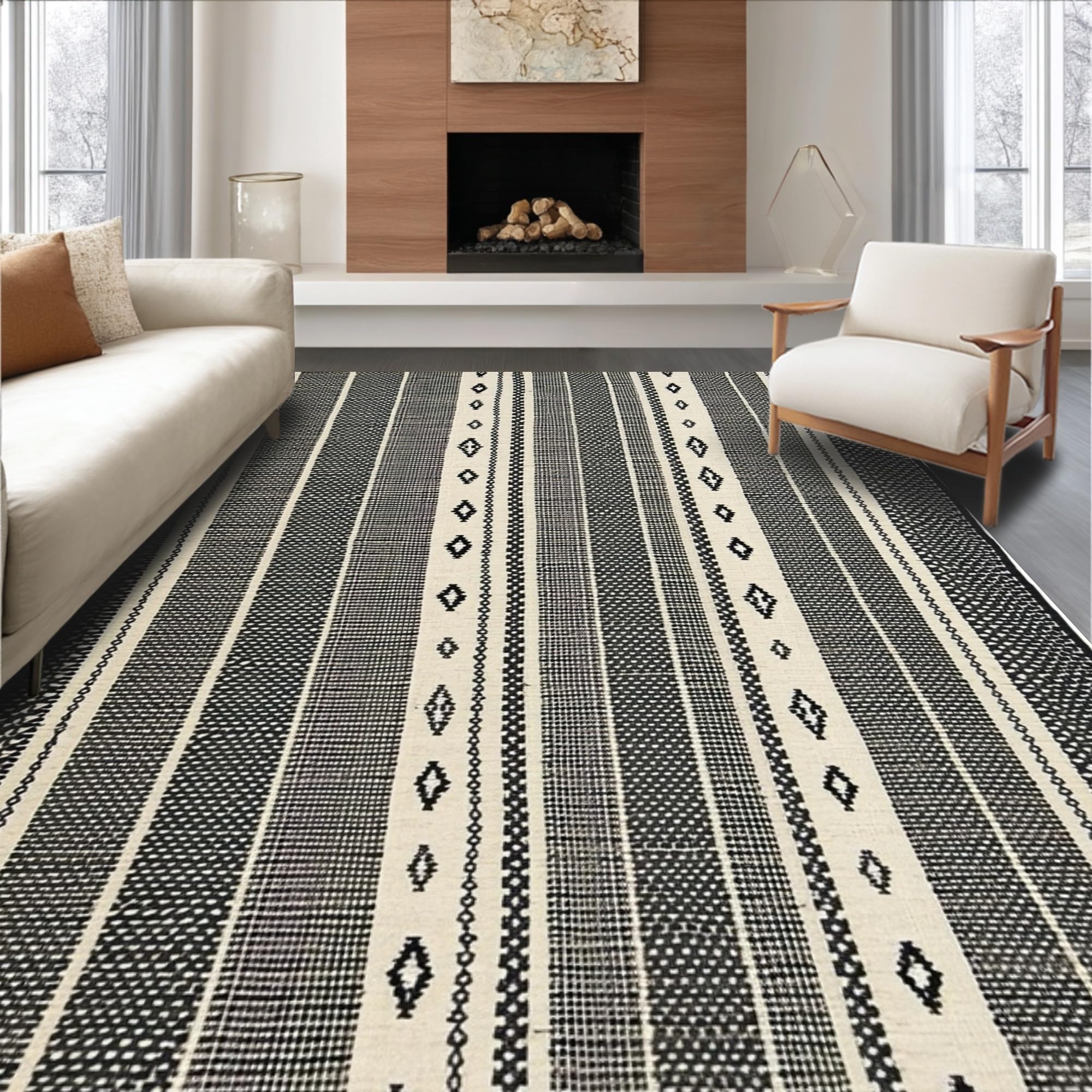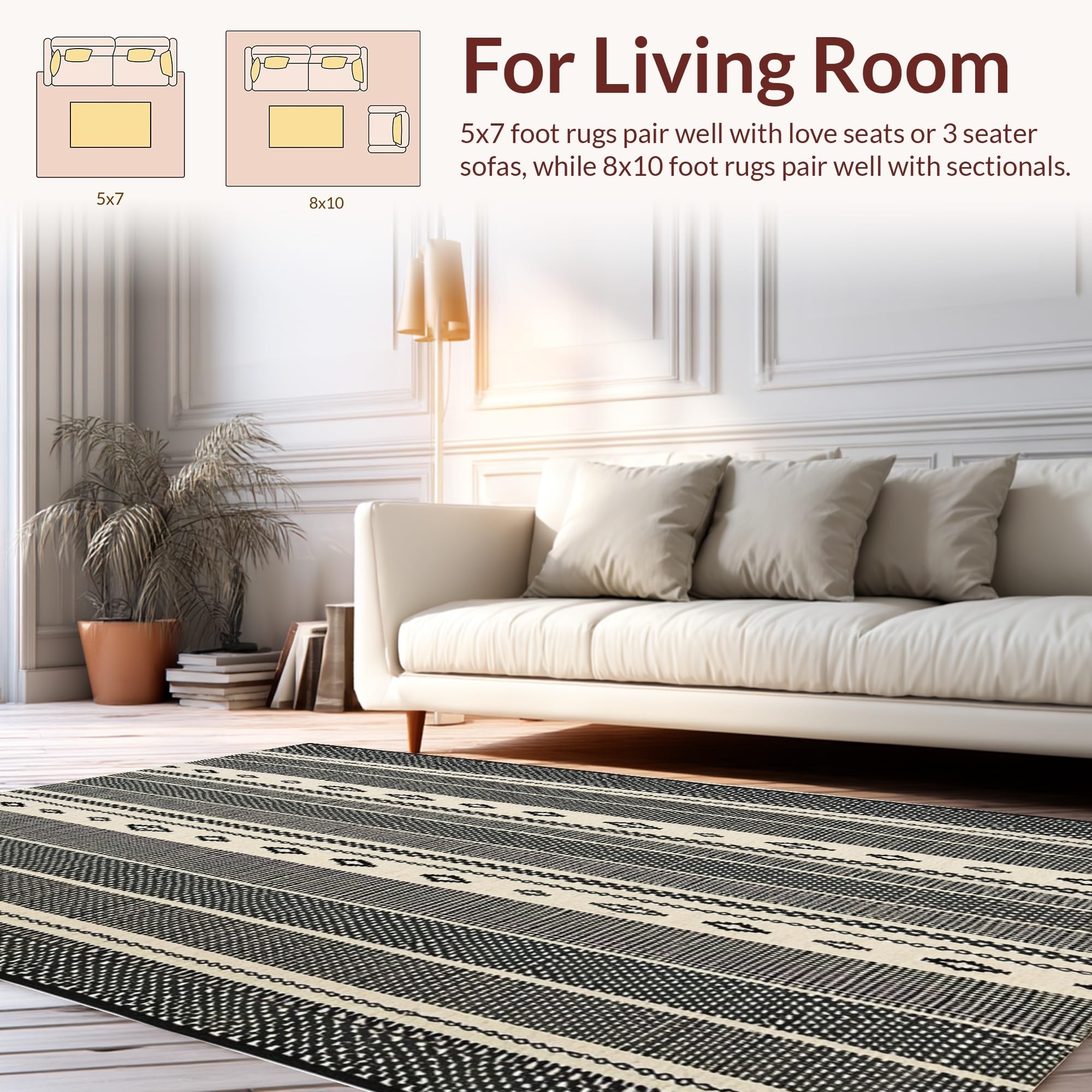 Ultra Soft Area Rug, Non Slip, Stain Resistant, Washable Area Rugs for Living Room, Bedroom, Chic Minimalist Soft Tones Design(Black) Overview: