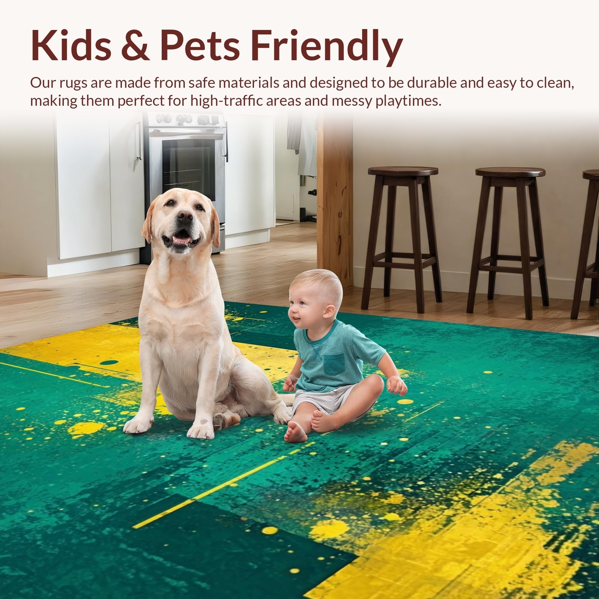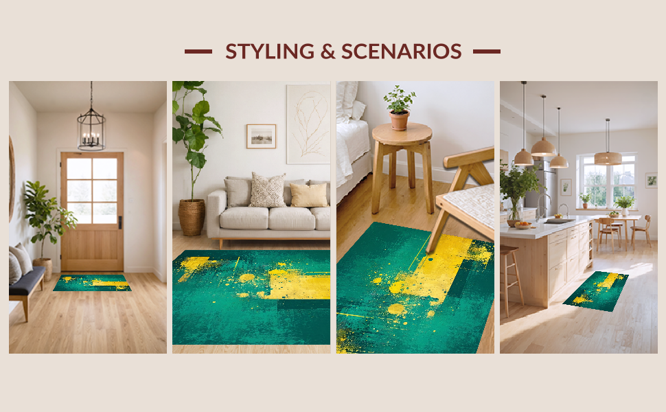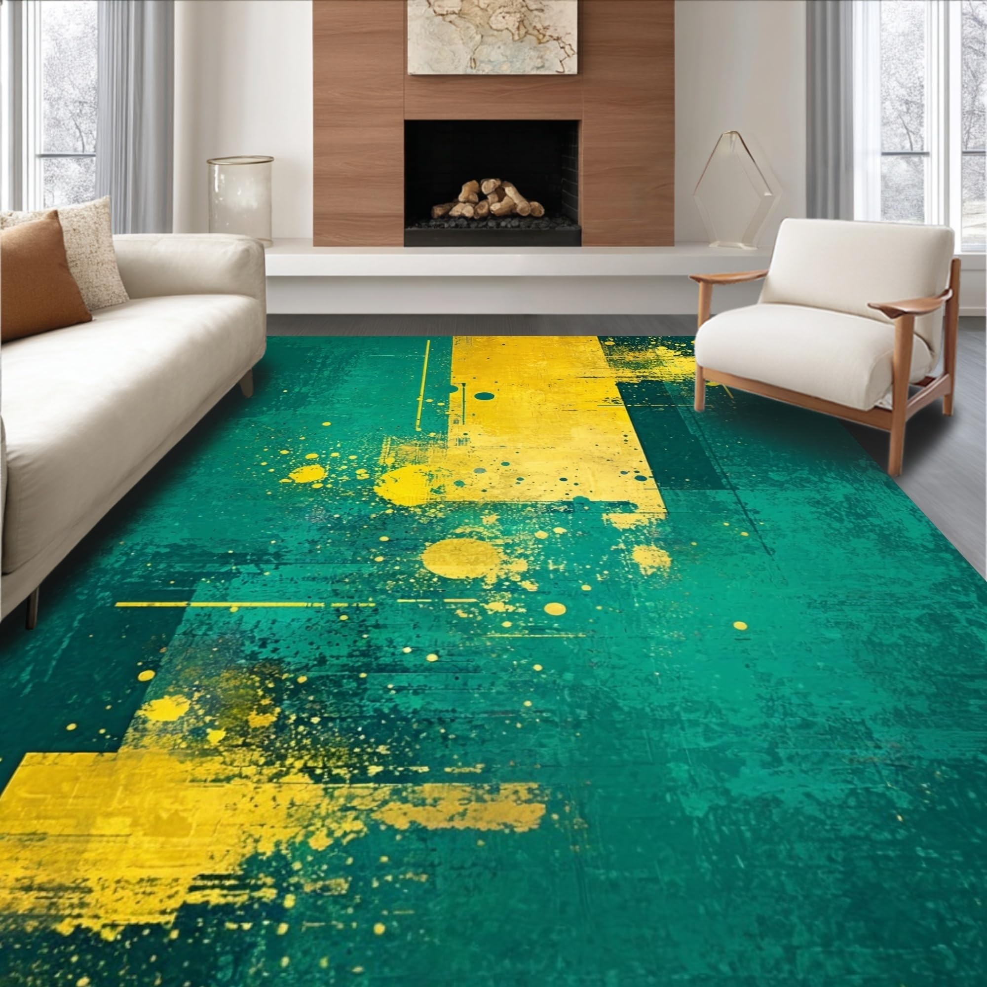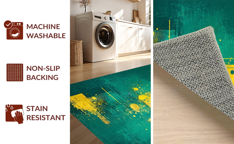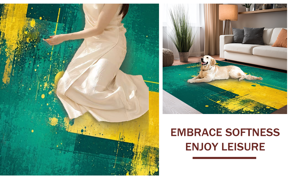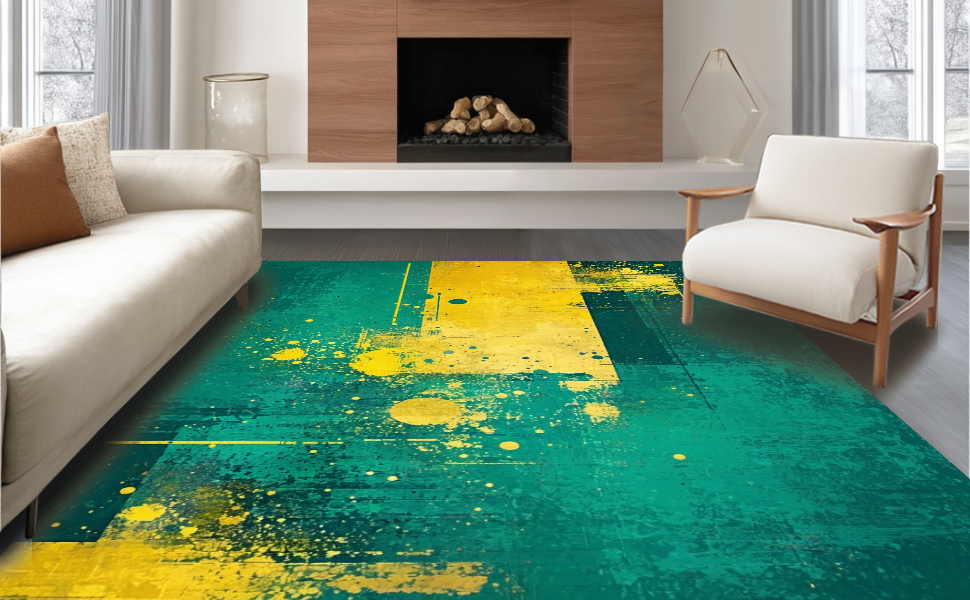 Ultra Soft Area Rug, Non Slip, Stain Resistant, Washable Area Rugs for Living Room, Bedroom, Chic Minimalist Splash of Color(Green) Overview: