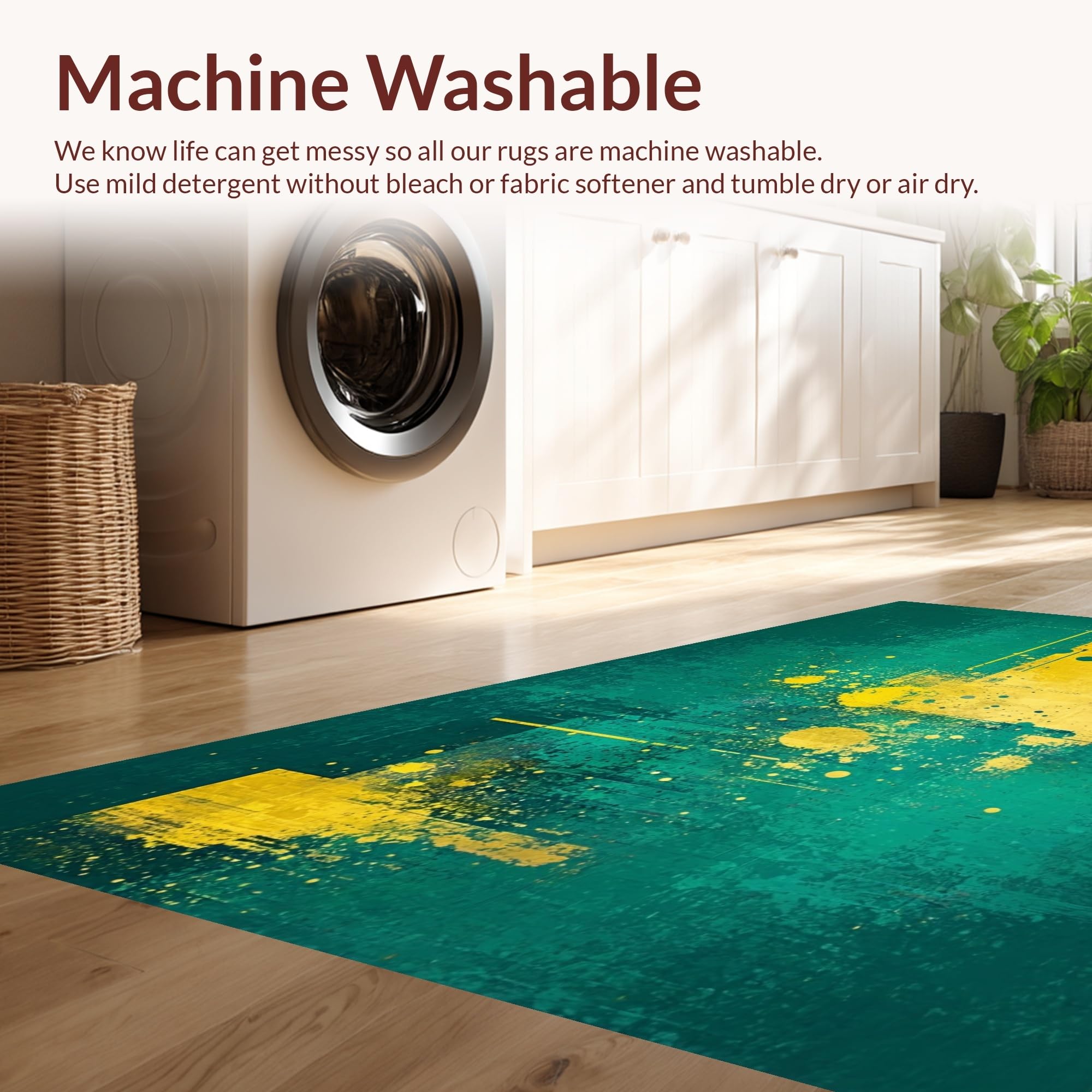 - Machine Washable: Our rugs can be easily thrown in the wash machine.