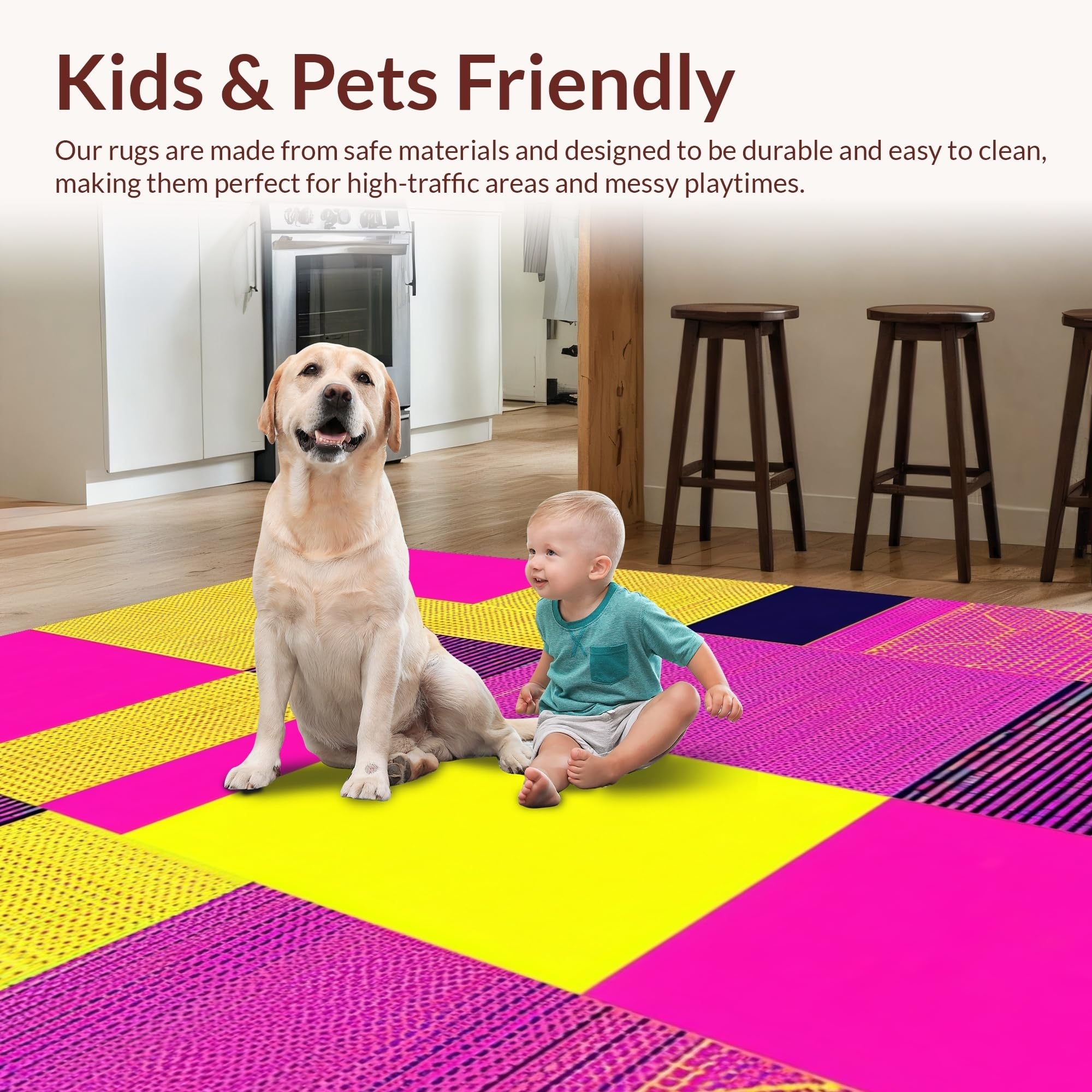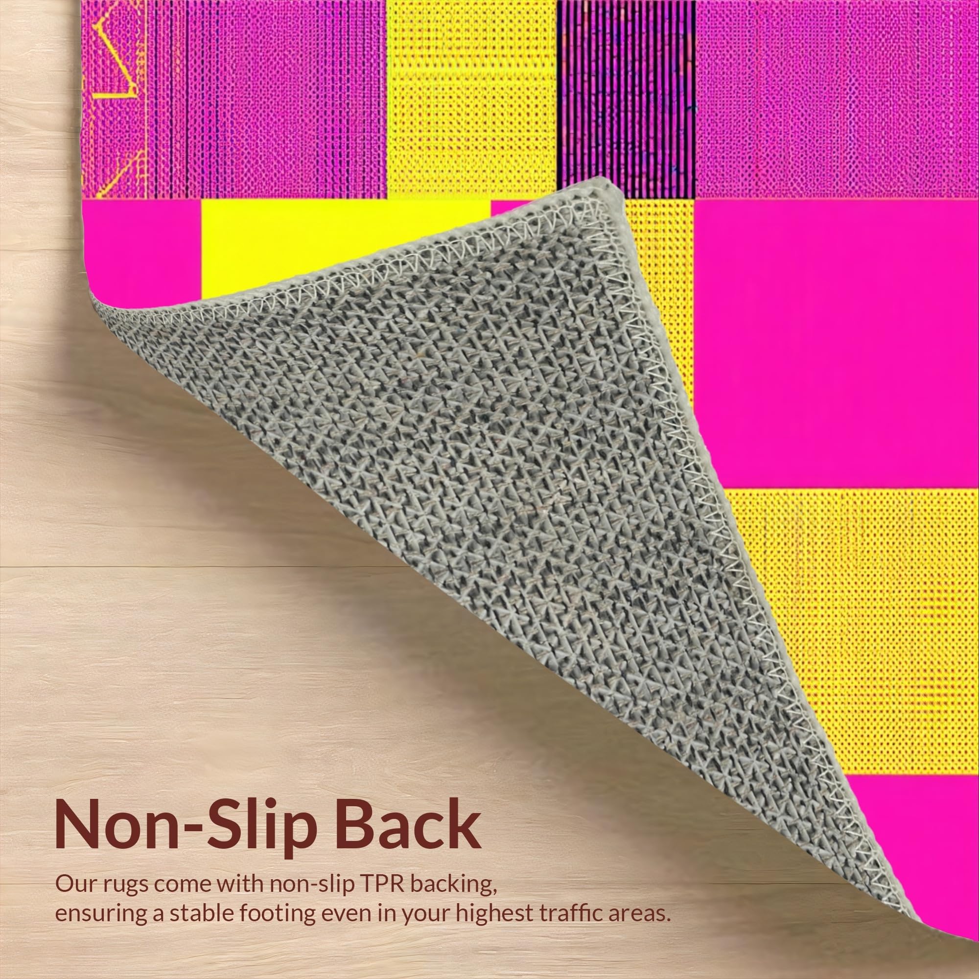 Ultra Soft Area Rug, Non Slip, Stain Resistant, Washable Area Rugs for Living Room, Bedroom, Chic Minimalist Swear Word Motif(Pink) Overview: