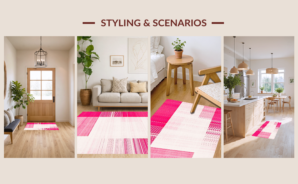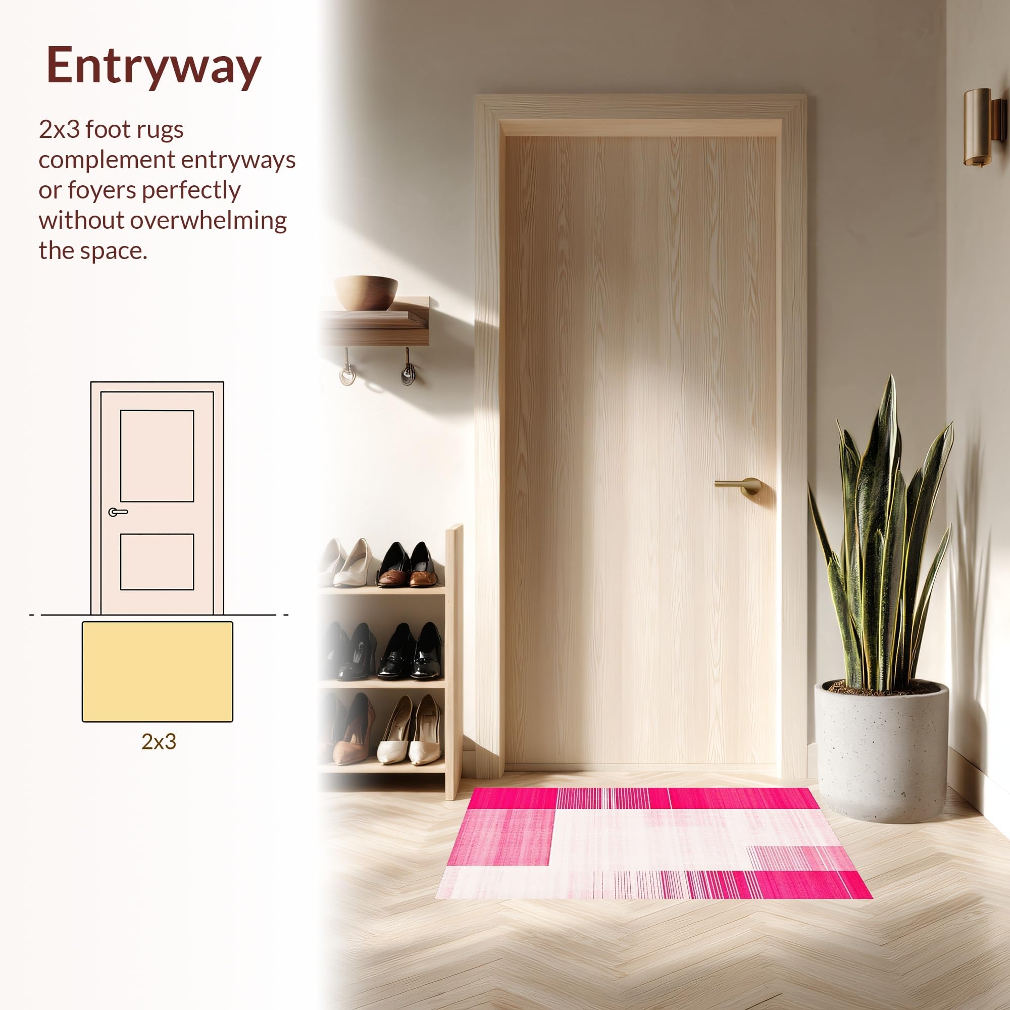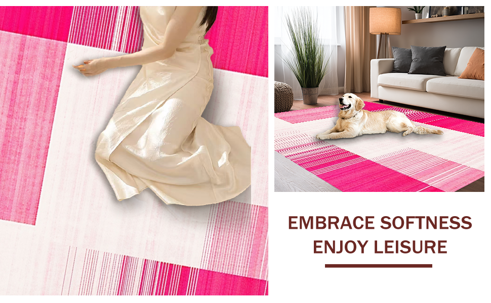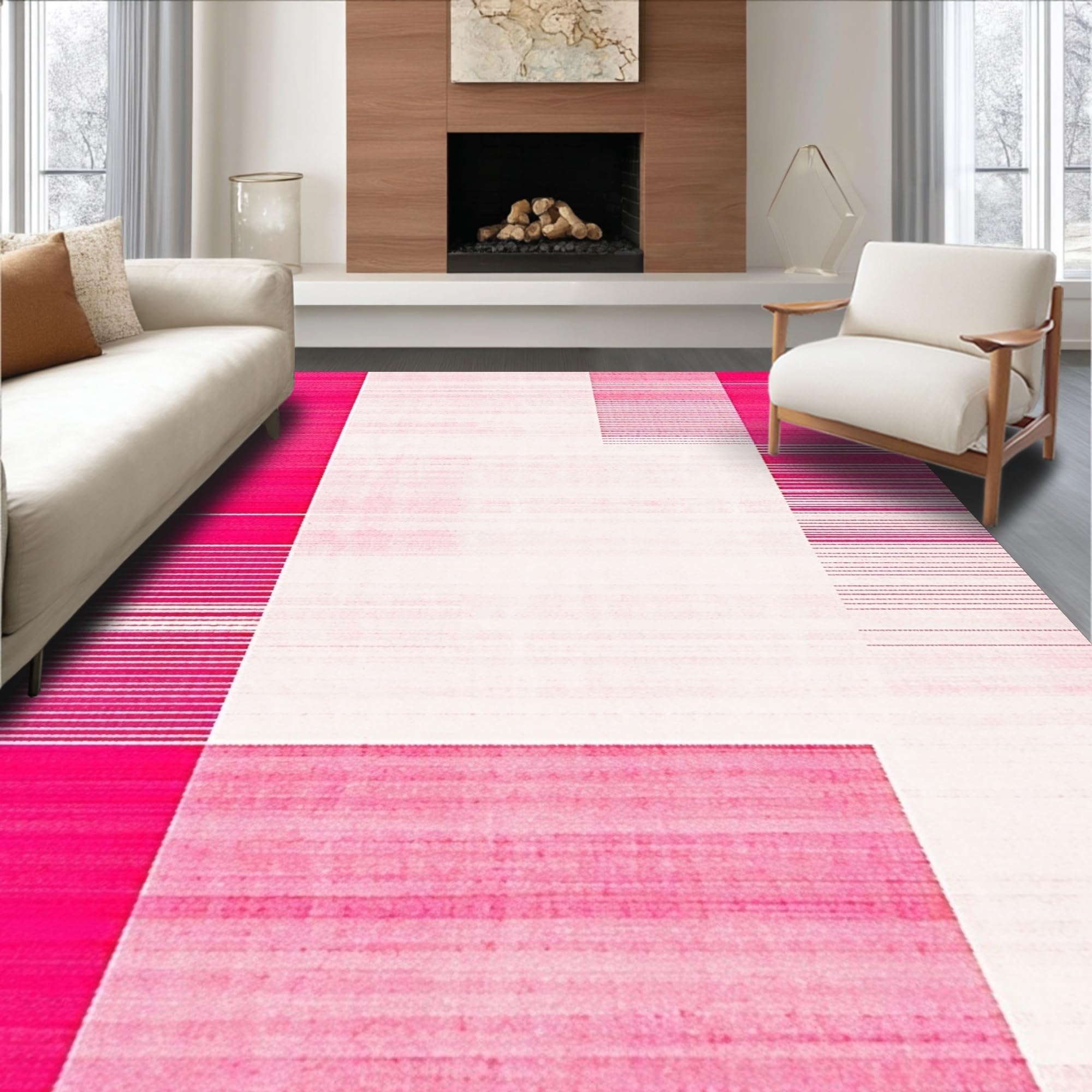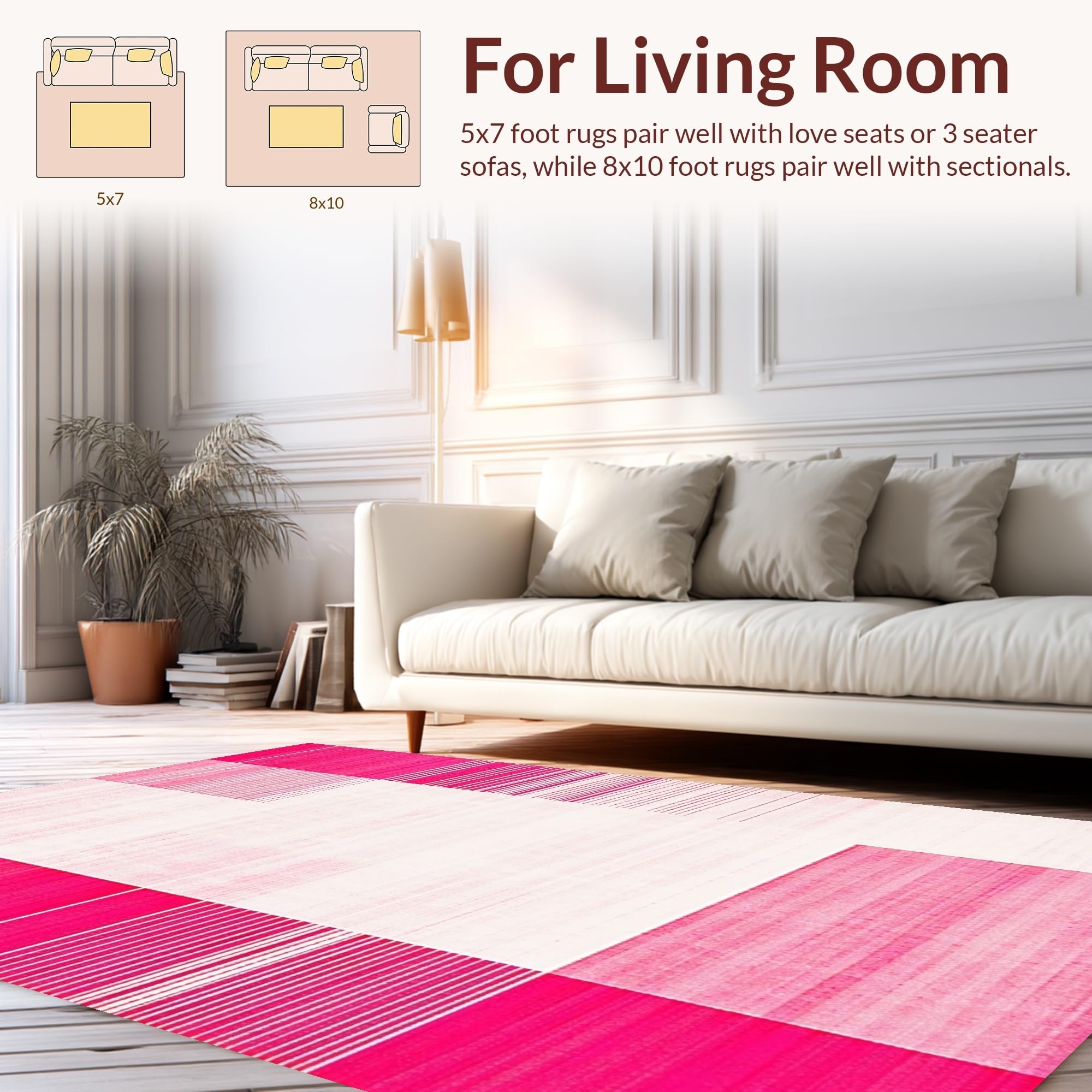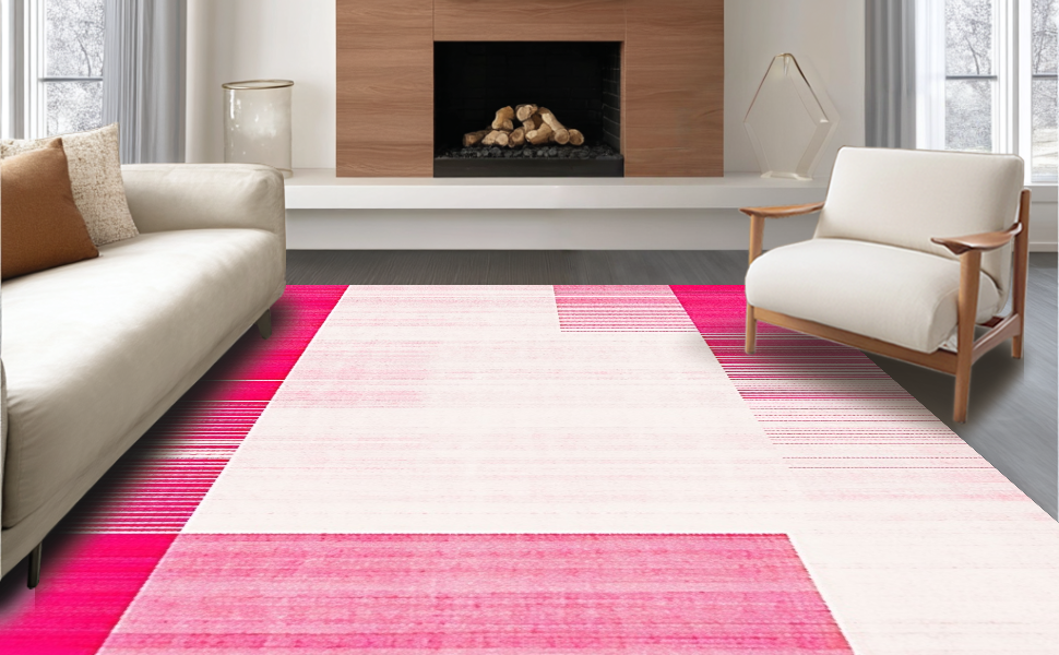 Ultra Soft Area Rug, Non Slip, Stain Resistant, Washable Area Rugs for Living Room, Bedroom, Chic Minimalist Symmetrical Patterns(Pink) Overview: