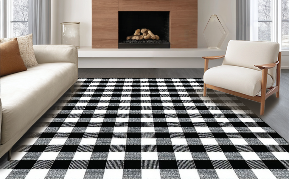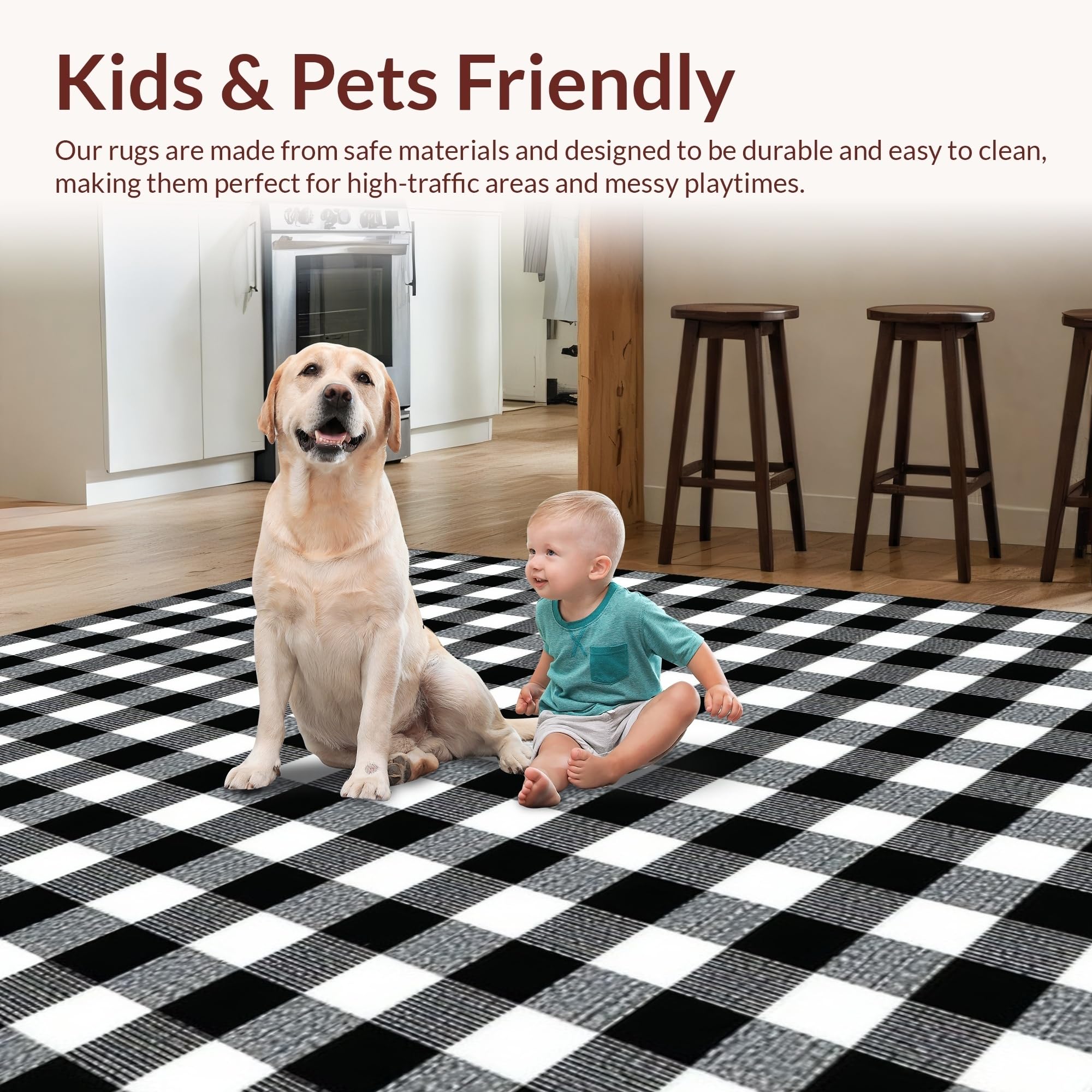 Ultra Soft Area Rug, Non Slip, Stain Resistant, Washable Area Rugs for Living Room, Bedroom, Chic Minimalist Tiled Look(Black) Overview: