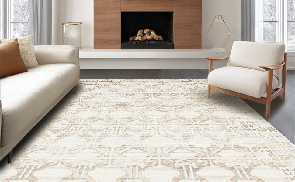 Ultra Soft Area Rug, Non Slip, Stain Resistant, Washable Area Rugs for Living Room, Bedroom, Chic Minimalist Tiled Pattern Style(Beige) Overview: