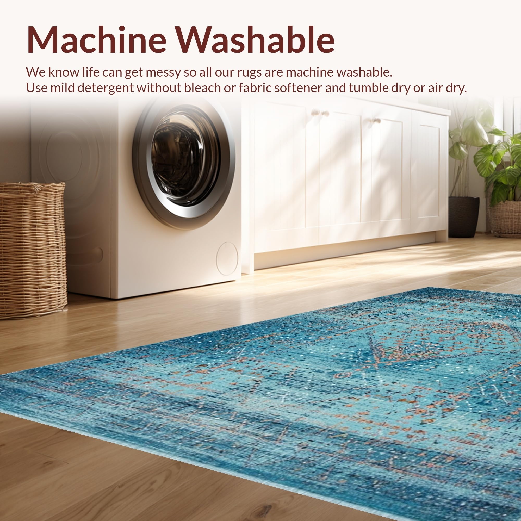 - Machine Washable: Our rugs can be easily thrown in the wash machine.