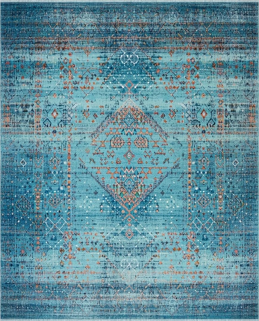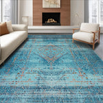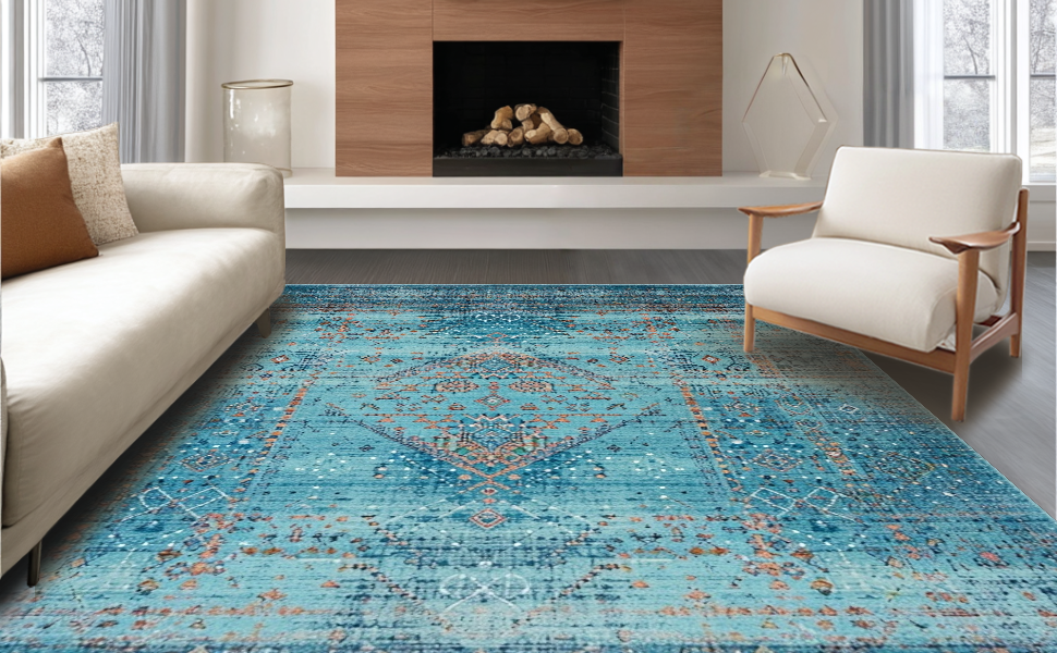 Ultra Soft Area Rug, Non Slip, Stain Resistant, Washable Area Rugs for Living Room, Bedroom, Chic Minimalist Trellis Aesthetic(Blue) Overview: