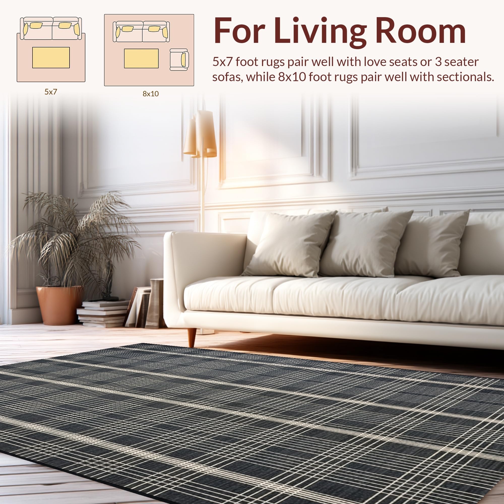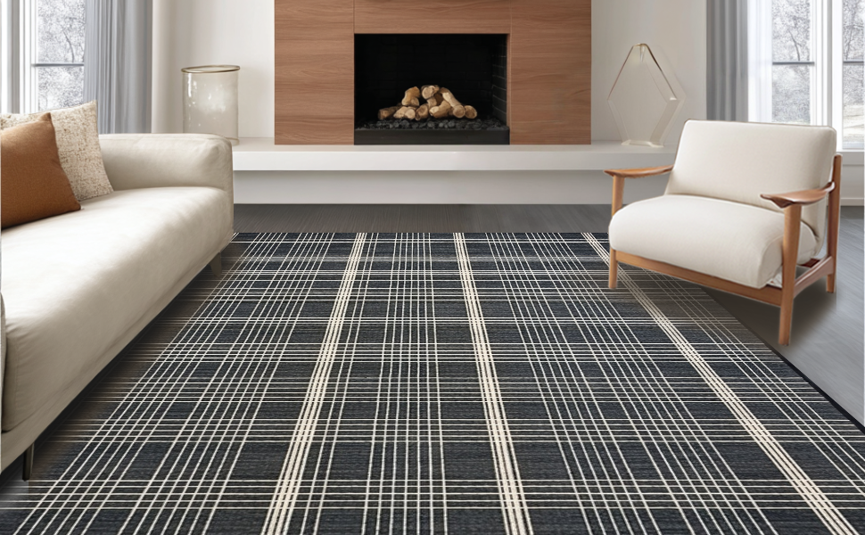 Ultra Soft Area Rug, Non Slip, Stain Resistant, Washable Area Rugs for Living Room, Bedroom, Chic Minimalist Trellis Arrangement(Gray) Overview: