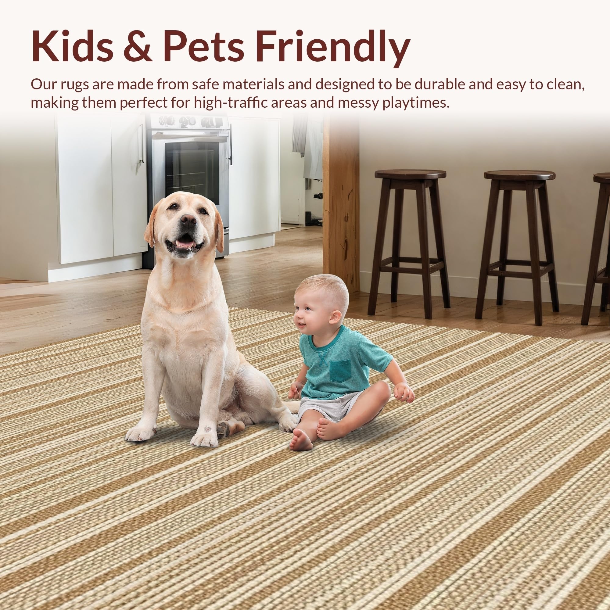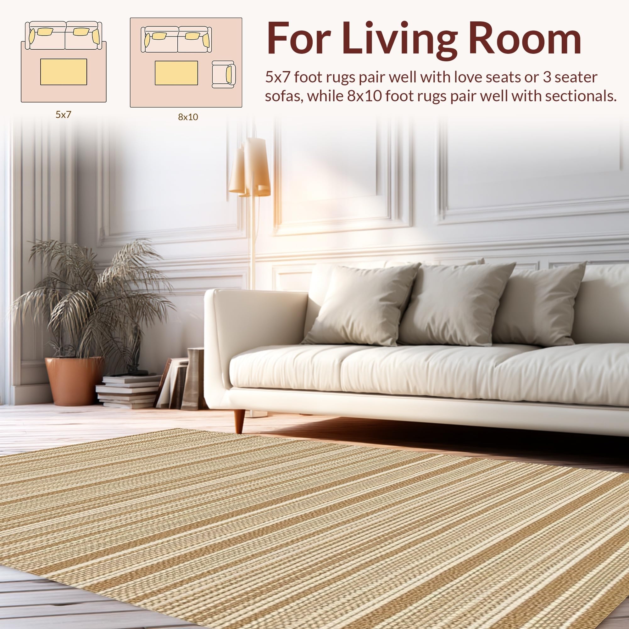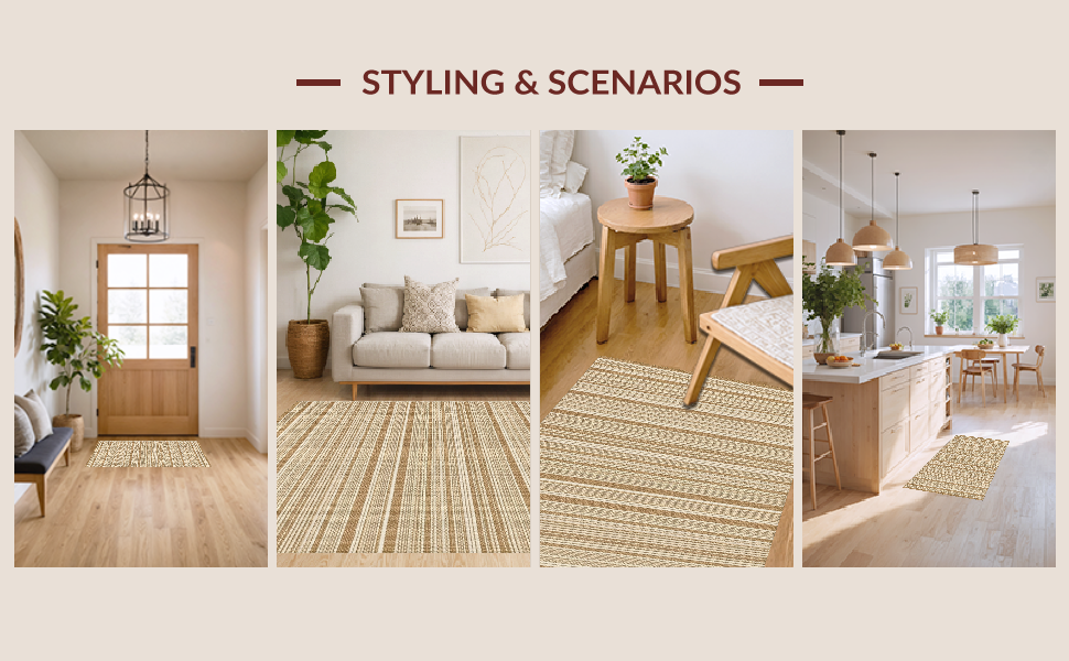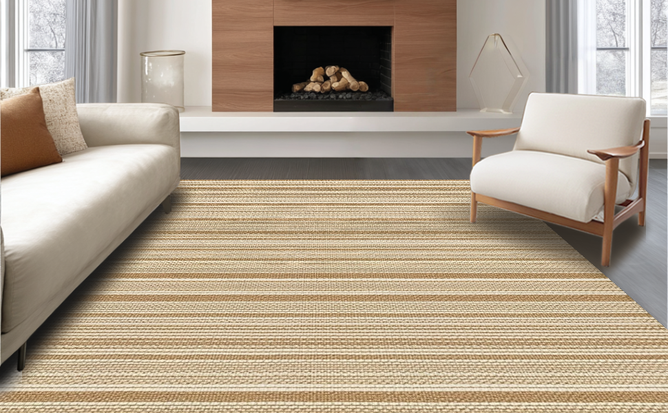Ultra Soft Area Rug, Non Slip, Stain Resistant, Washable Area Rugs for Living Room, Bedroom, Chic Minimalist Woven Pattern(Beige) Overview: