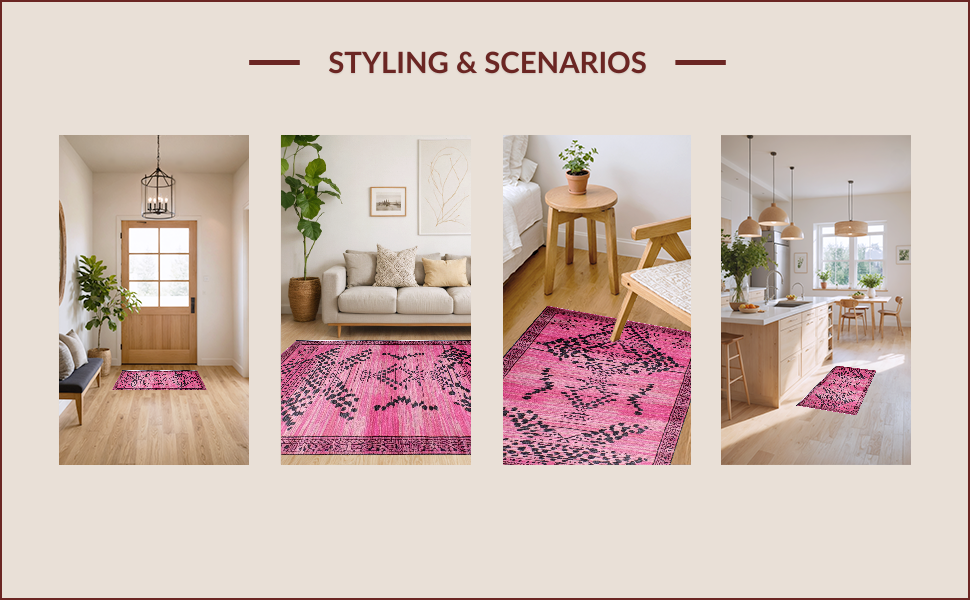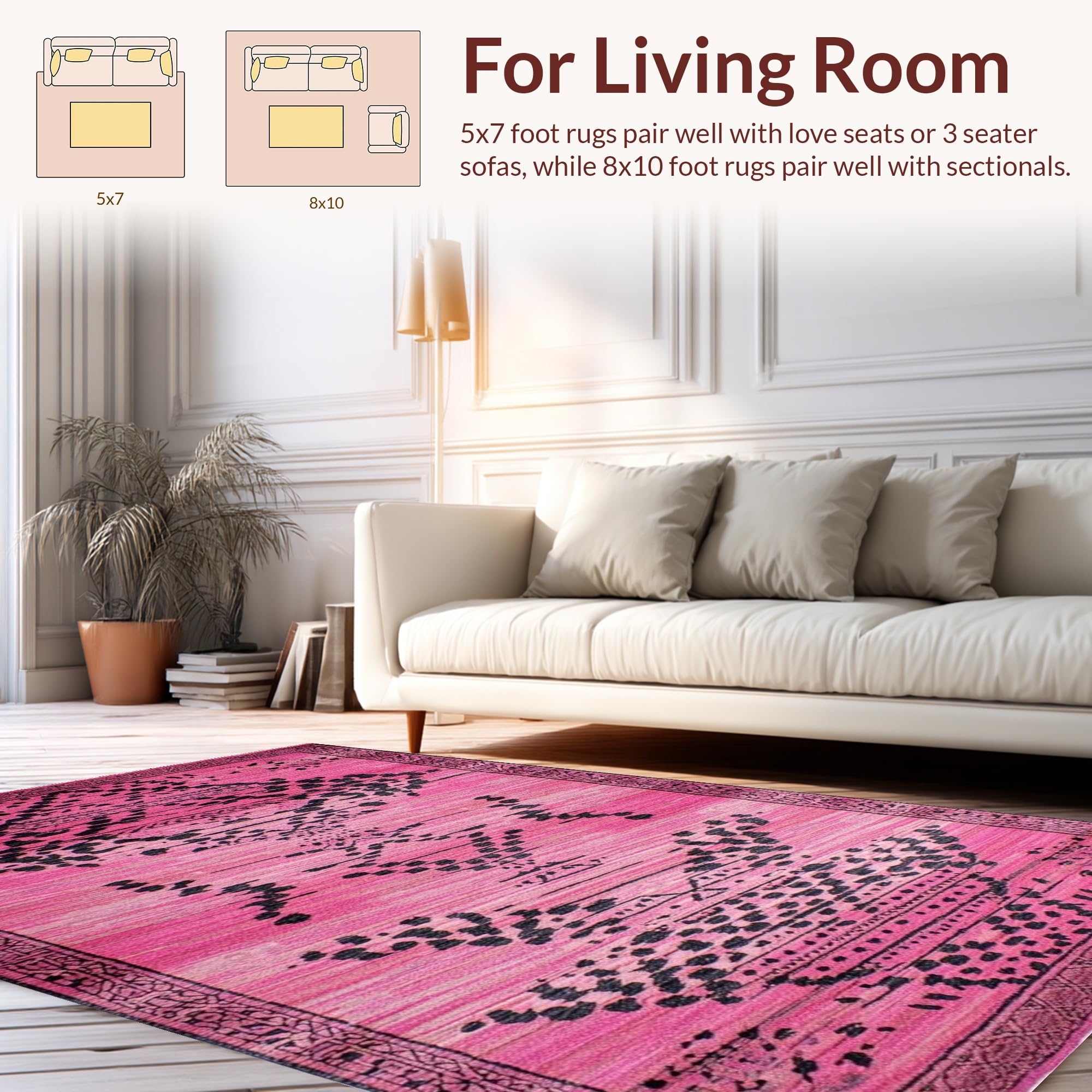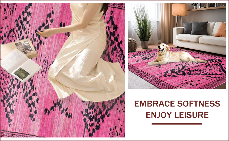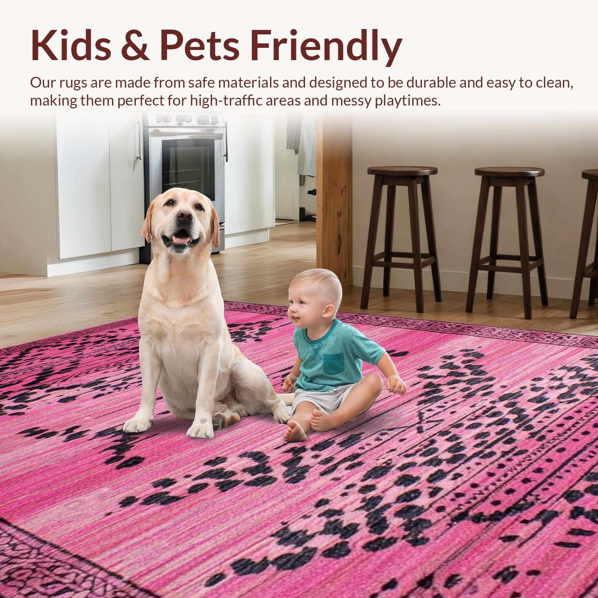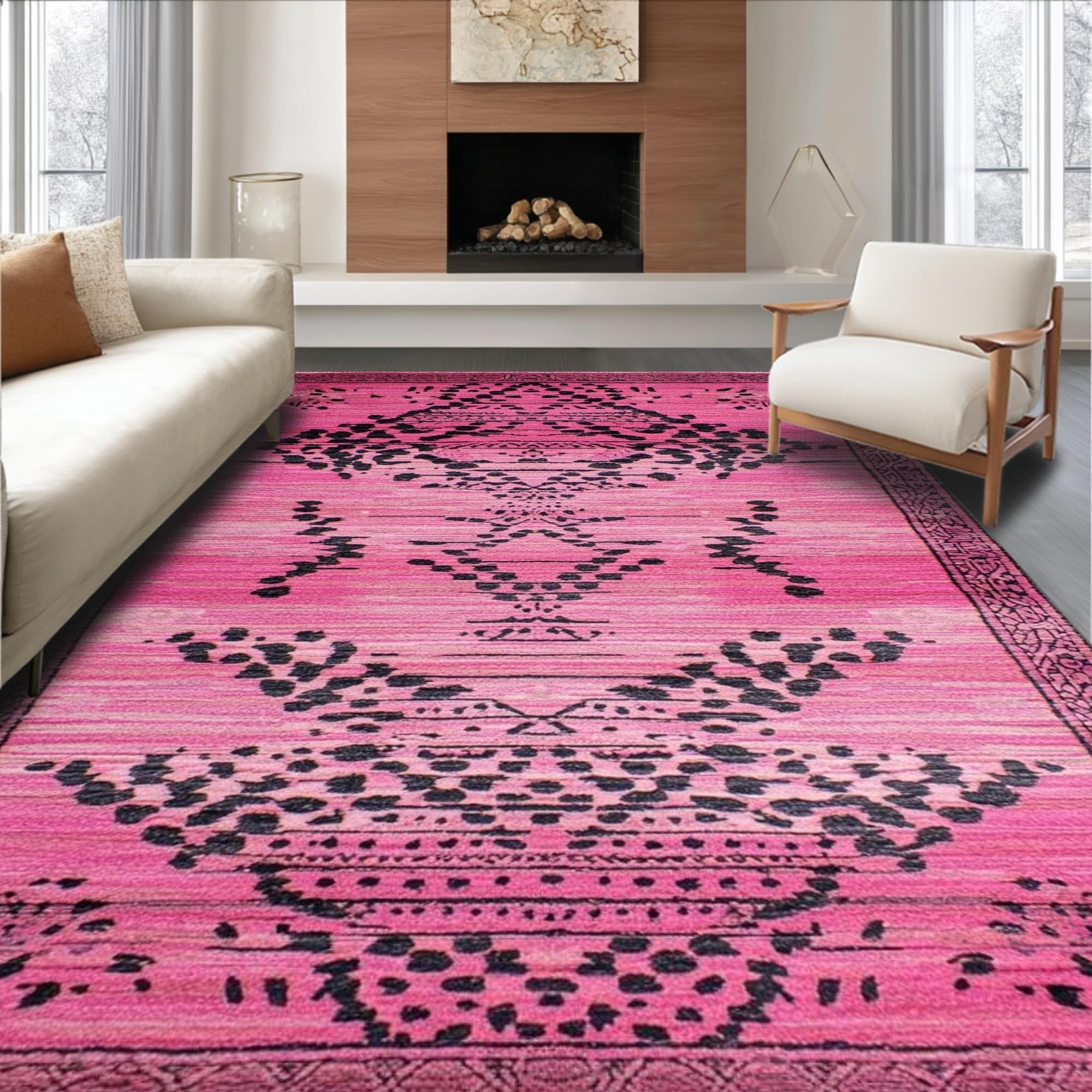 Ultra Soft Area Rug, Non Slip, Stain Resistant, Washable Area Rugs for Living Room, Bedroom, Chic Modern Abstract Aesthetic(Pink) Overview: