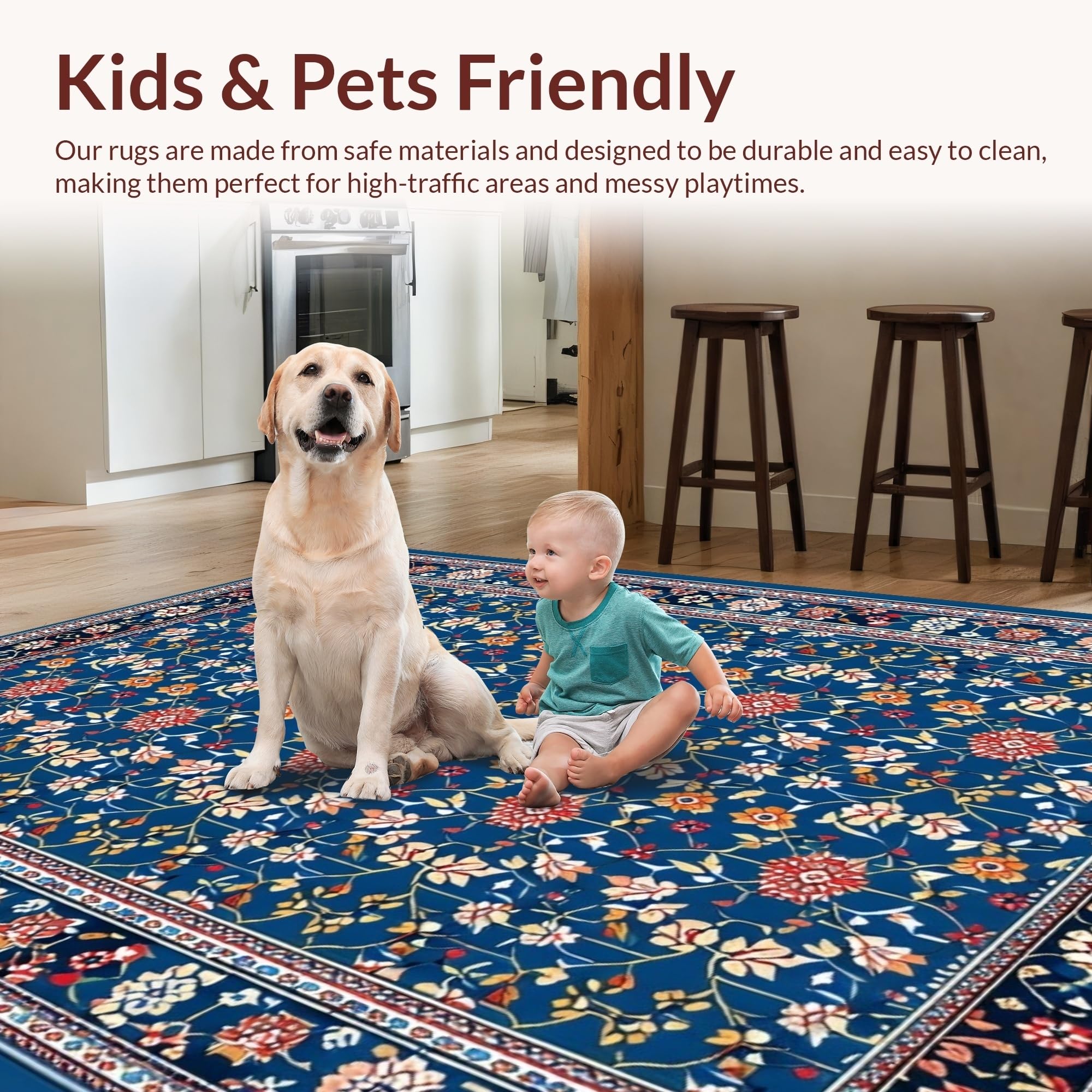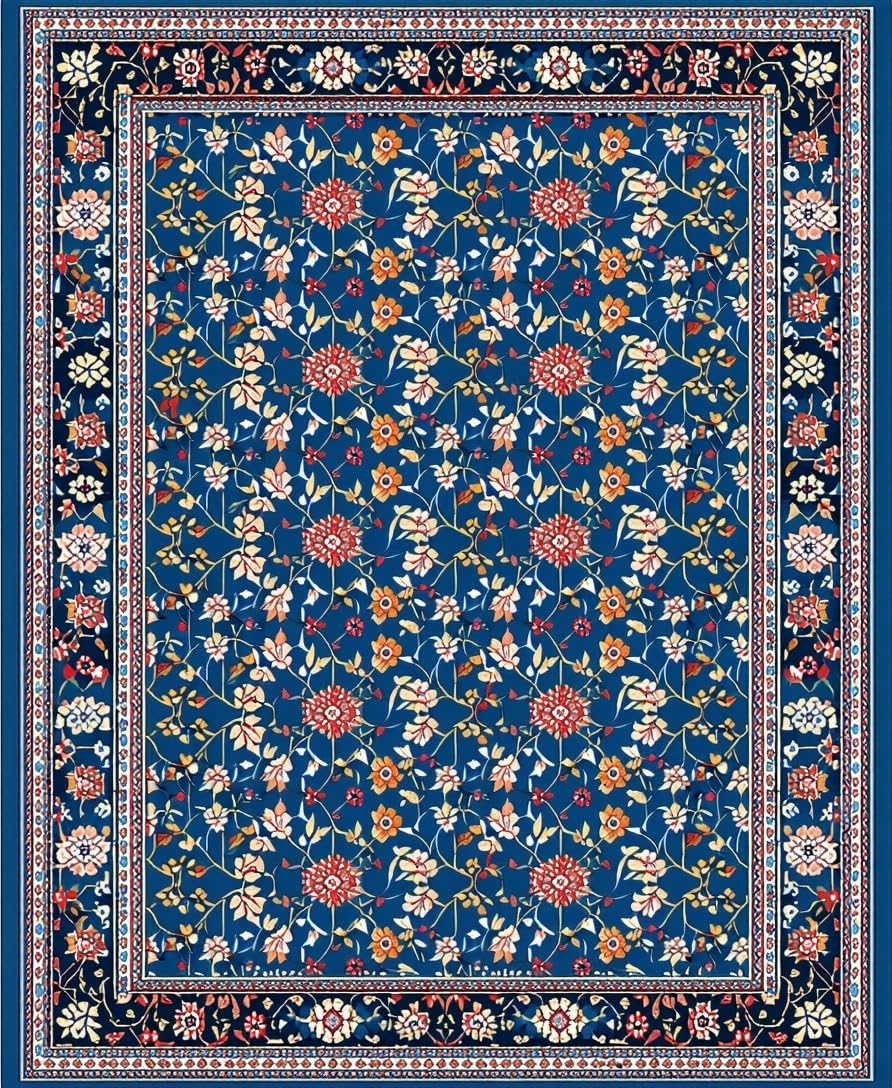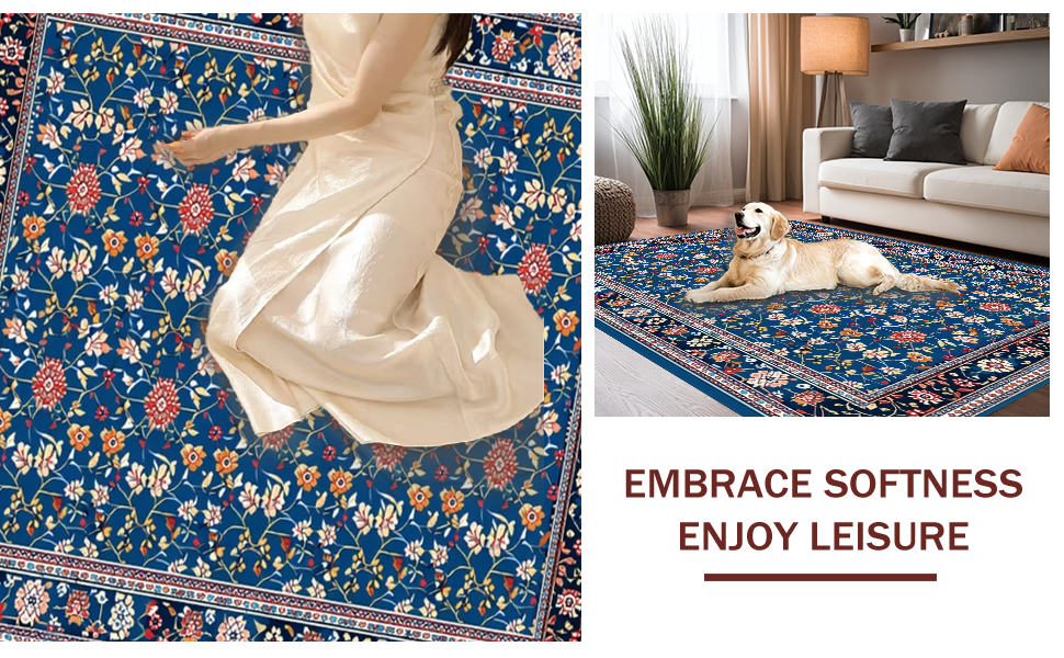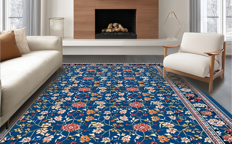 Ultra Soft Area Rug, Non Slip, Stain Resistant, Washable Area Rugs for Living Room, Bedroom, Chic Modern Abstract Floral Fusion(Blue) Overview: