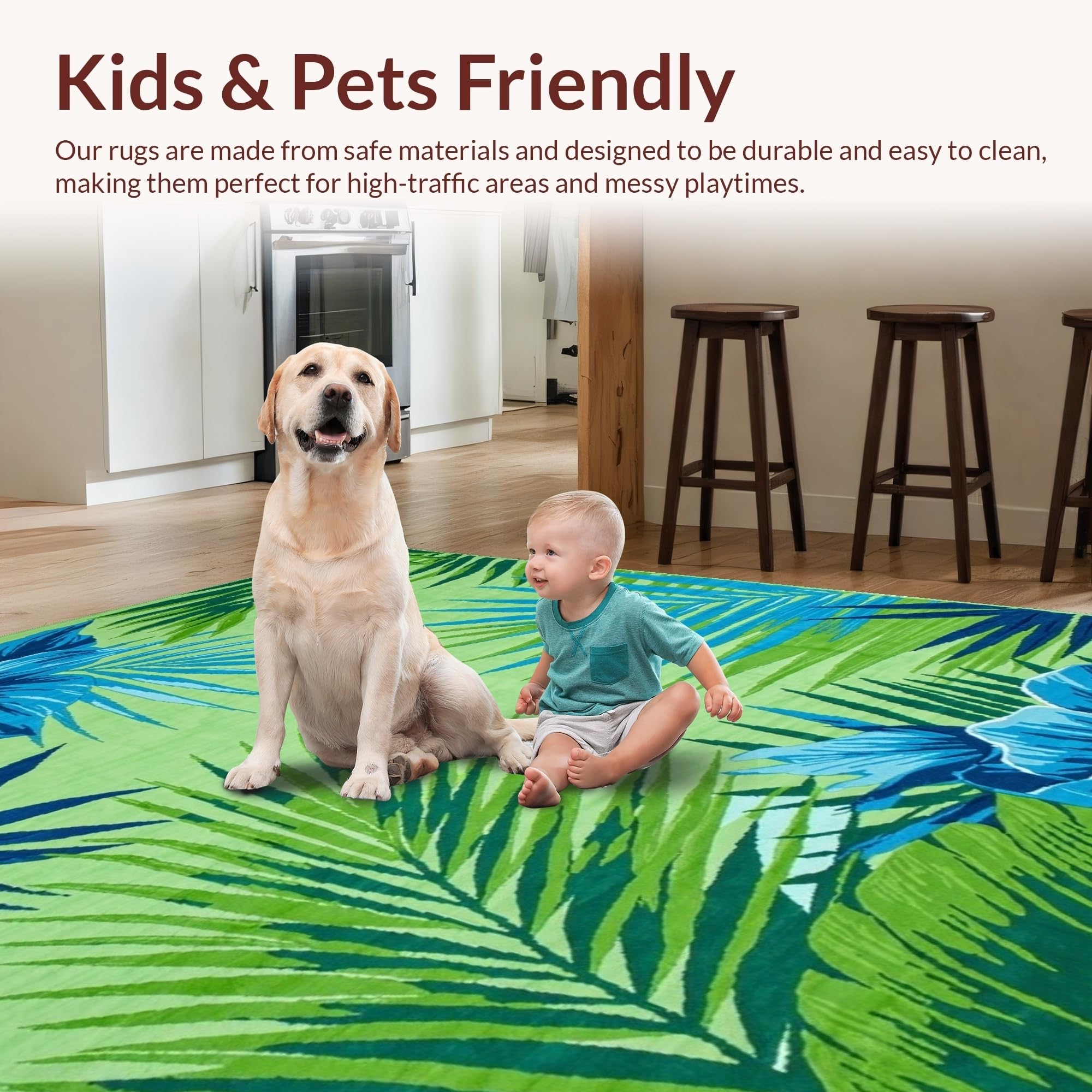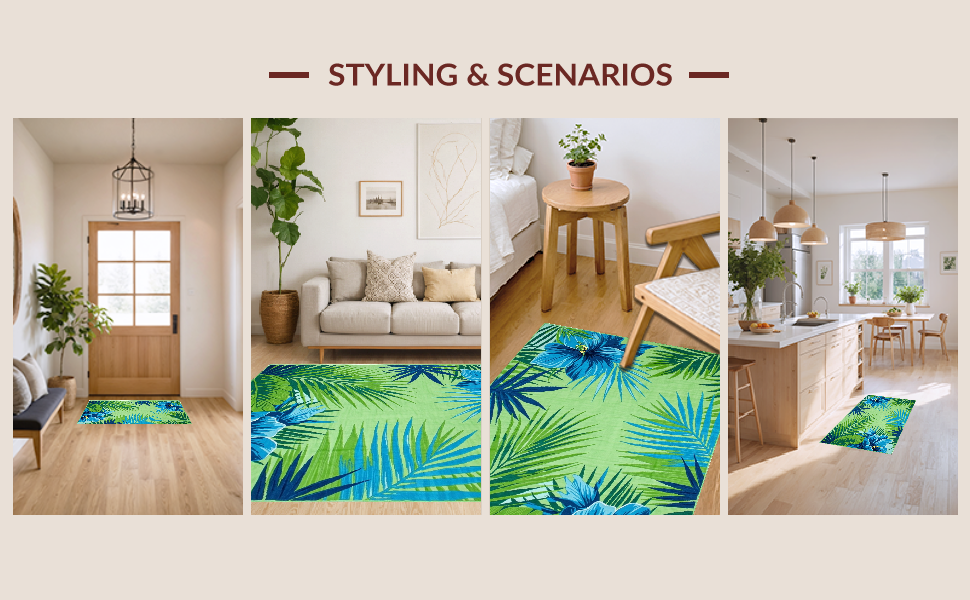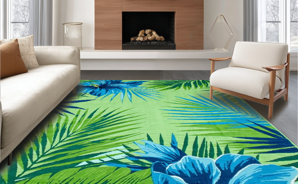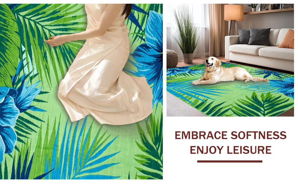Ultra Soft Area Rug, Non Slip, Stain Resistant, Washable Area Rugs for Living Room, Bedroom, Chic Modern Abstract Leaf Motif(Green) Overview:
