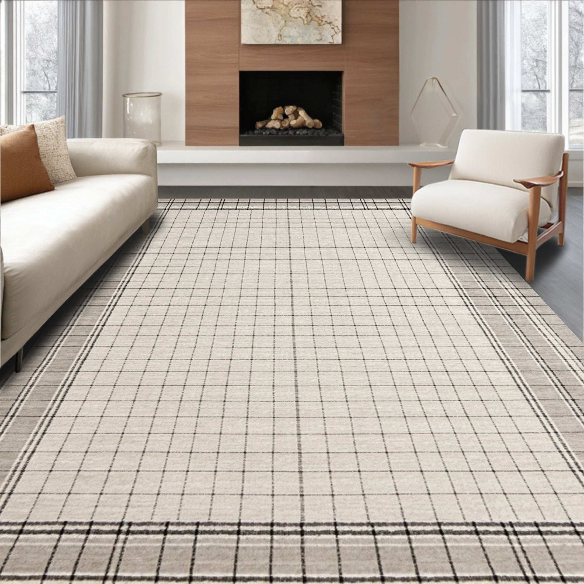 Ultra Soft Area Rug, Non Slip, Stain Resistant, Washable Area Rugs for Living Room, Bedroom, Chic Modern Area with Elegant Checkered Design in Warm Beige Tones(Beige) Overview: