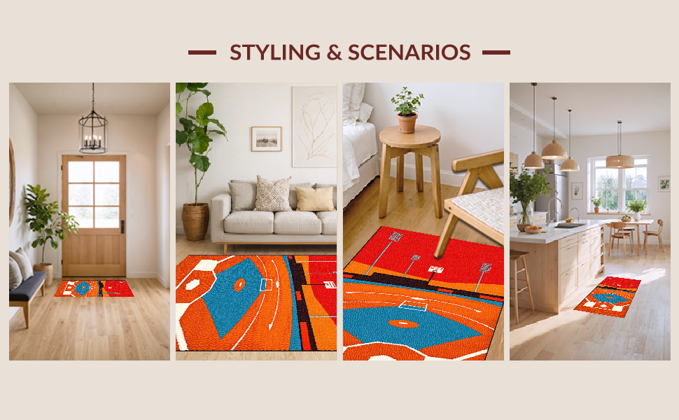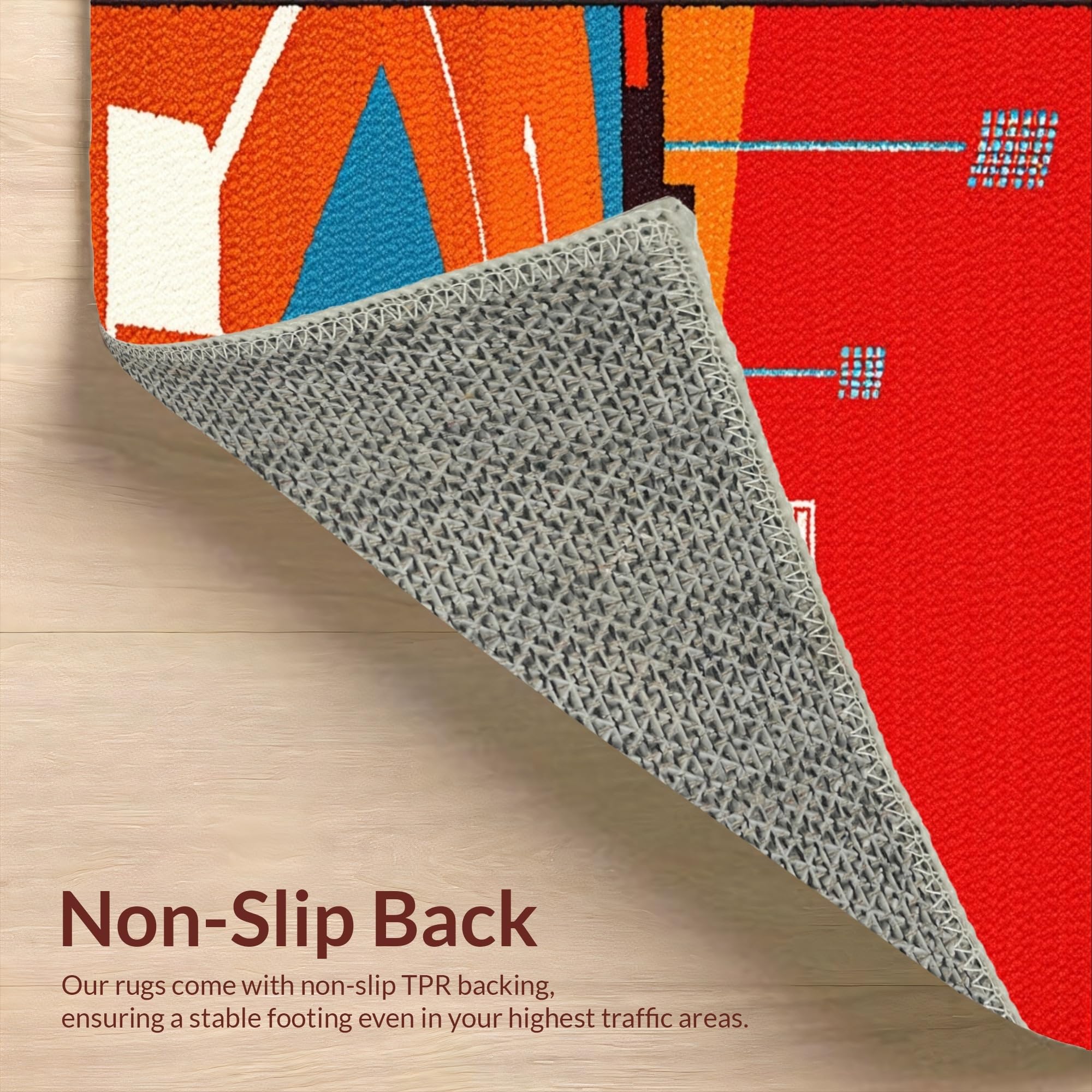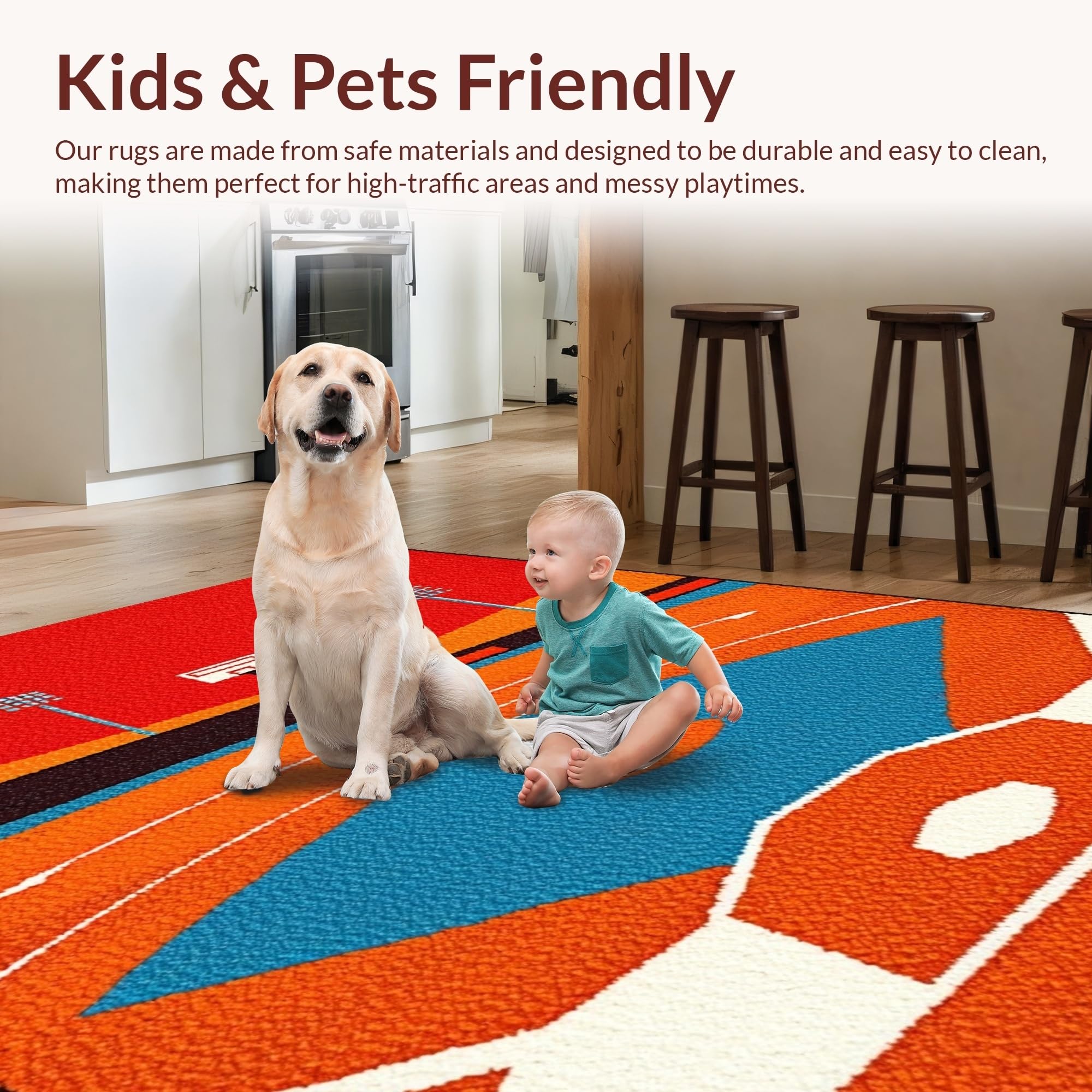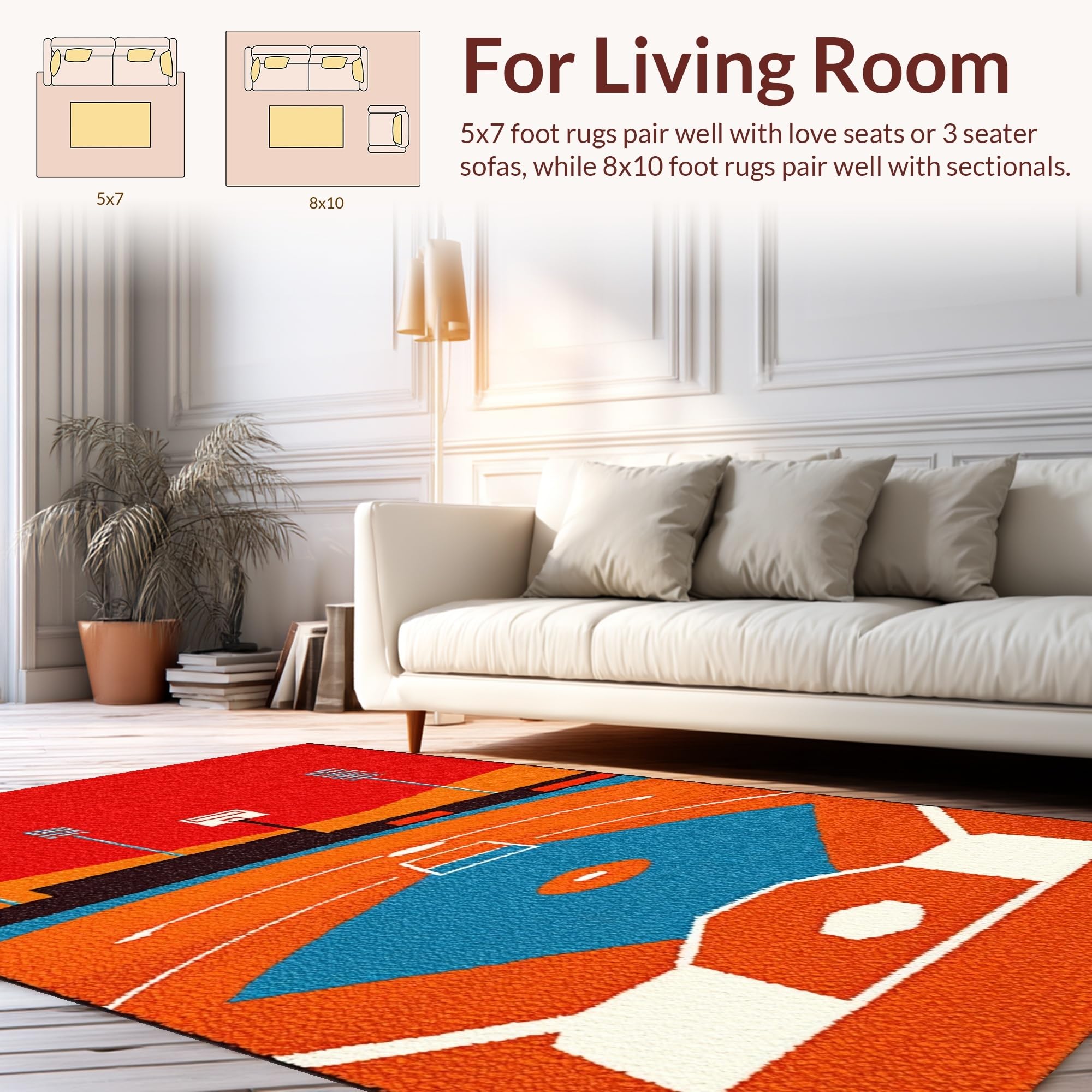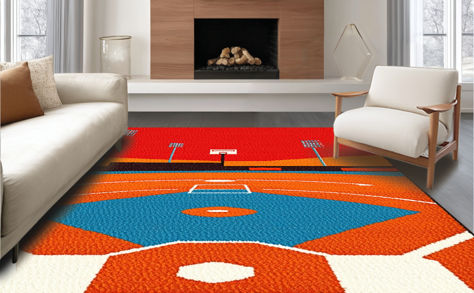 Ultra Soft Area Rug, Non Slip, Stain Resistant, Washable Area Rugs for Living Room, Bedroom, Chic Modern Baseball Illustration(Red) Overview: