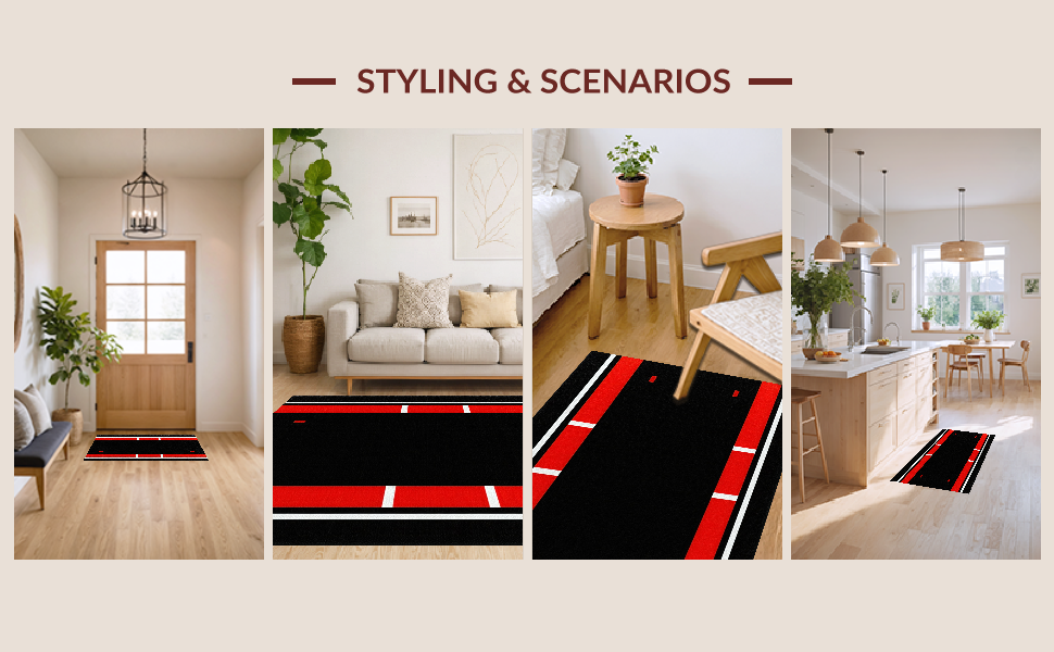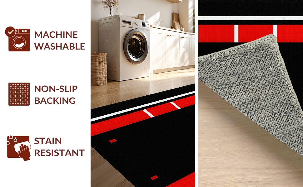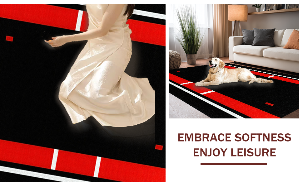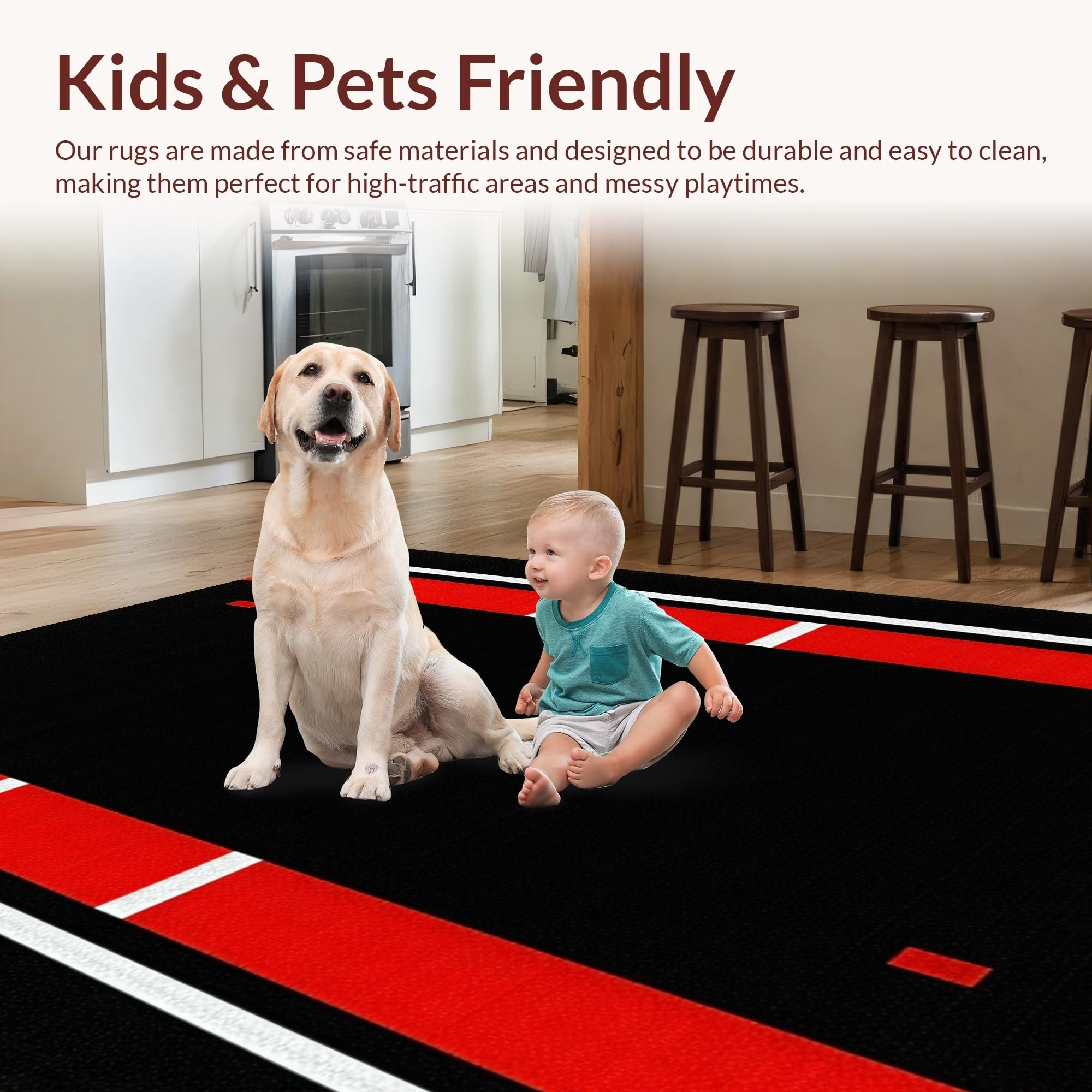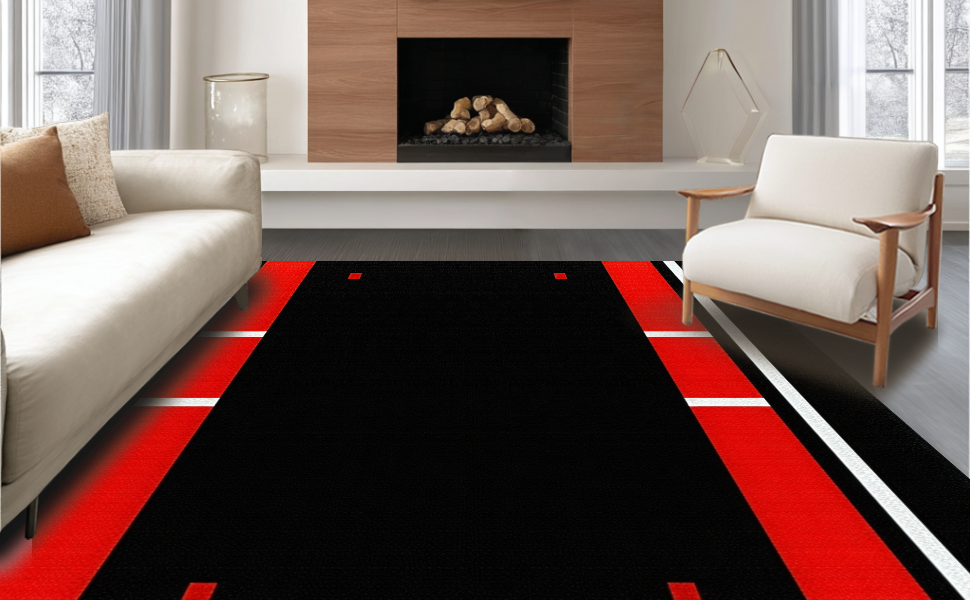Ultra Soft Area Rug, Non Slip, Stain Resistant, Washable Area Rugs for Living Room, Bedroom, Chic Modern Black and Red Pattern(Black) Overview: