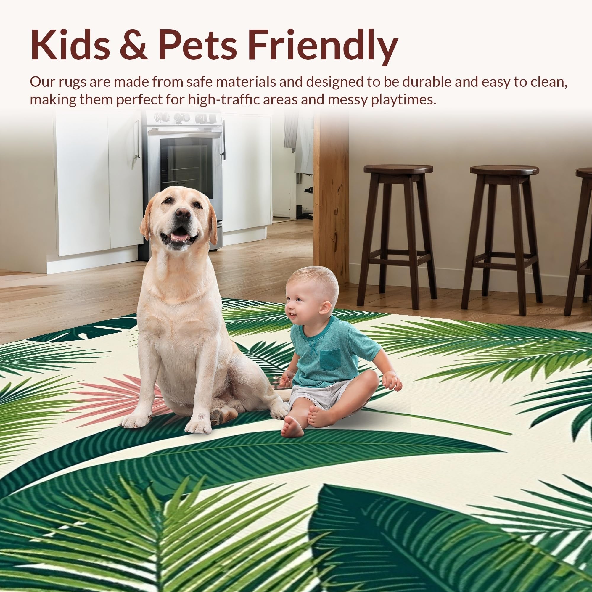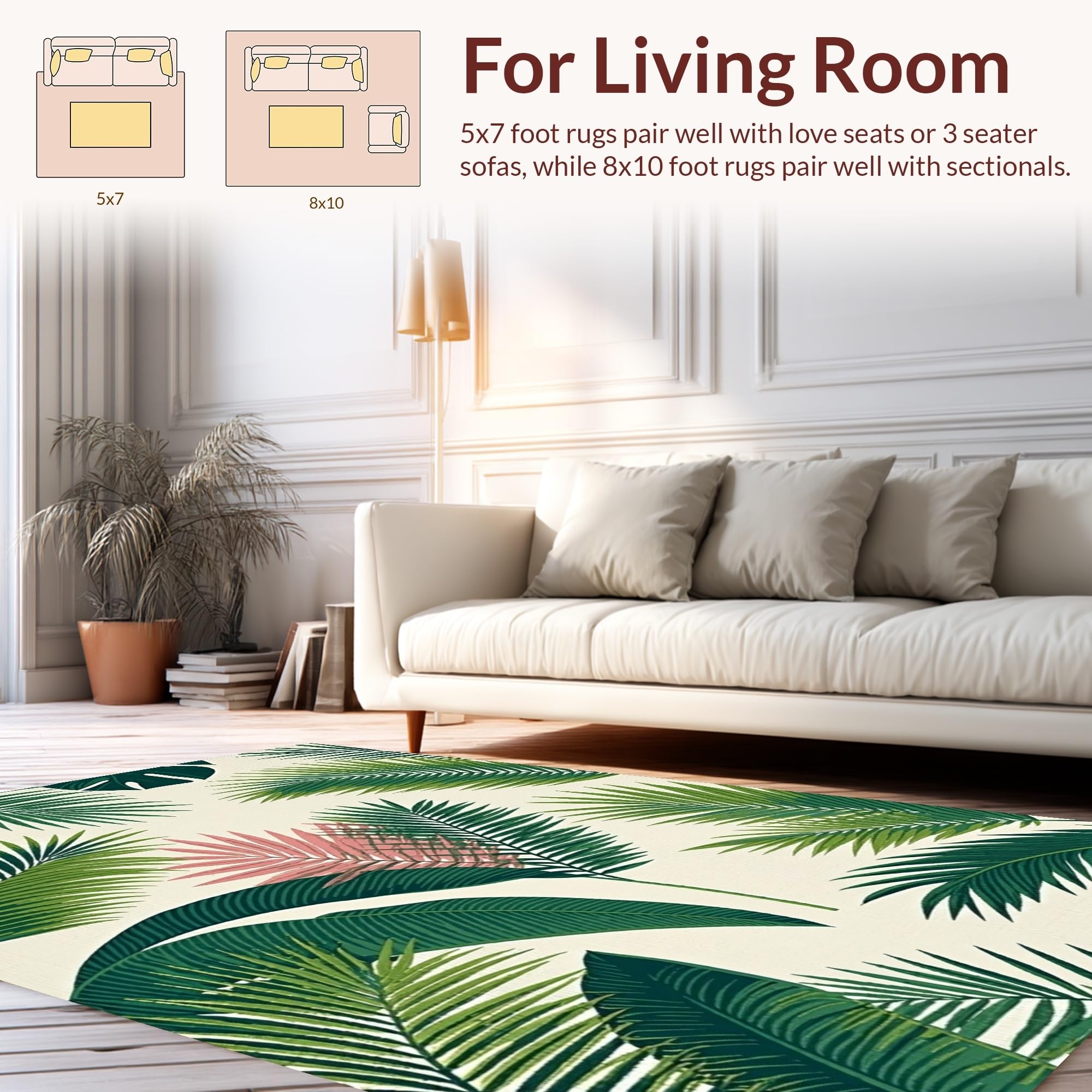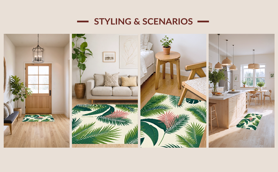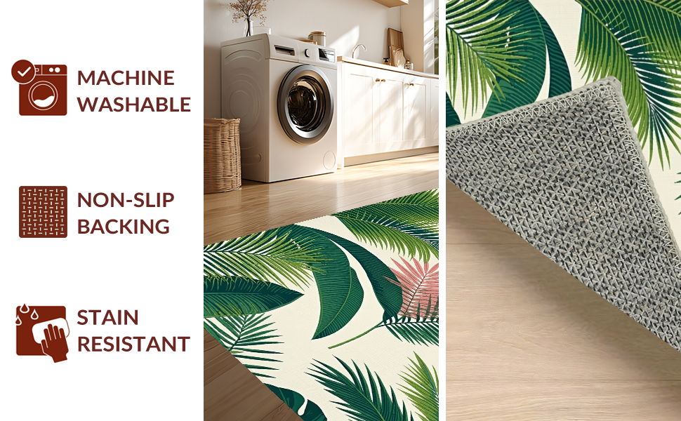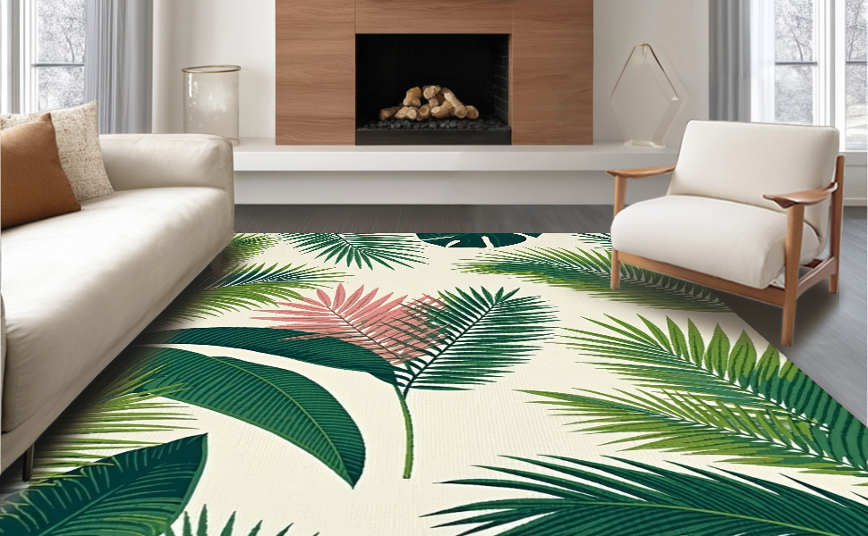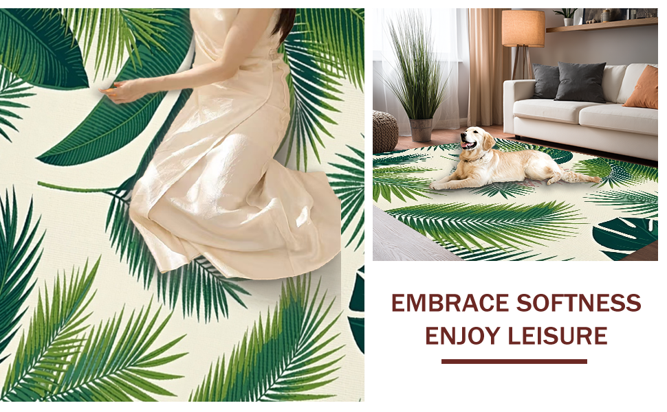 Ultra Soft Area Rug, Non Slip, Stain Resistant, Washable Area Rugs for Living Room, Bedroom, Chic Modern Botanical Motif(Green) Overview: