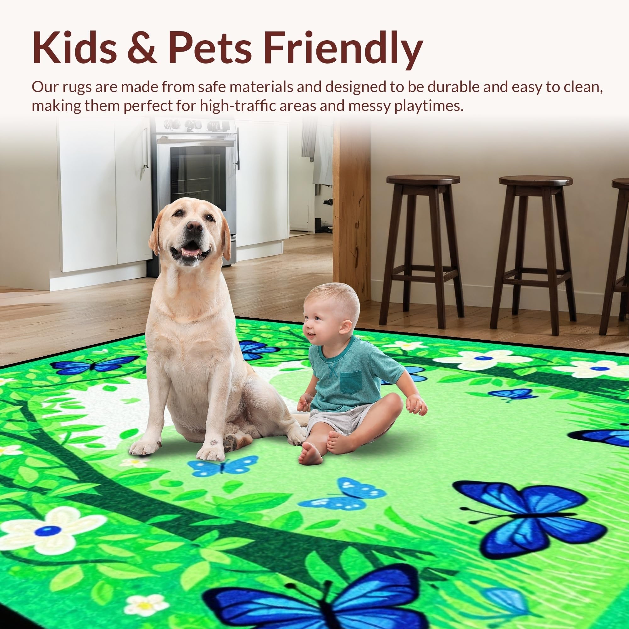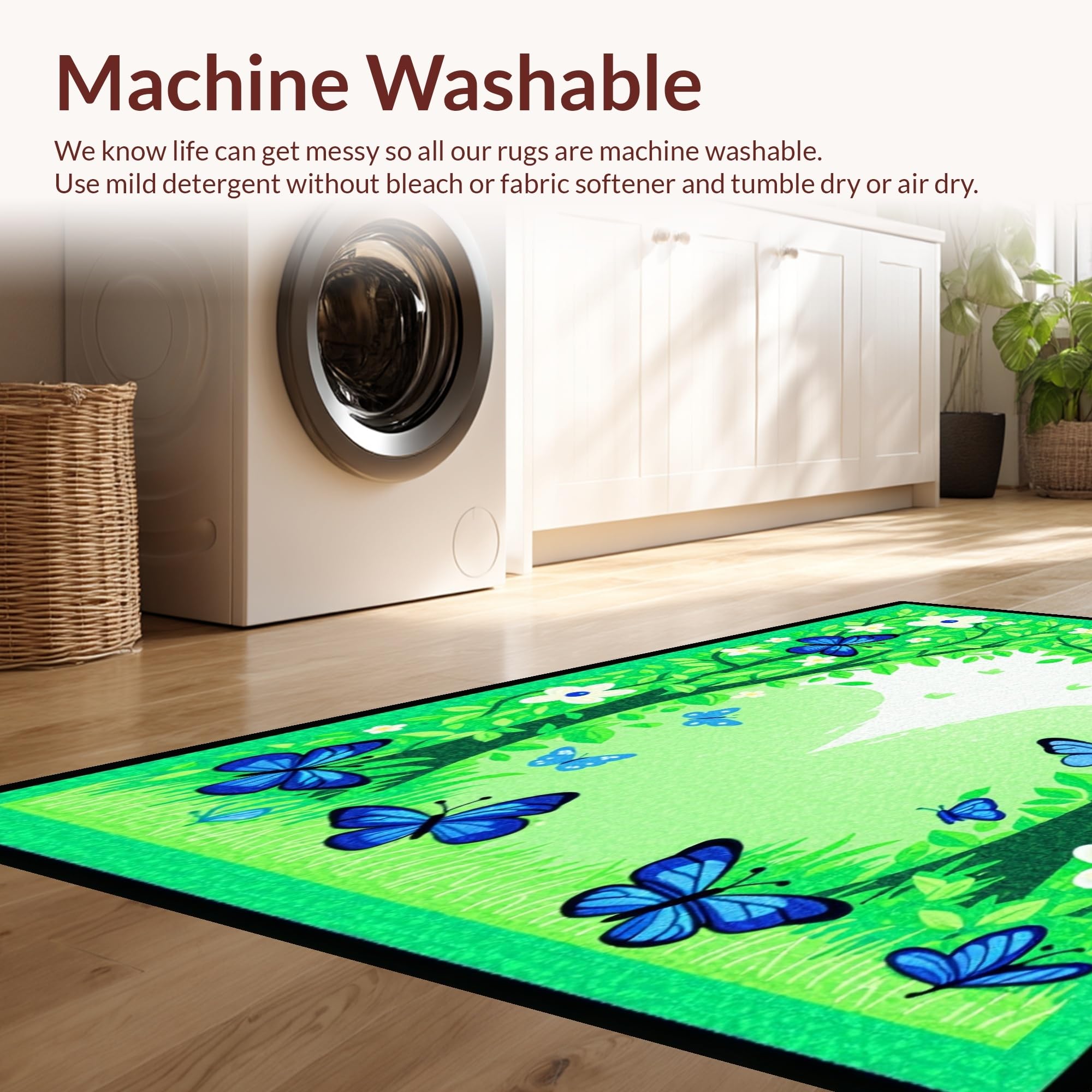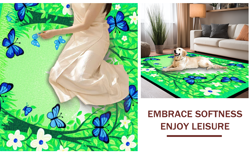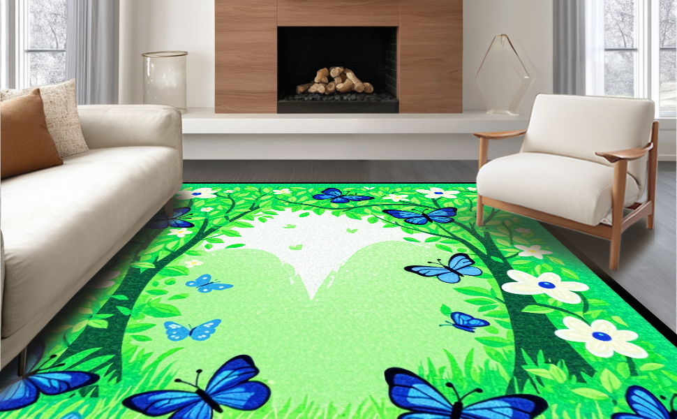 Ultra Soft Area Rug, Non Slip, Stain Resistant, Washable Area Rugs for Living Room, Bedroom, Chic Modern Butterfly Eclectic Vibe(Green) Overview: