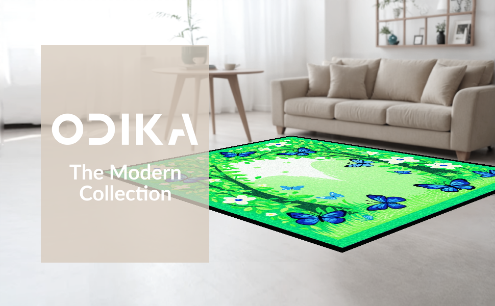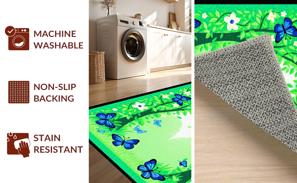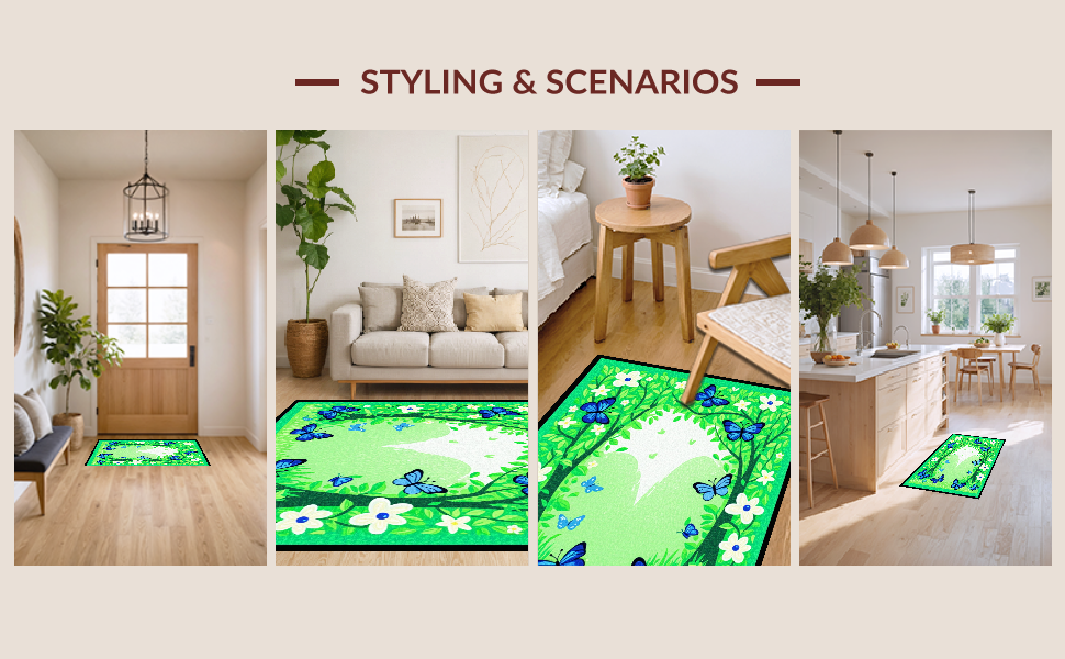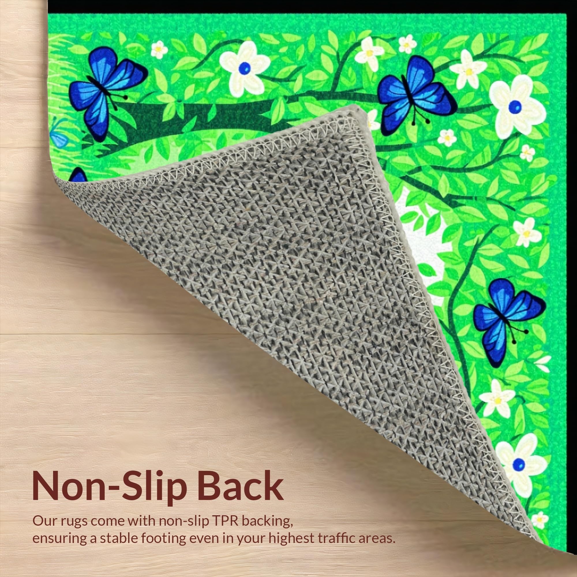 Ultra Soft Area Rug, Non Slip, Stain Resistant, Washable Area Rugs for Living Room, Bedroom, Chic Modern Butterfly Eclectic Vibe(Green) Overview: