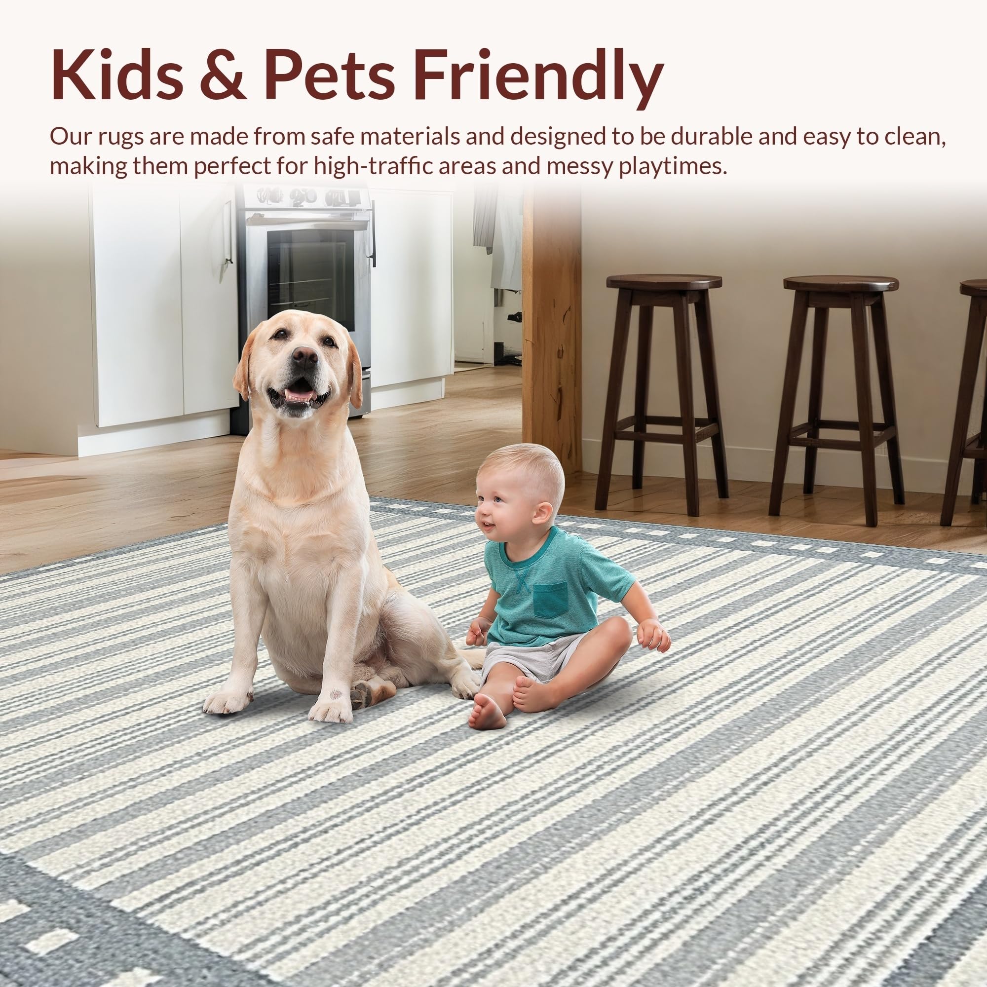 Ultra Soft Area Rug, Non Slip, Stain Resistant, Washable Area Rugs for Living Room, Bedroom, Chic Modern Circular Typography Design(Gray) Overview: