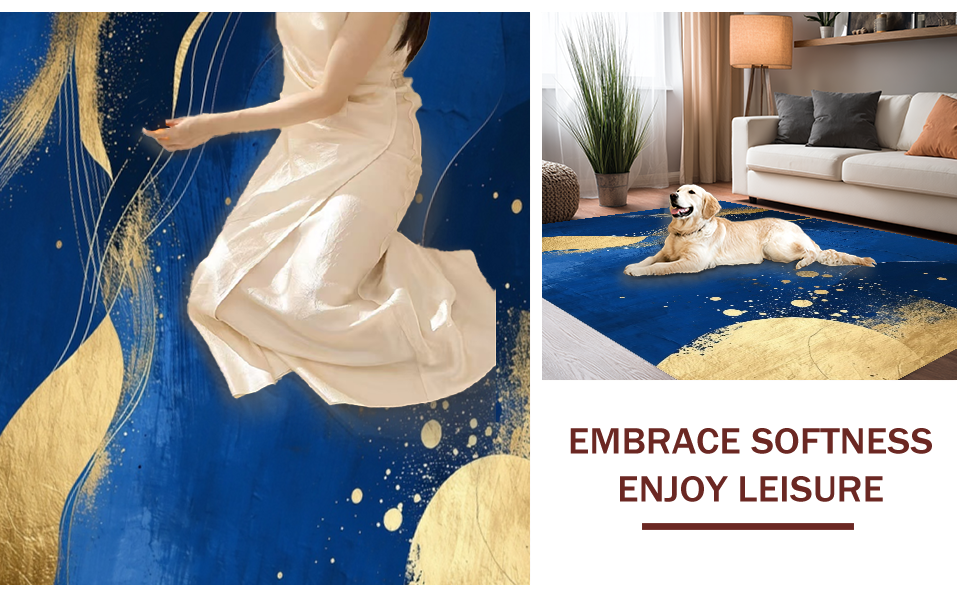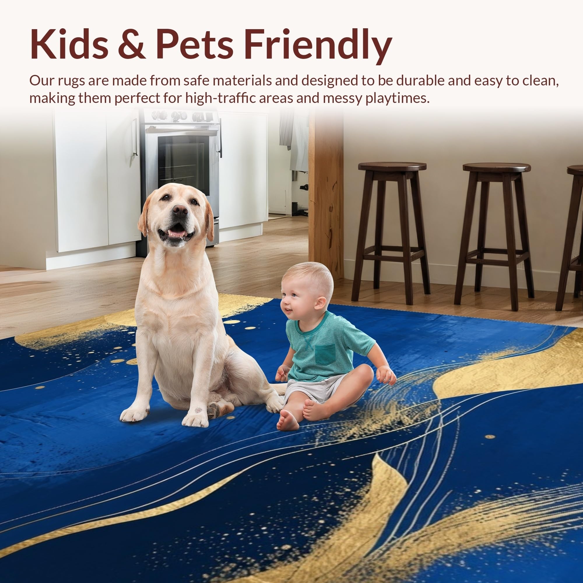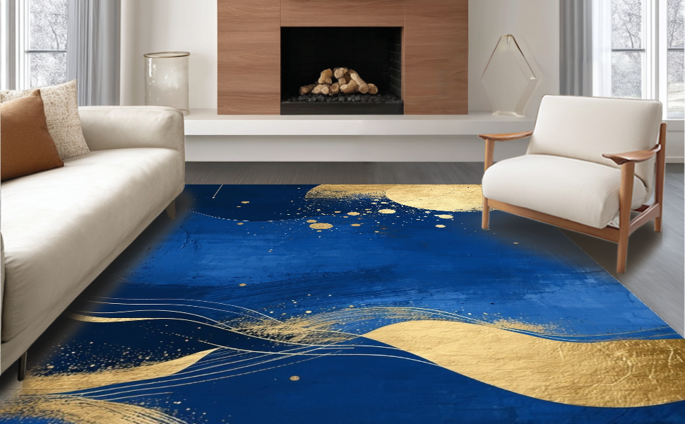Ultra Soft Area Rug, Non Slip, Stain Resistant, Washable Area Rugs for Living Room, Bedroom, Chic Modern Color Block Motif(Blue) Overview: