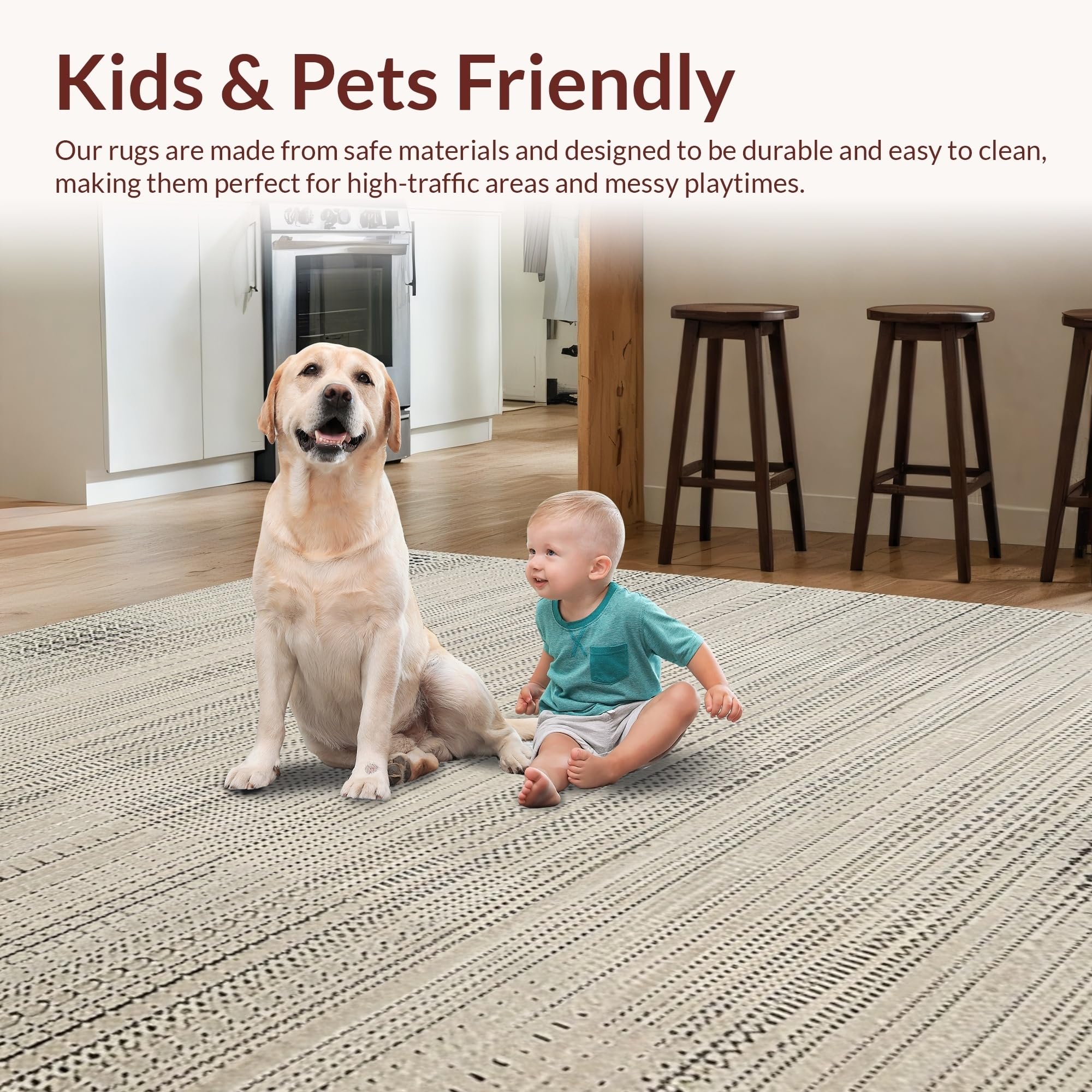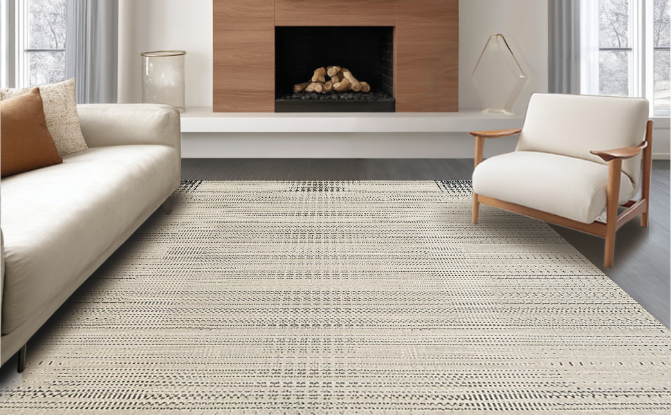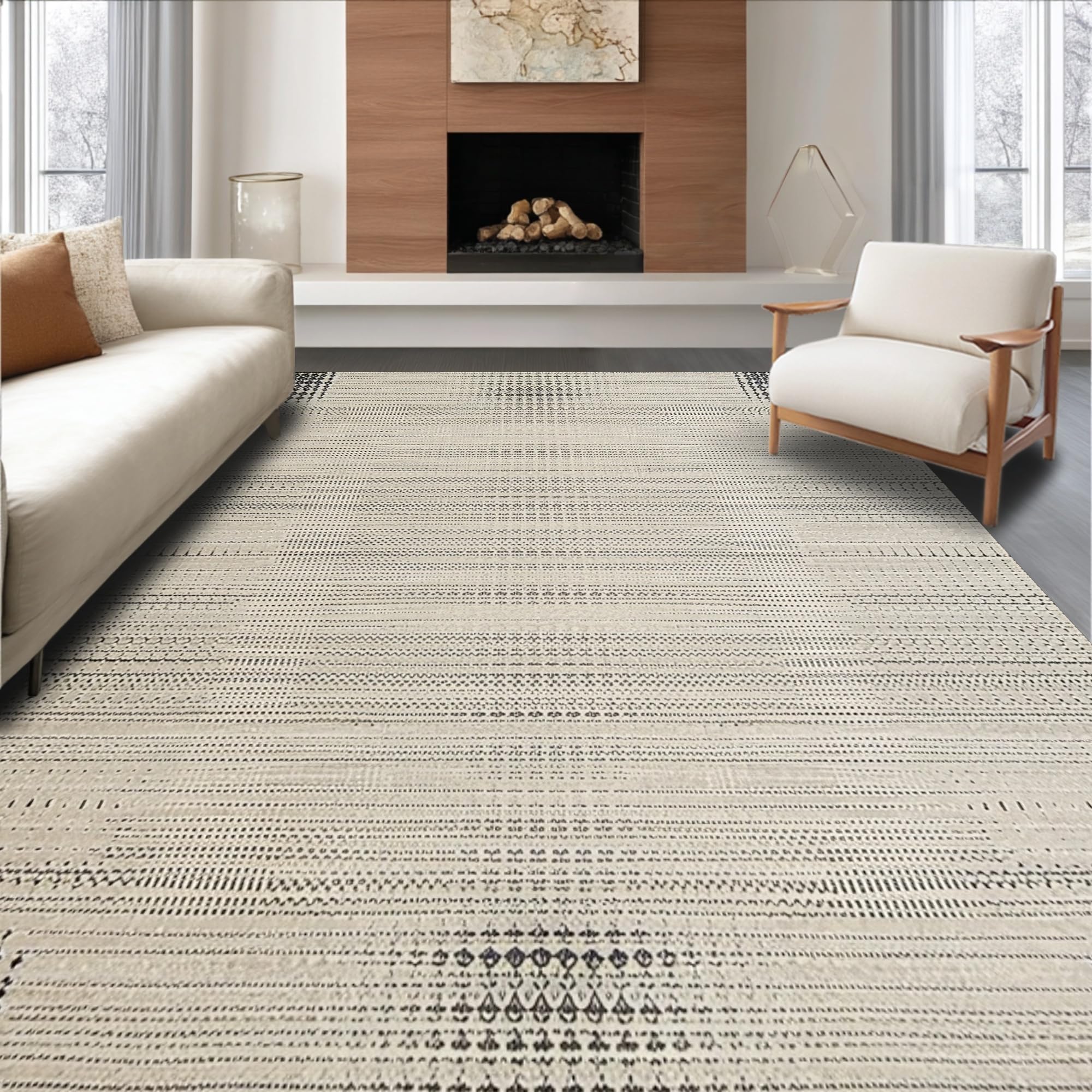 Ultra Soft Area Rug, Non Slip, Stain Resistant, Washable Area Rugs for Living Room, Bedroom, Chic Modern Diamond Arrangement(Beige) Overview: