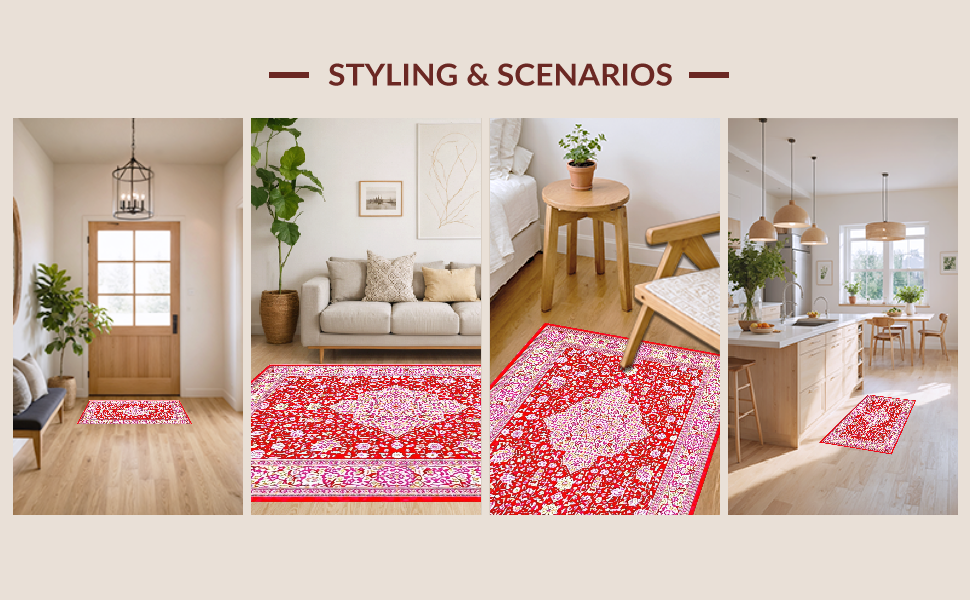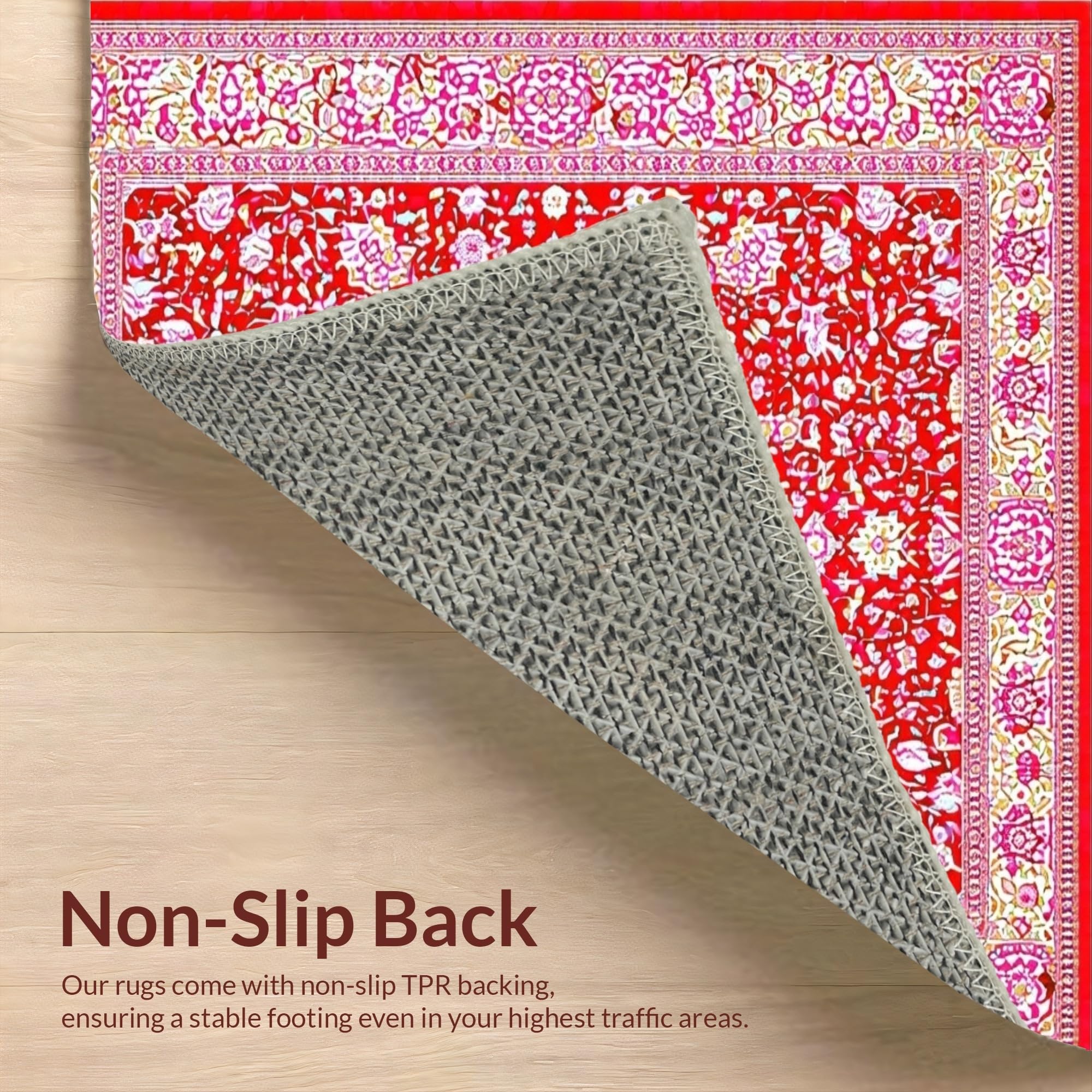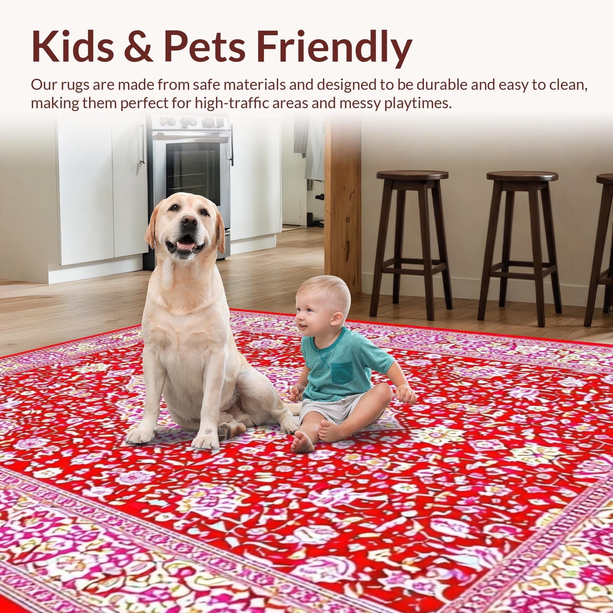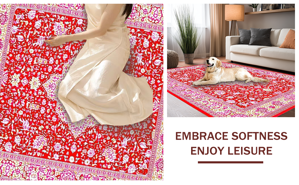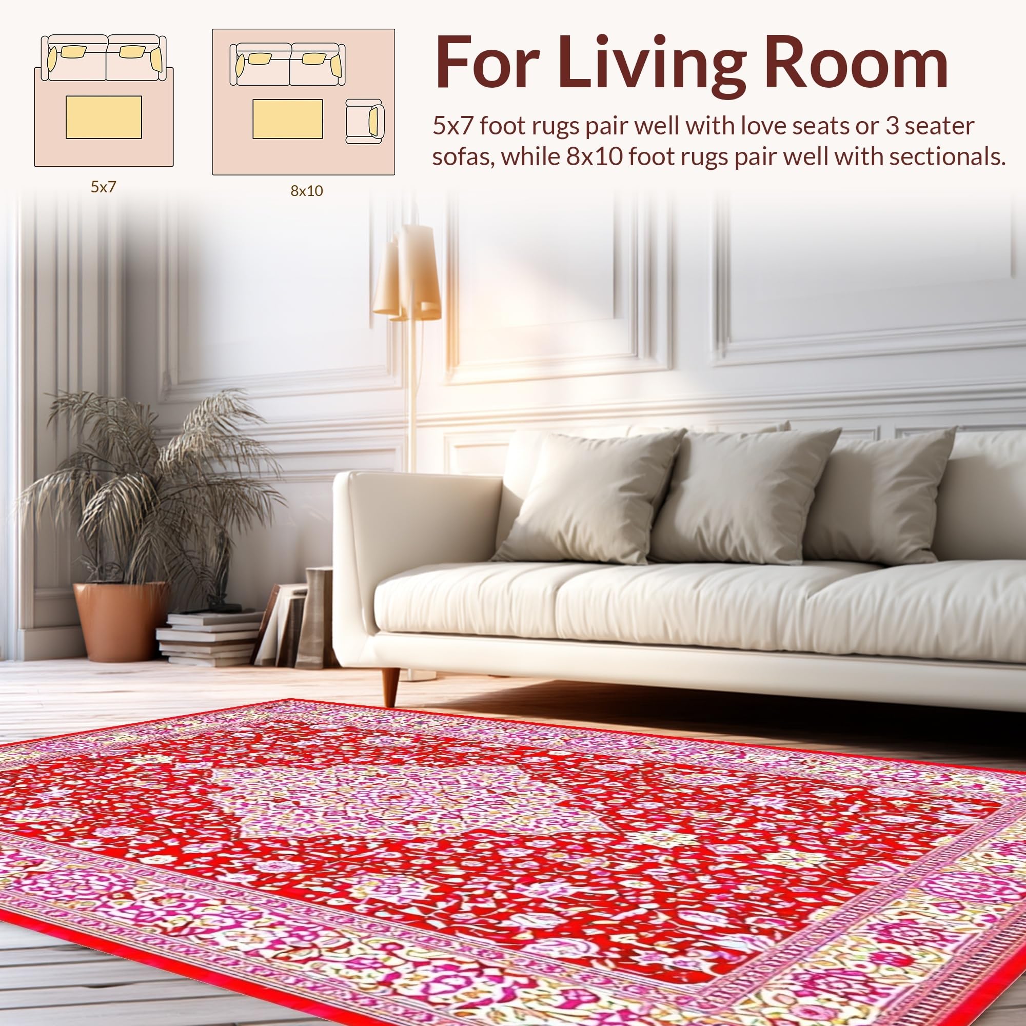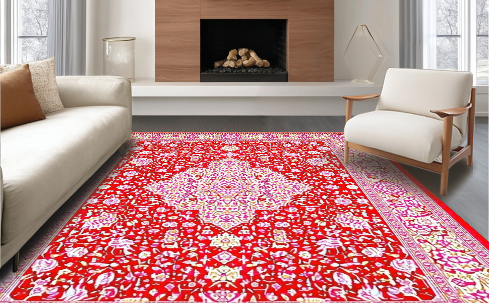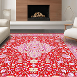 Ultra Soft Area Rug, Non Slip, Stain Resistant, Washable Area Rugs for Living Room, Bedroom, Chic Modern Floral Medallion Style(Red) Overview: