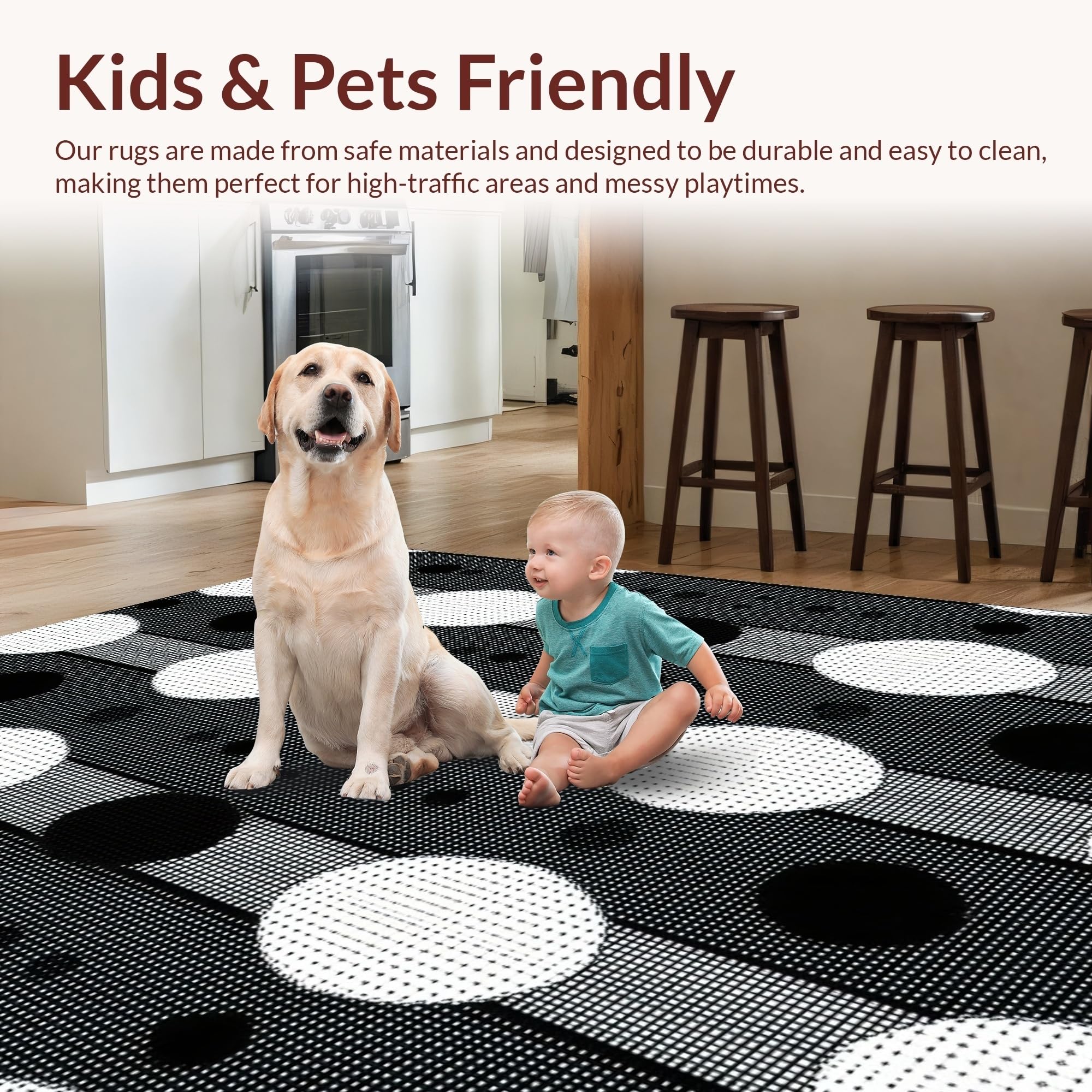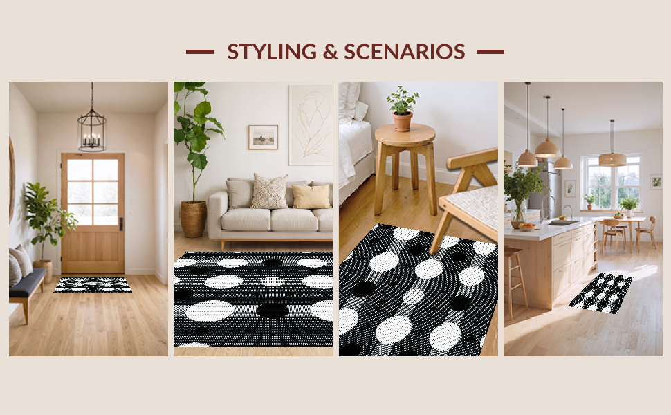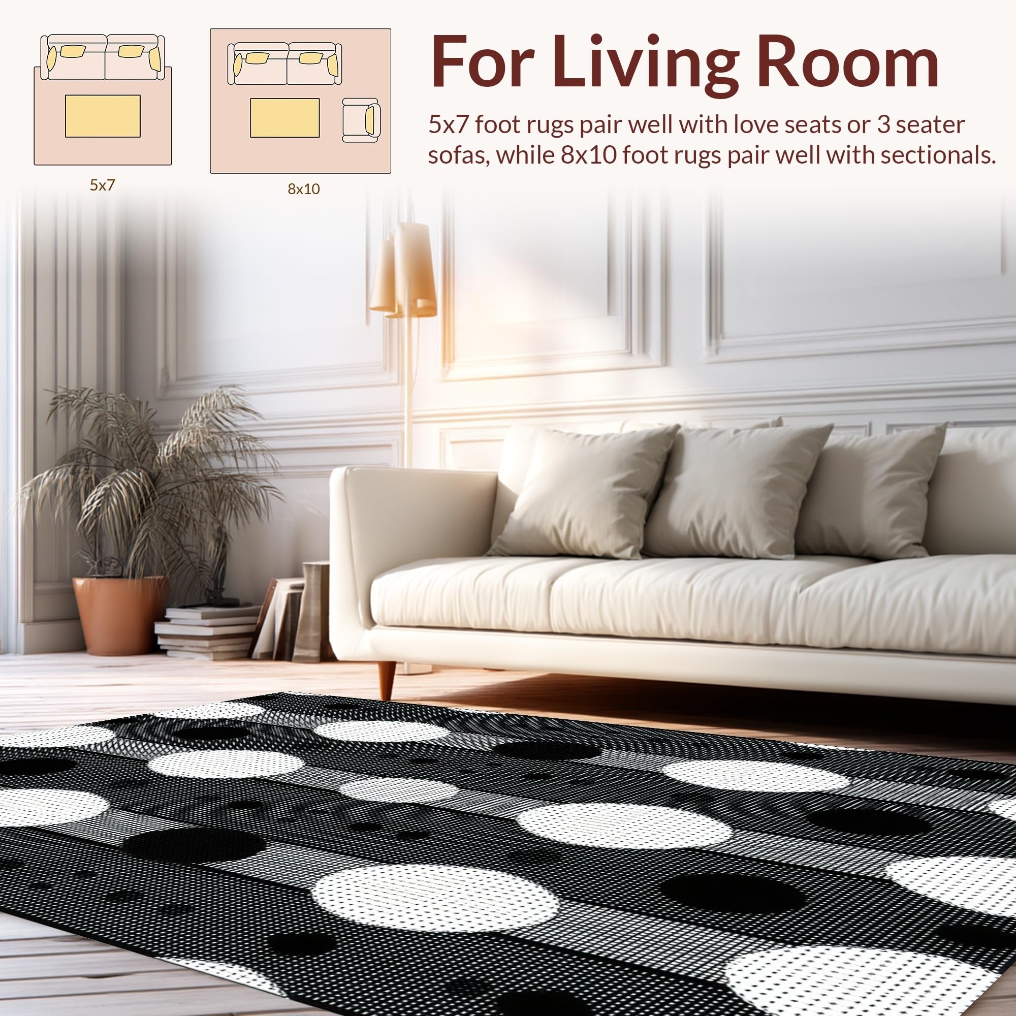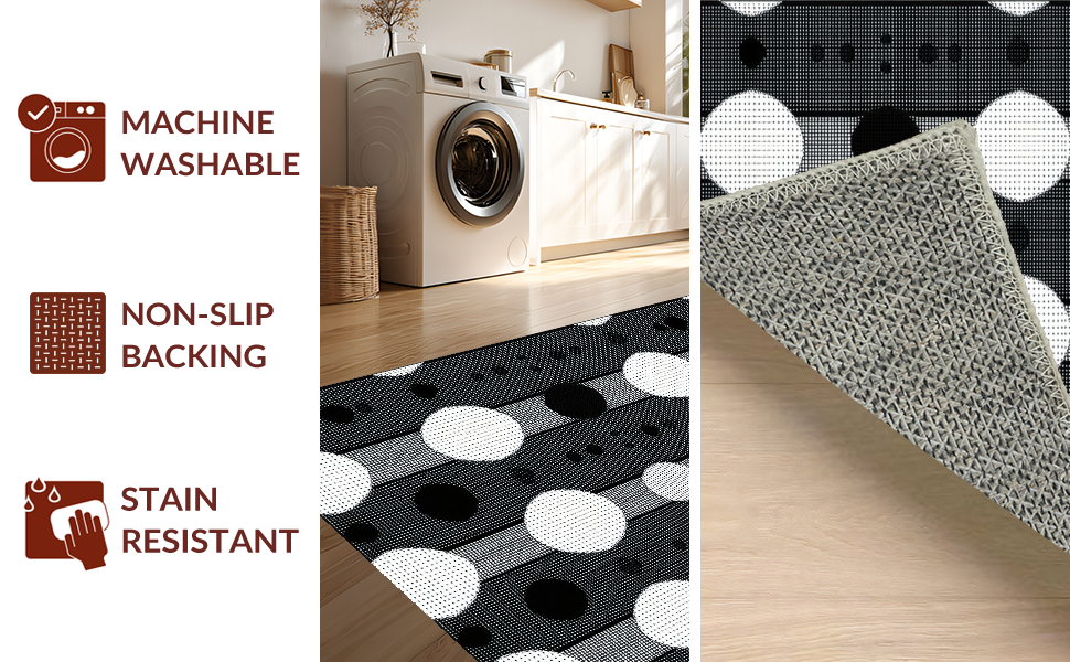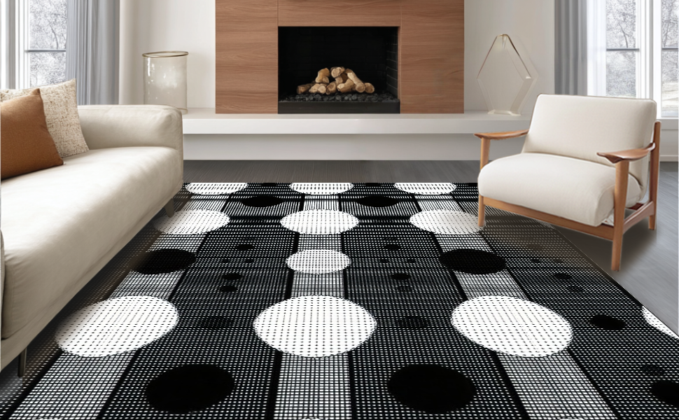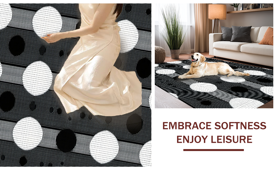 Ultra Soft Area Rug, Non Slip, Stain Resistant, Washable Area Rugs for Living Room, Bedroom, Chic Modern Geometric Aesthetic(Black) Overview: