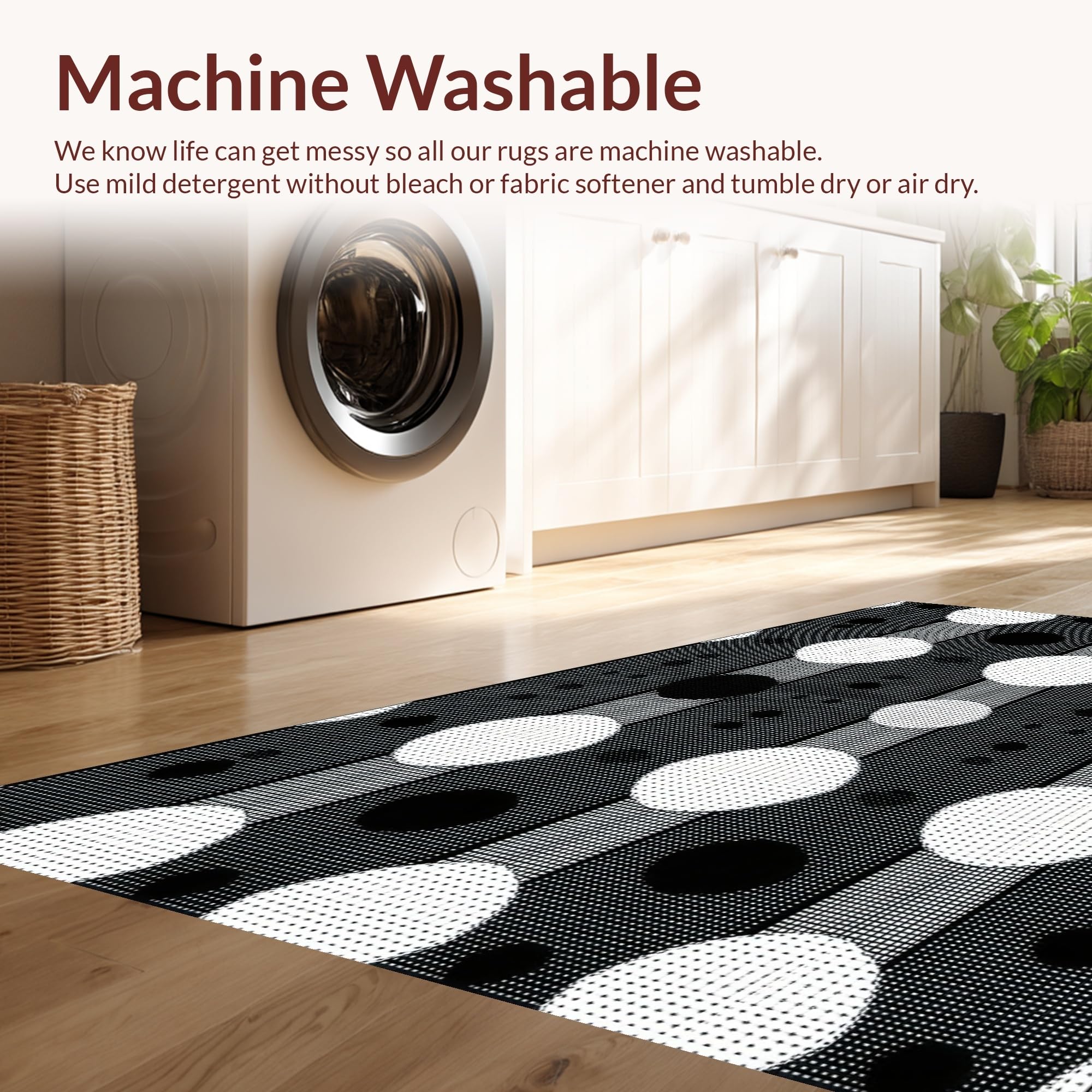 - Machine Washable: Our rugs can be easily thrown in the wash machine.
