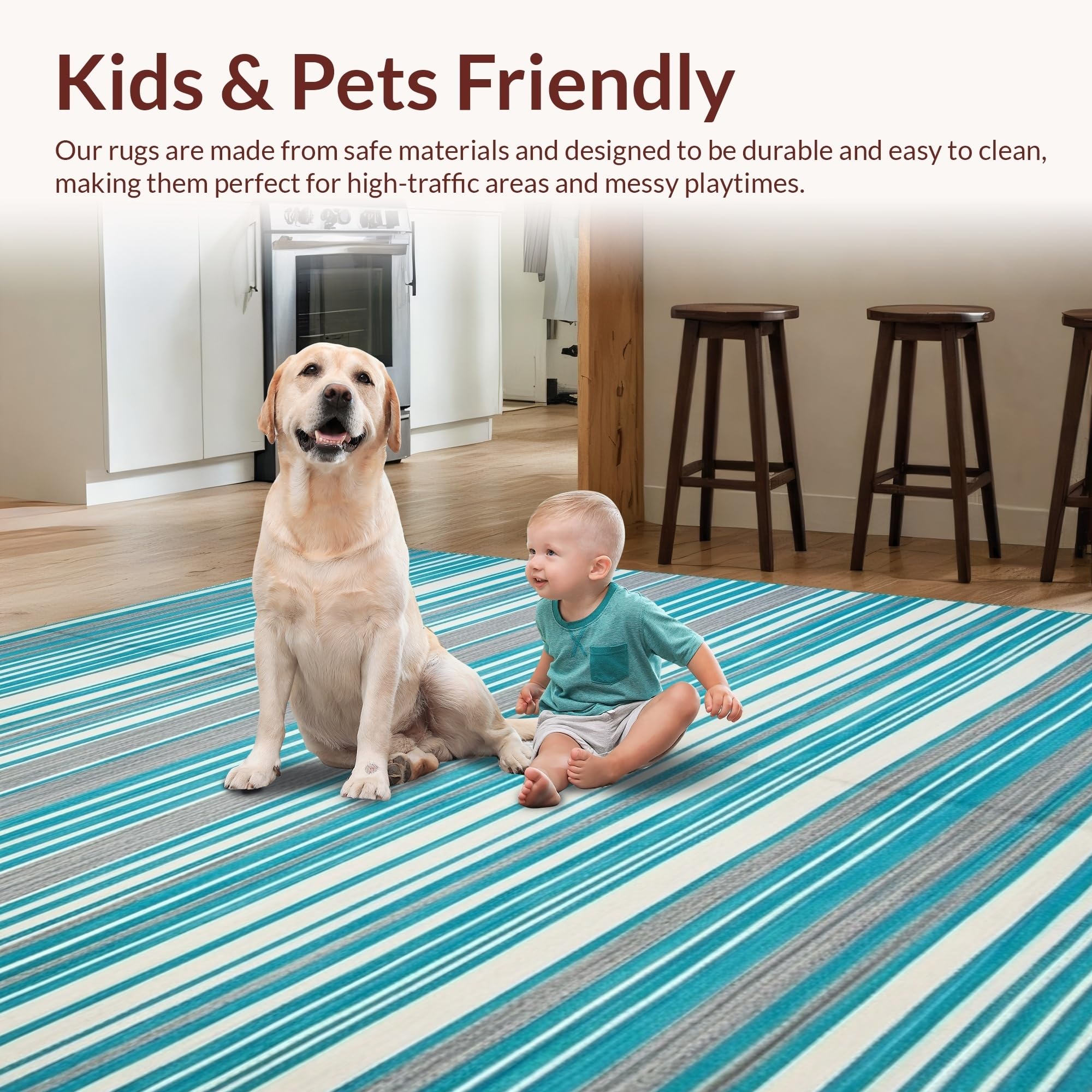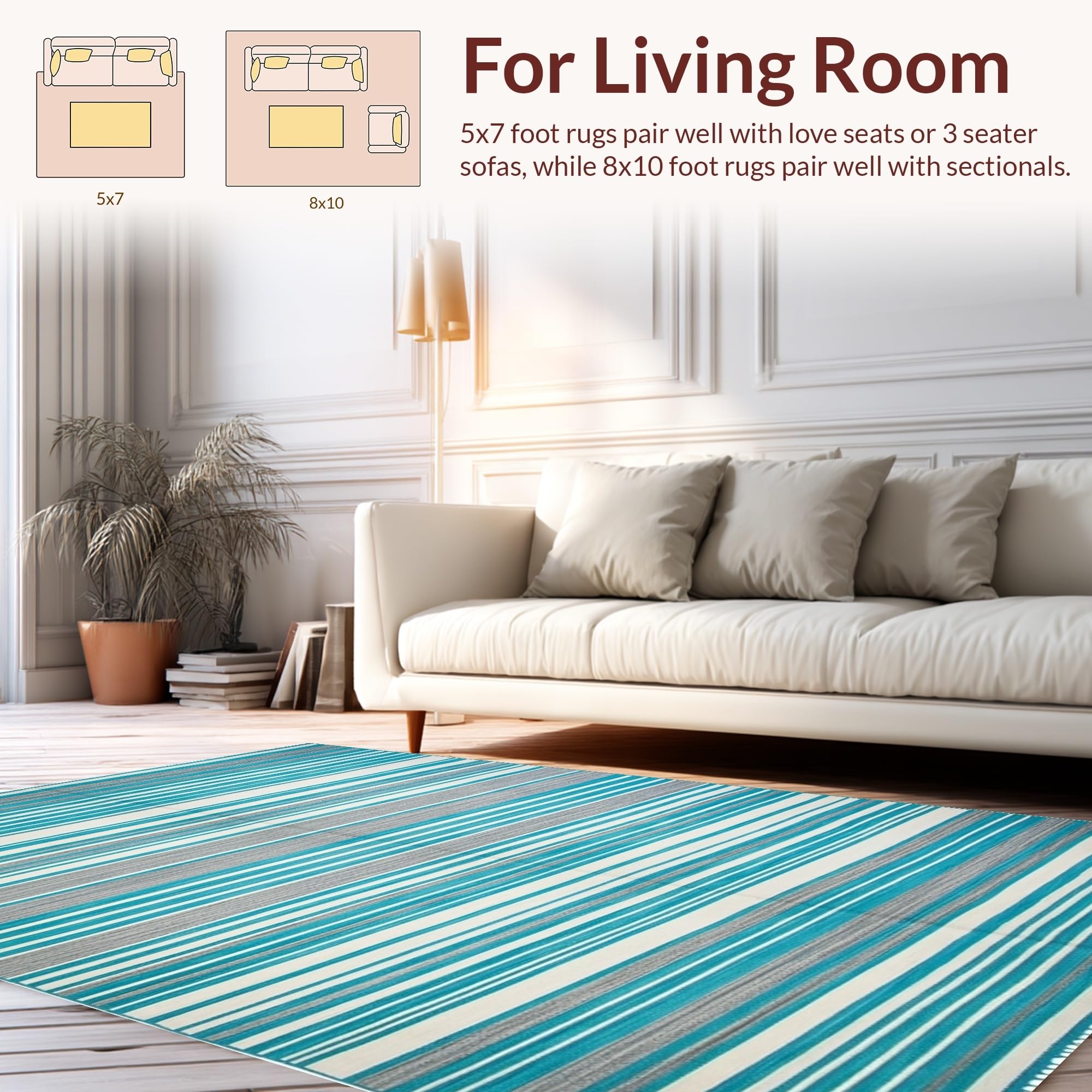 Ultra Soft Area Rug, Non Slip, Stain Resistant, Washable Area Rugs for Living Room, Bedroom, Chic Modern Geometric Blend(Blue) Overview: