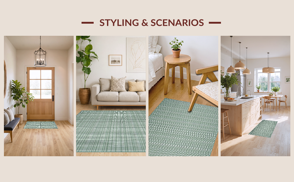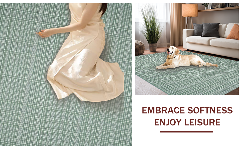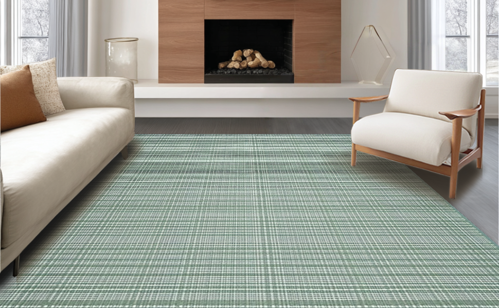 Ultra Soft Area Rug, Non Slip, Stain Resistant, Washable Area Rugs for Living Room, Bedroom, Chic Modern Geometric Check Design(Green) Overview: