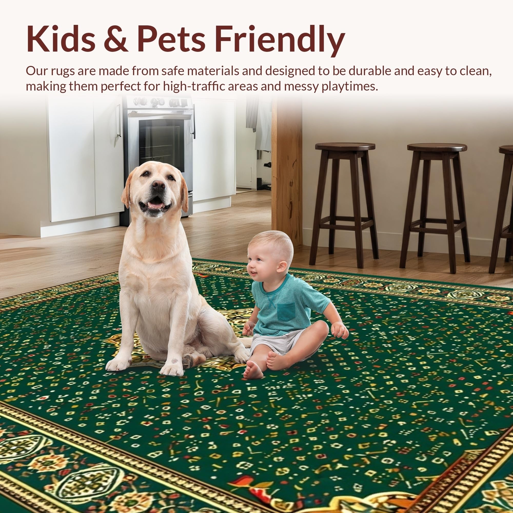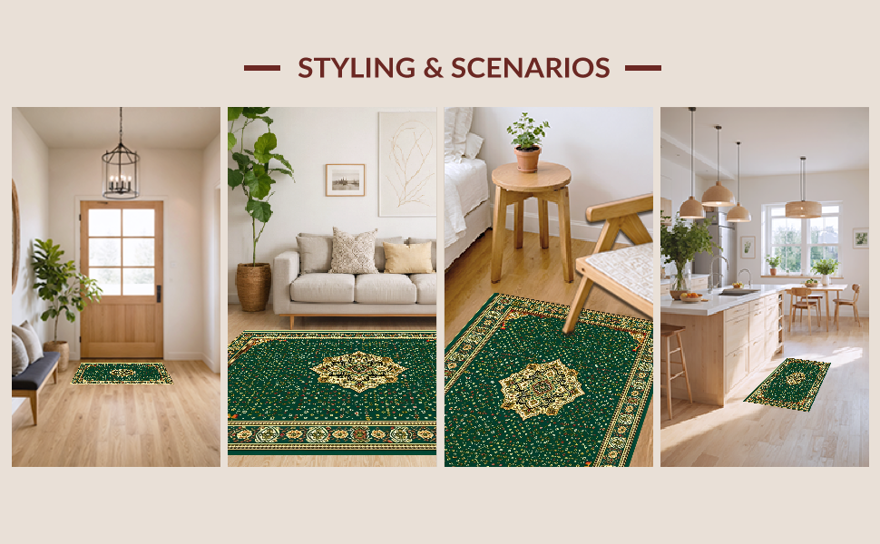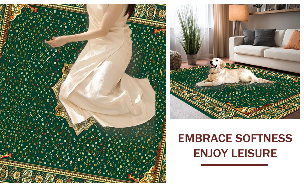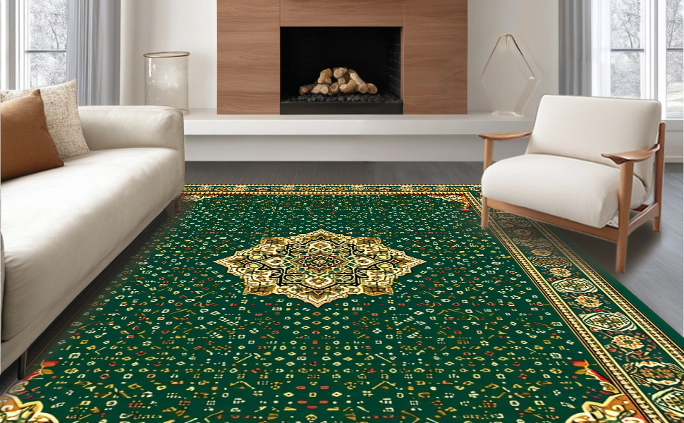 Ultra Soft Area Rug, Non Slip, Stain Resistant, Washable Area Rugs for Living Room, Bedroom, Chic Modern Geometric Composition(Green) Overview: