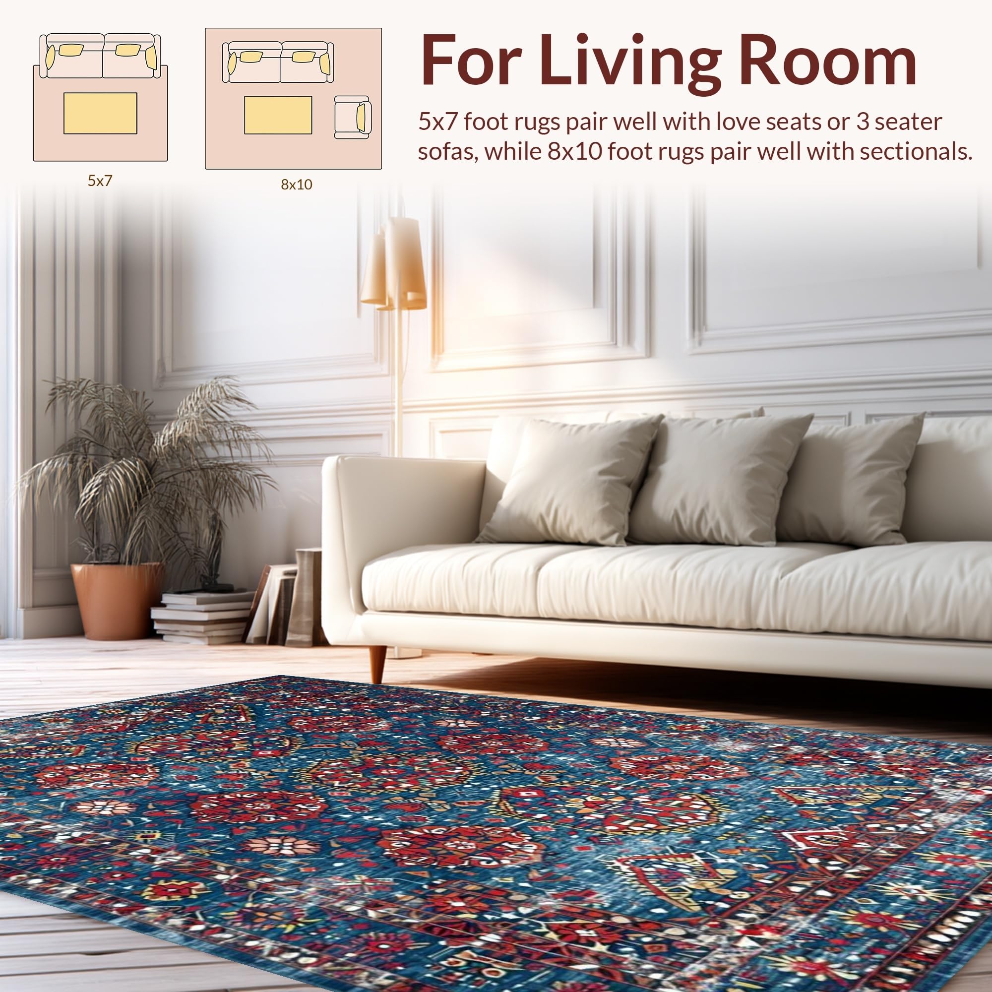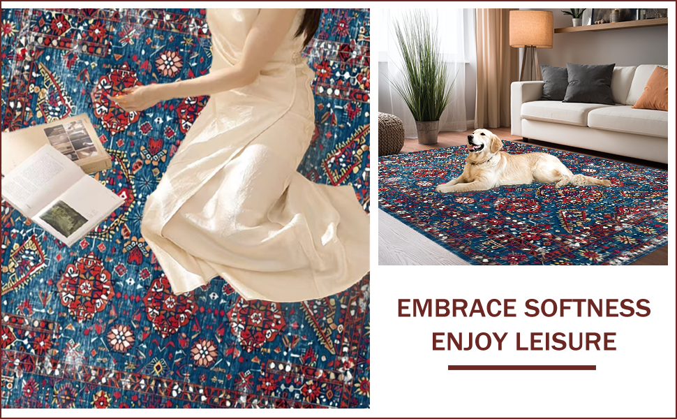 Ultra Soft Area Rug, Non Slip, Stain Resistant, Washable Area Rugs for Living Room, Bedroom, Chic Modern Geometric Textures(Blue) Overview: