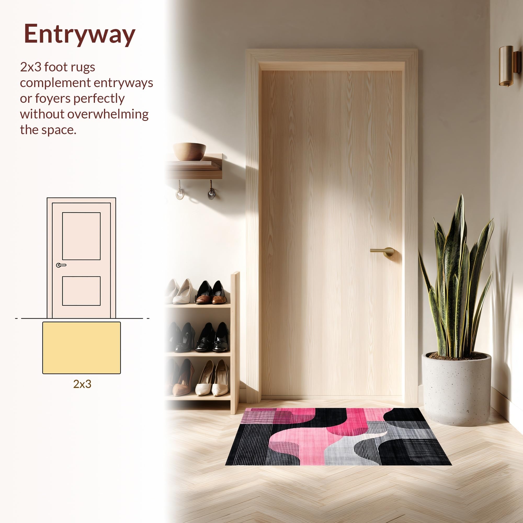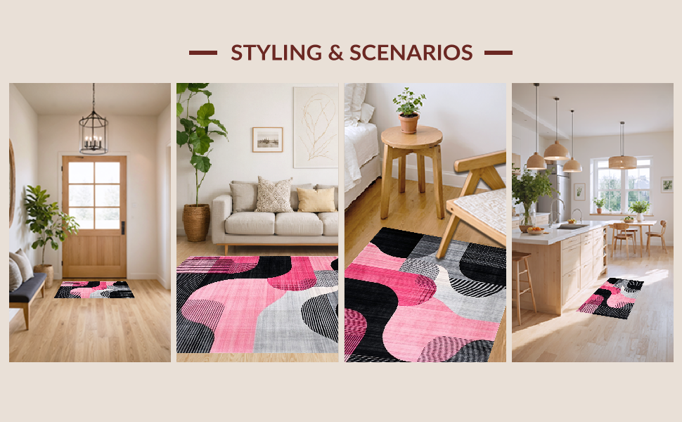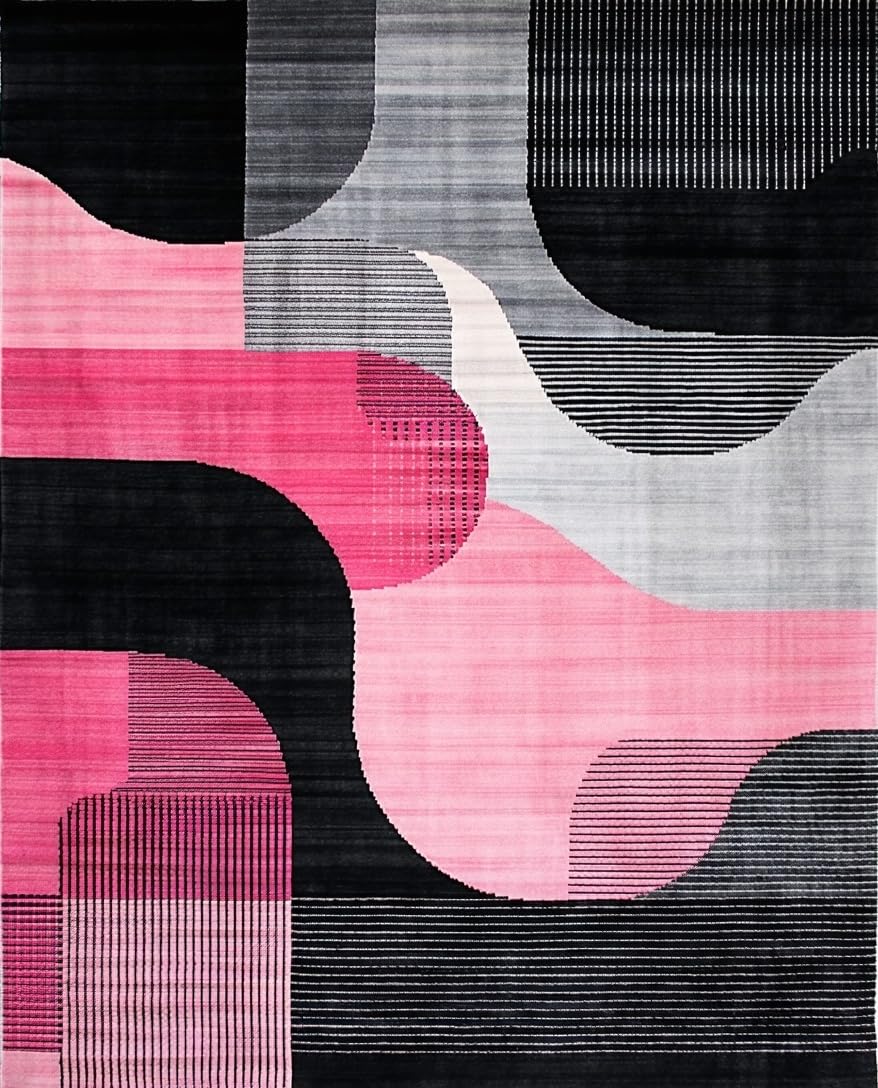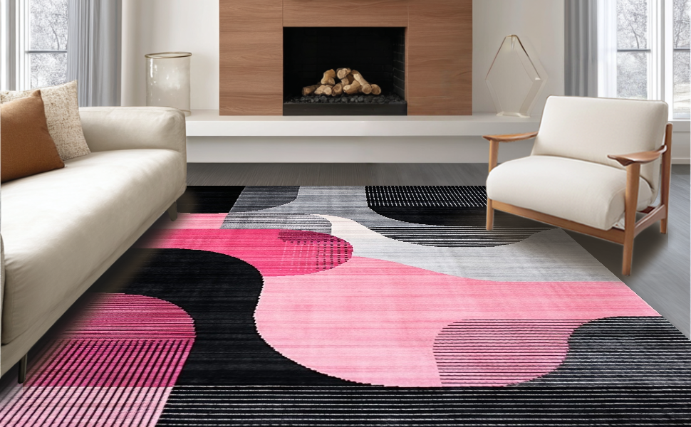 Ultra Soft Area Rug, Non Slip, Stain Resistant, Washable Area Rugs for Living Room, Bedroom, Chic Modern Geometric Wave Design(Black) Overview: