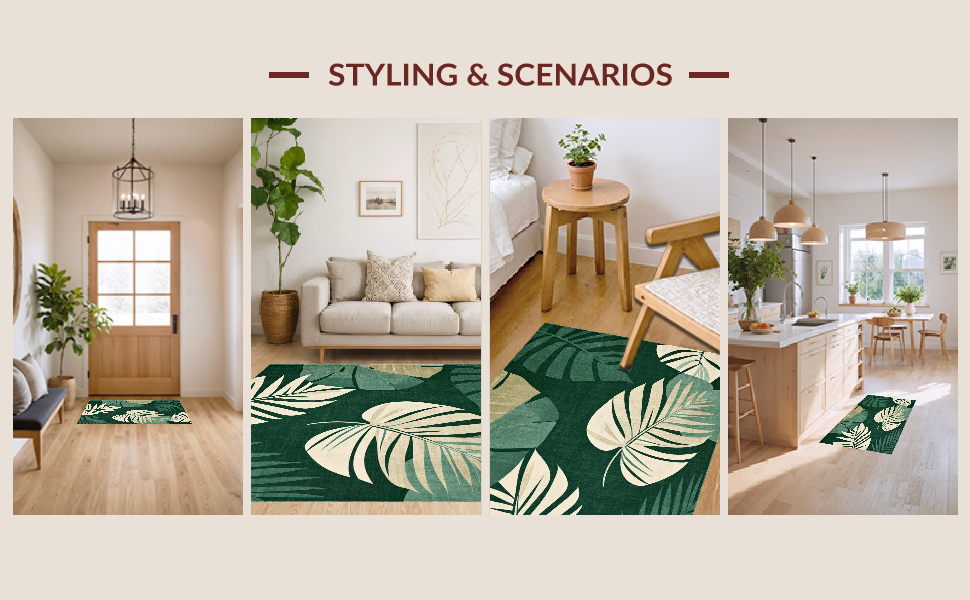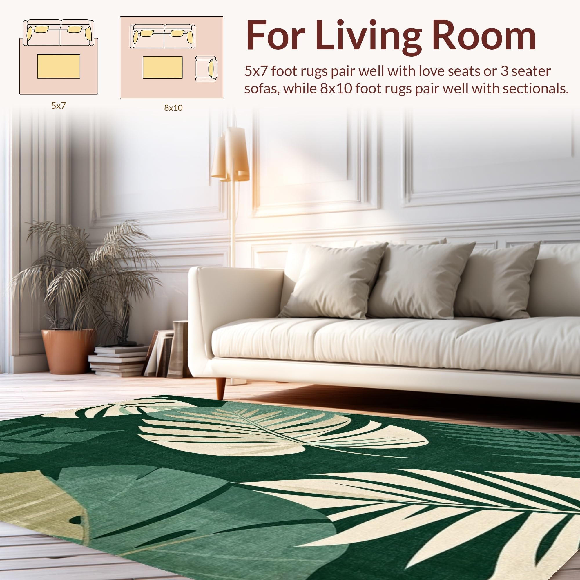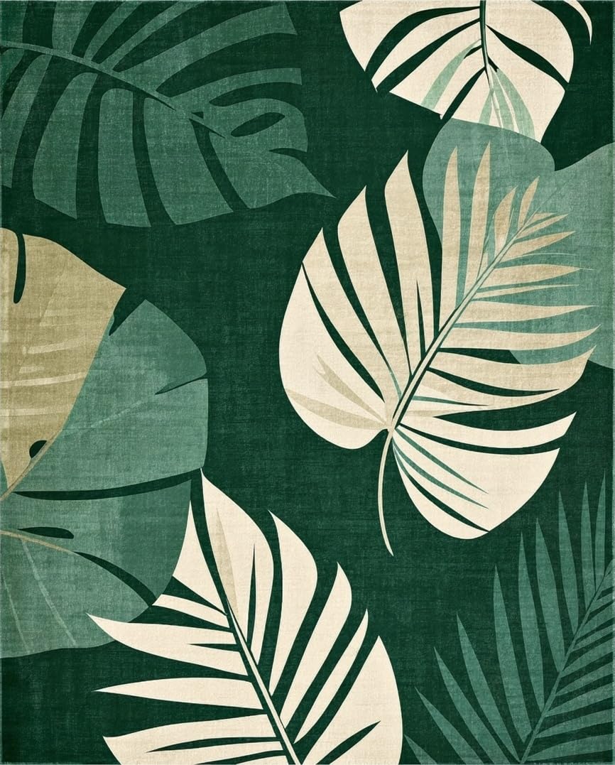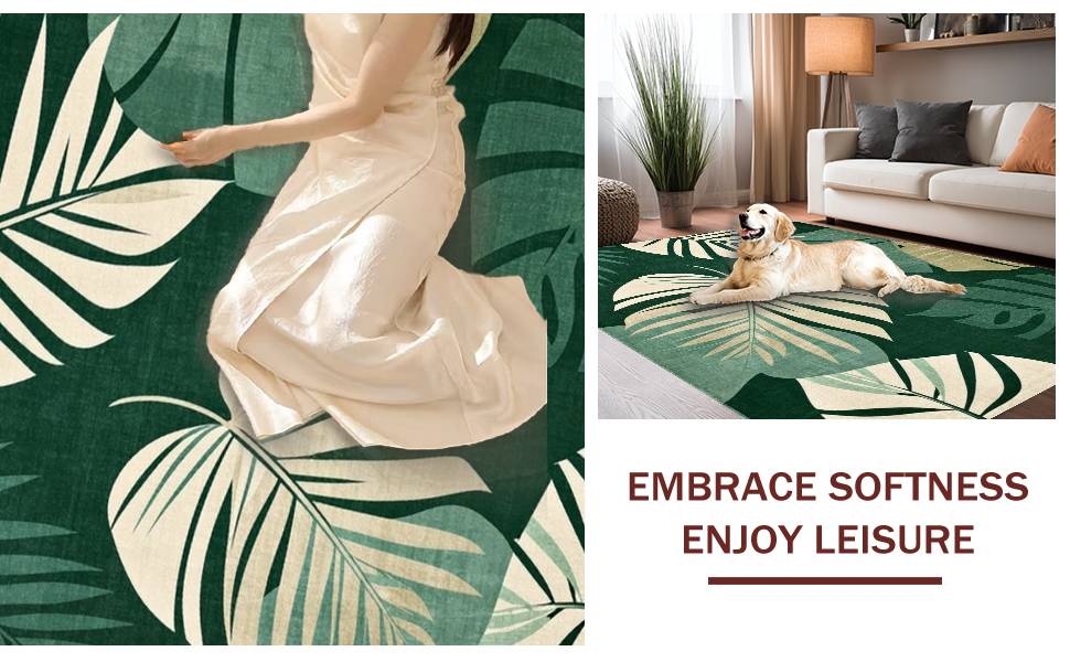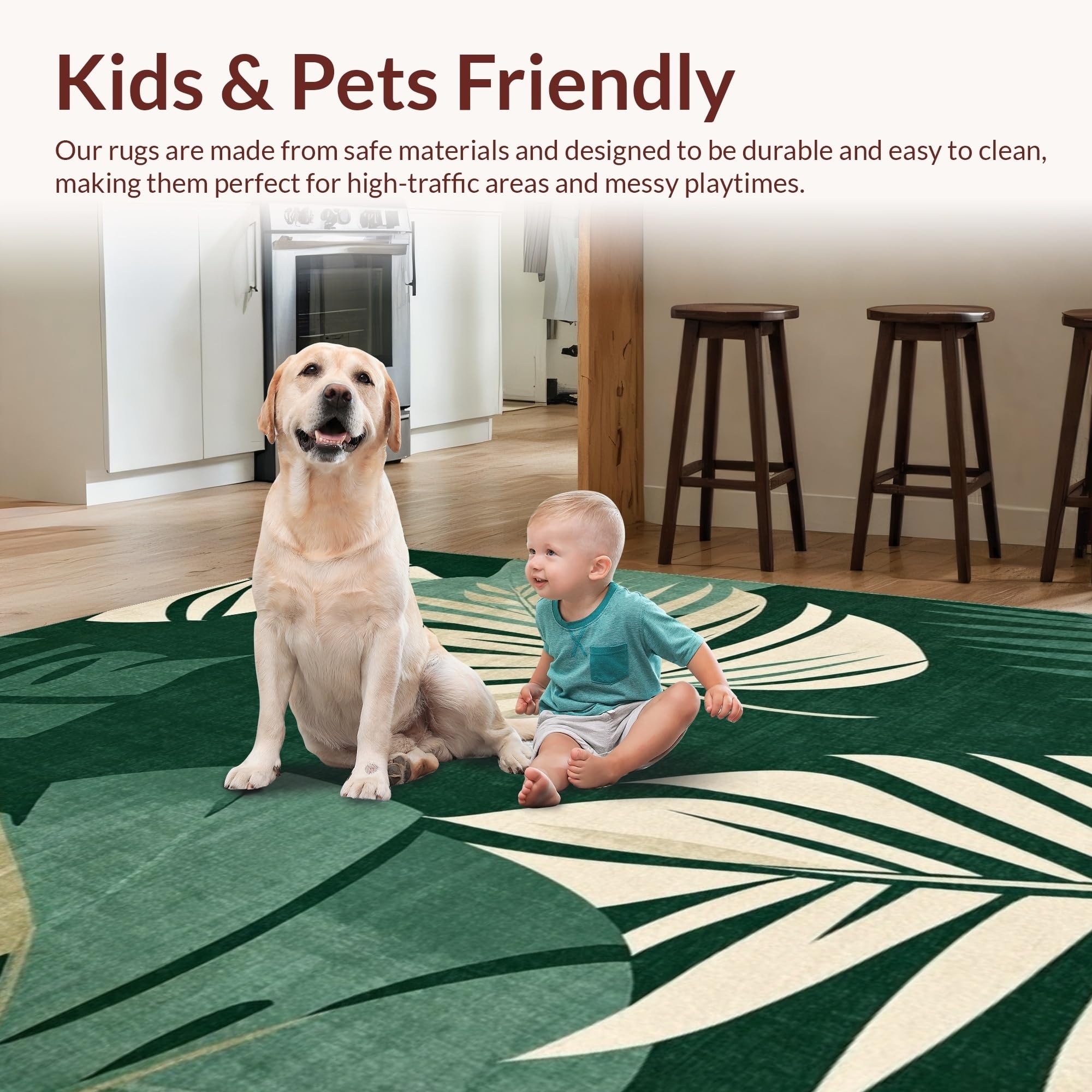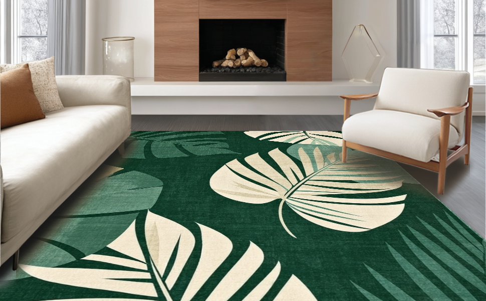 Ultra Soft Area Rug, Non Slip, Stain Resistant, Washable Area Rugs for Living Room, Bedroom, Chic Modern Graphic Composition(Green) Overview: