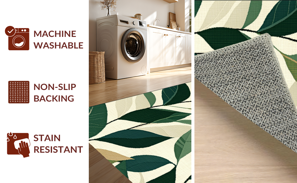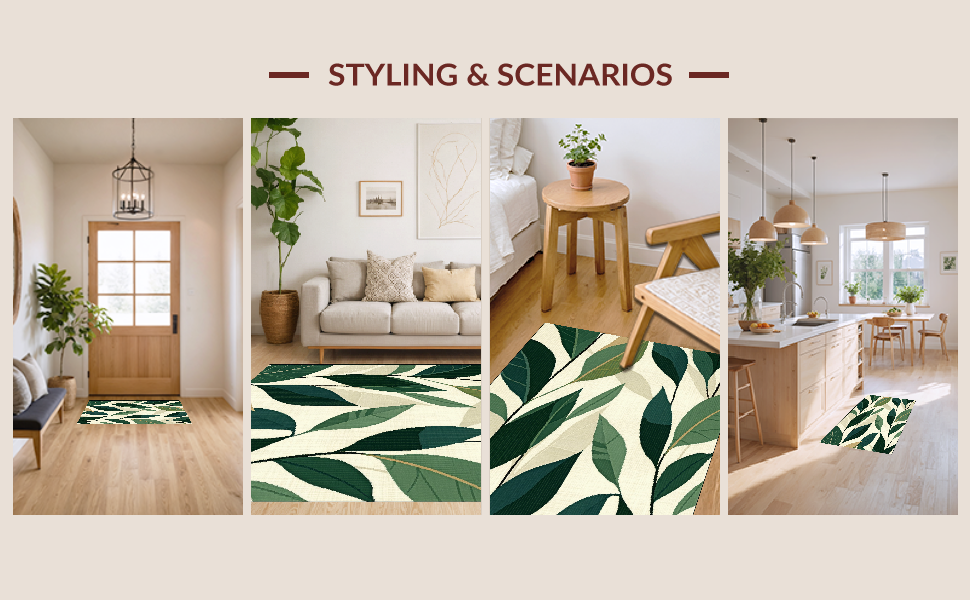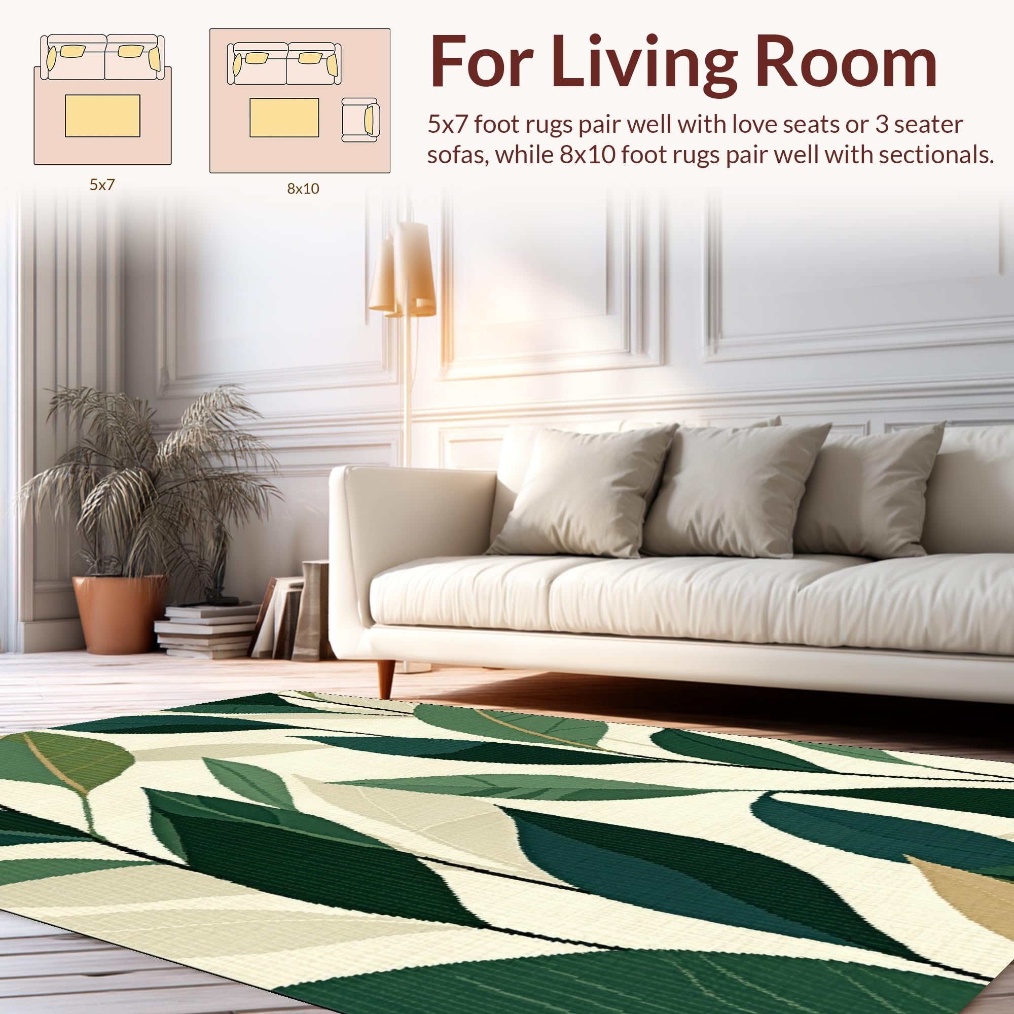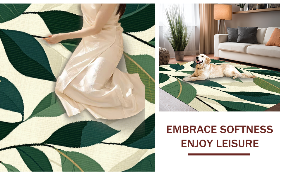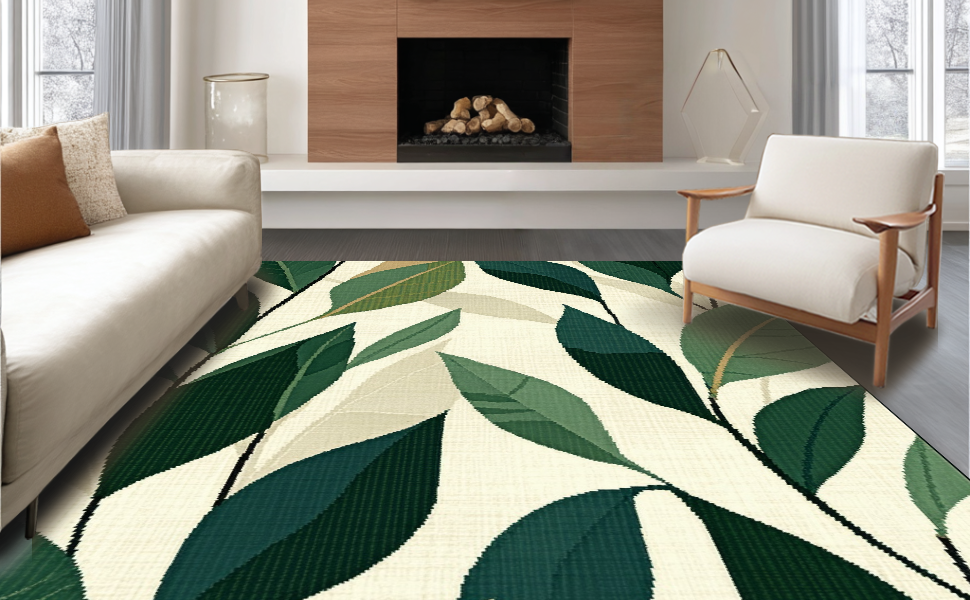 Ultra Soft Area Rug, Non Slip, Stain Resistant, Washable Area Rugs for Living Room, Bedroom, Chic Modern Leafy Composition(Beige) Overview: