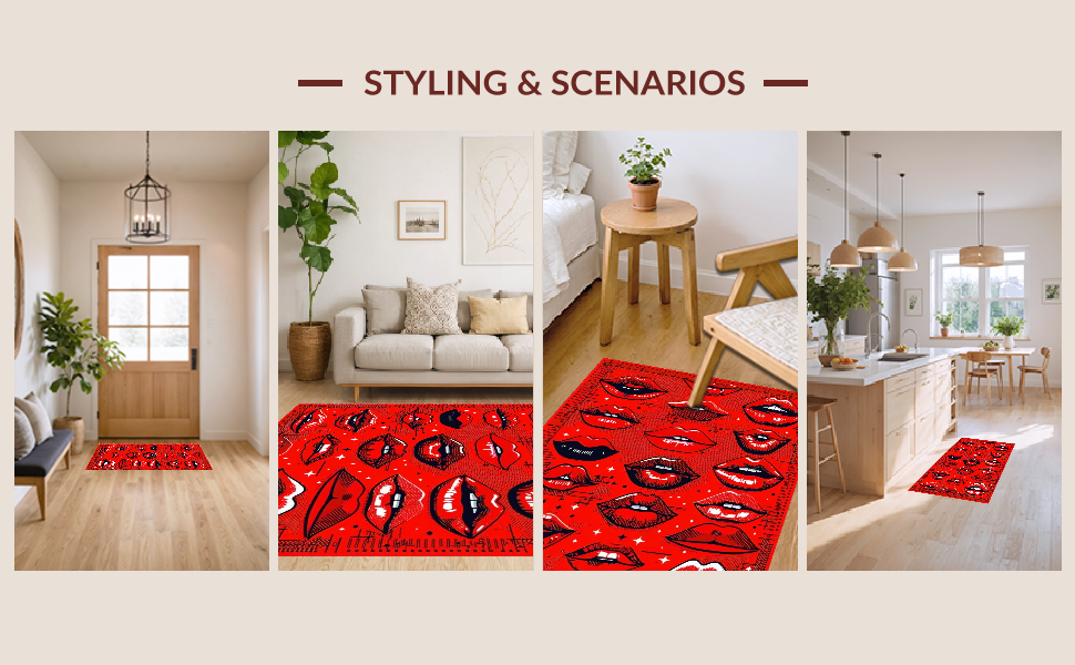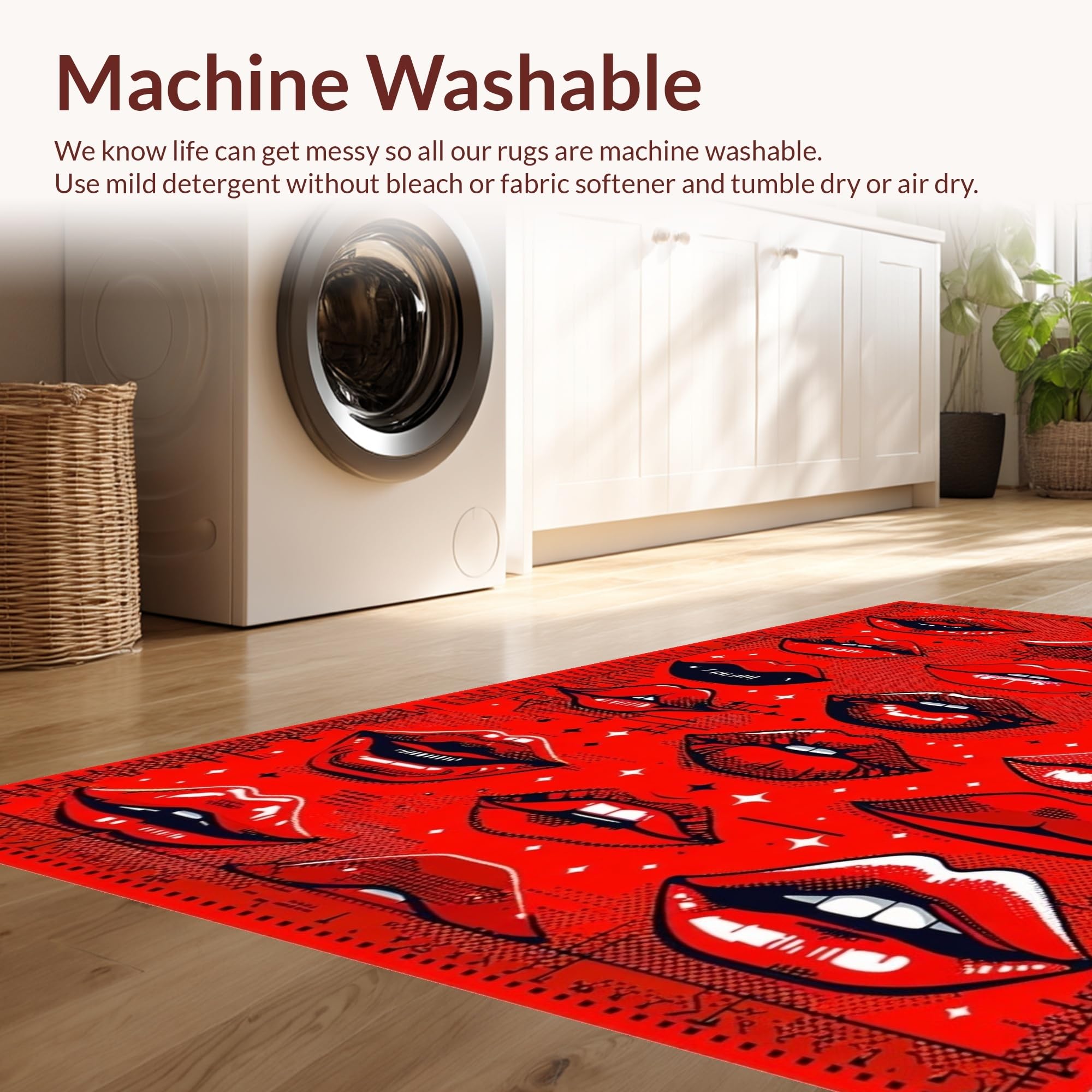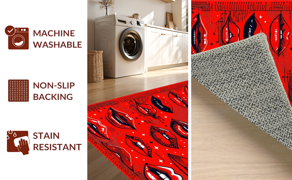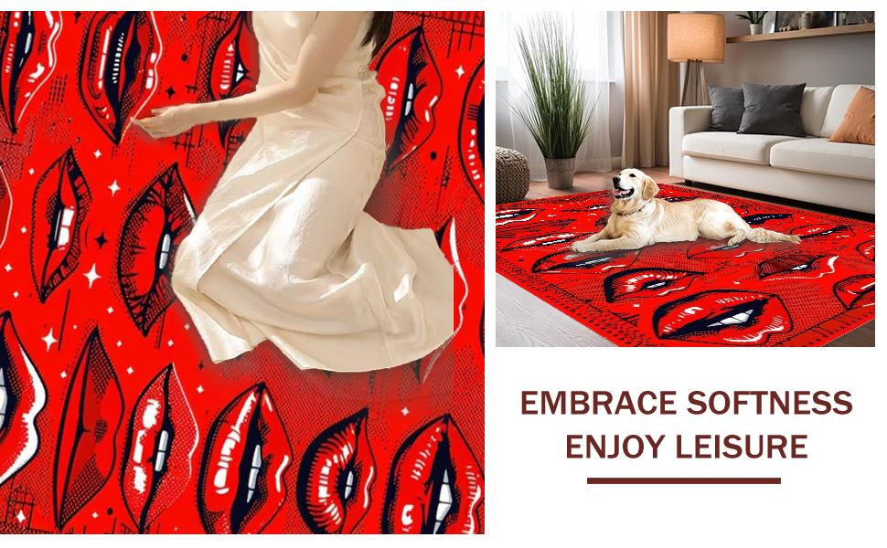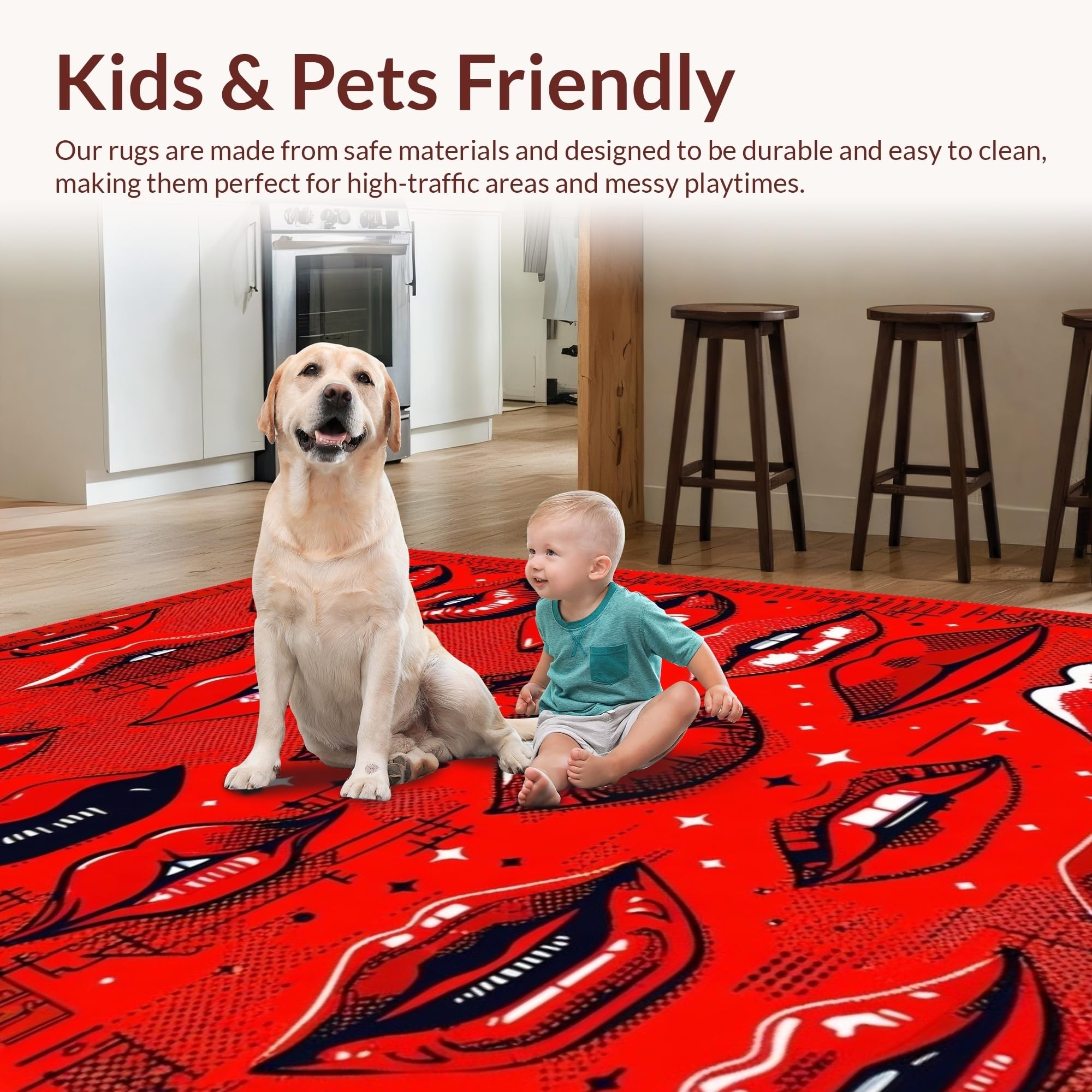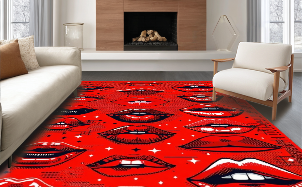 Ultra Soft Area Rug, Non Slip, Stain Resistant, Washable Area Rugs for Living Room, Bedroom, Chic Modern Lip Motif(Red) Overview: