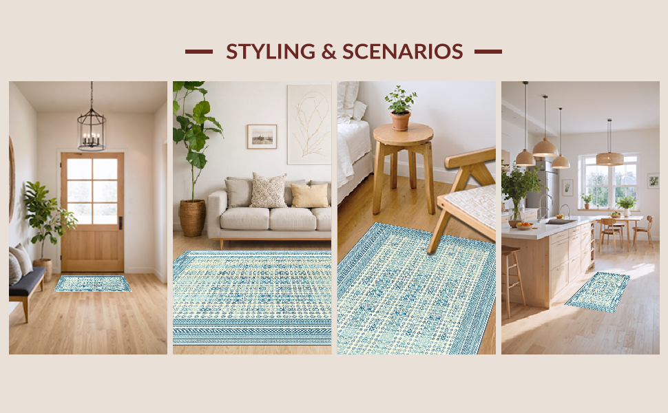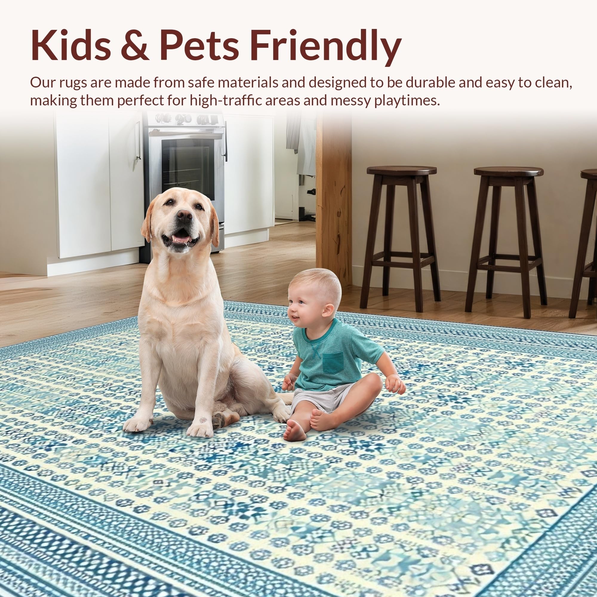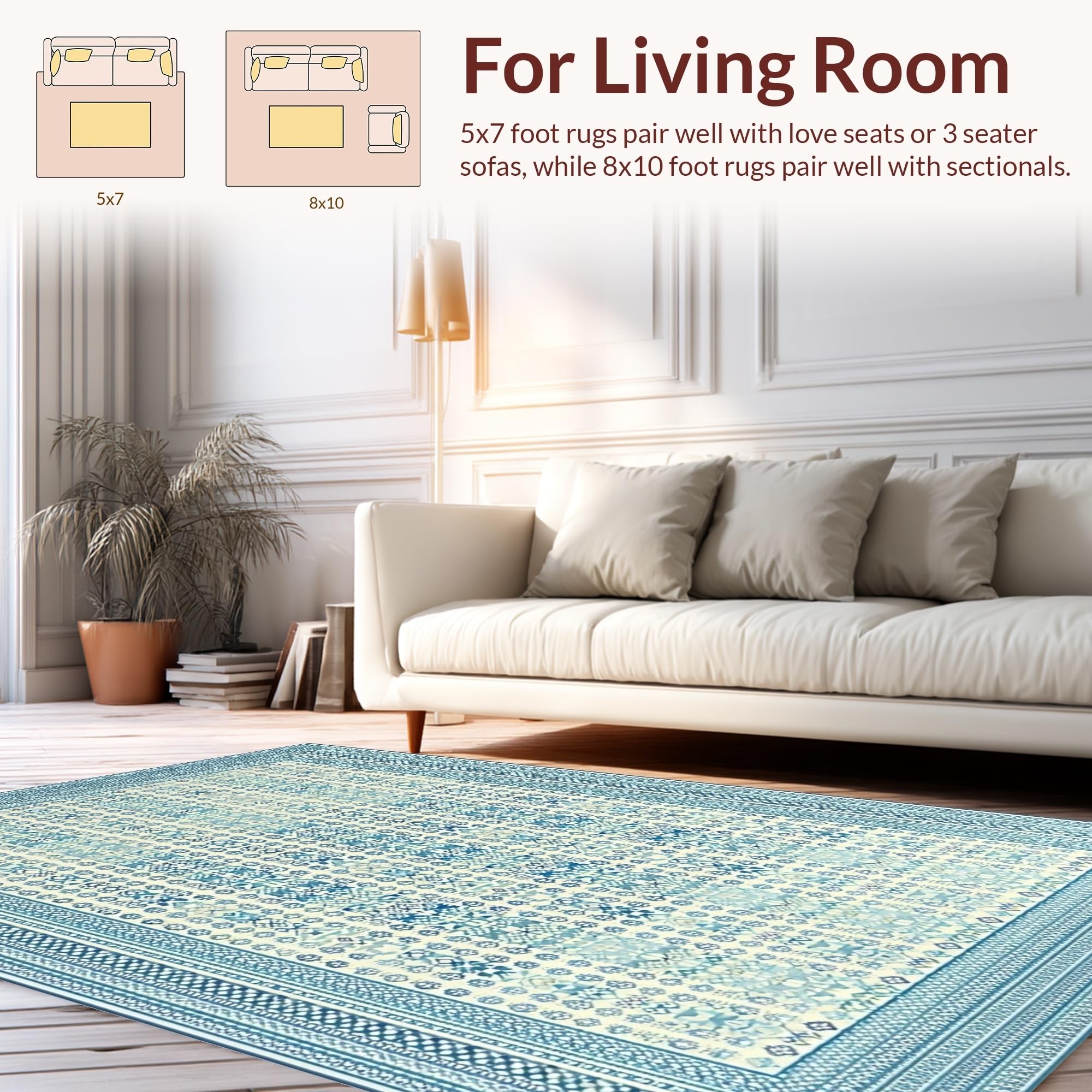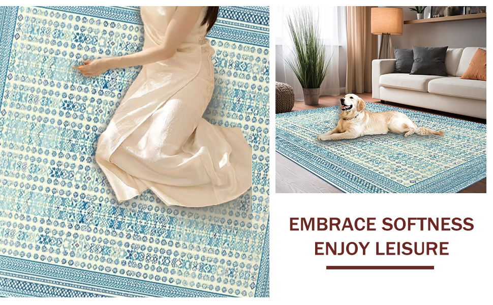 Ultra Soft Area Rug, Non Slip, Stain Resistant, Washable Area Rugs for Living Room, Bedroom, Chic Modern Low-Pile Design(Blue) Overview:
